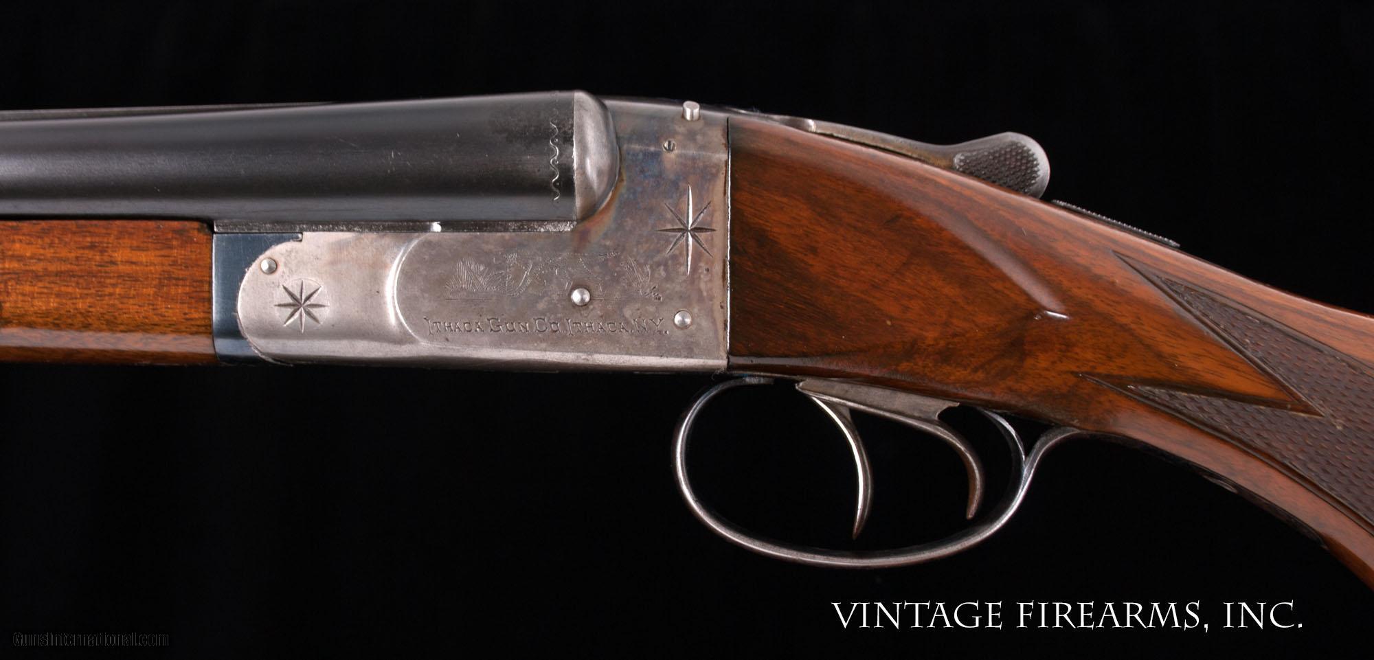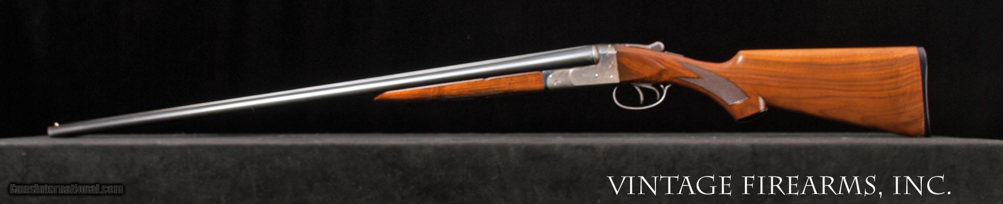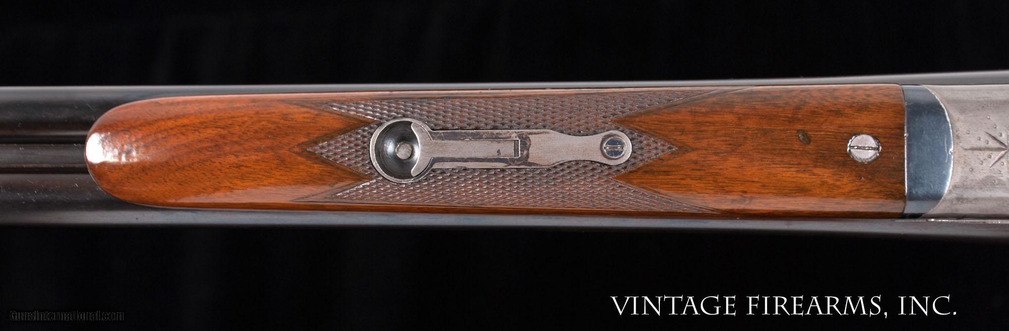 Description: Ithaca NID 20 Gauge Side-by-Side "Star Grade" Field- AS NEW, EJECTORS General Specs: Ithaca, Year 1935, 20 Gauge, 6lbs 10oz, SxS Serial Number: 459391 Most Field Grade guns were made in prolific numbers. There are Ithaca NID 20 gauge guns offered for less money than this one. However, most Field Grade guns got hard use and are found with little finish remaining, and undesirable alterations like cut stocks, bad pads, cracks and repairs, pitted bores, buggered screws, pits and heavy scratches, etc. There are restored guns, done in mediocre fashion, on the market for less as well. However, it is very difficult to find a NID 20ga. ejector gun in fine original condition like this one. This Ithaca NID Field Grade “Star Model”, sn459391 made in 1935, has all the desired condition and features one looks for in a vintage American small bore double gun. With 28” barrels presently choked F/F (we can alter chokes to your desire within 10 days of purchase), mirror bores, full length stock to a butt plate, strong well-timed ejectors, 95% factory blue, 65% factory case colors, no cracks or repairs, tight as new on hinge and breech face, lever right of center, original wood nicely restored…the gun is ready for another 80 years of good service. The “Star Model” was produced for about 5 years and had 6 stars engraved into the receiver and trigger guard in addition to the setters stamped on the sides of the action. The Ithaca Gun Co. produced the “New Ithaca Double” or “NID” from 1926 to 1949. It succeeded the Flues model and was by far the strongest action produced by Ithaca, or any other American double gun save for the Winchester Model 21. The design of the action left a lot more metal remaining, hence a brutishly strong action made for heavier “Super X” loads that developed in the early 1930’s. This little NID will be an awesome upland game/clays gun for its next owner. An affordable vintage American double in the very popular 20ga., WITH EJECTORS, it will always be a desirable field gun, gaining value as you enjoy its use. The most sought after of all the Ithacas, the NID model is going up in value faster than any of the other American double guns. Thanks for looking. Barrels Barrel Length: 28" Chokes: .027/.027 F/F Bores: perfect mirrror Bore Diameter: .616/.615 Wall Thickness: .035/.033 % Blue: 95% factory Chambers: 2 3/4" factory Ribs: tight, ring Sights: single Action Action: tight, right of center Ejectors or Extractors: ejectors, strong, timed Case Color: 65% factory Screws: excellent Engraving: star model crisp Trigger Type: double, crisp Trigger Guard Color: 60% turning patina Stock Type: capped pistol grip/splinter forend LOP: 14" to plate LOP To End Of Wood: 13 3/4" DAH: 2 1/2" DAC: 1 3/8" Cast: 0 heel; 1/8"toe off Checkering Condition: excellent Butt Treatment: factory plate There are more photos upon request. We offer a 30 day mechanical warranty on this fine shotgun. Call us for full details. PLEASE SEE MY OTHER FINE VINTAGE FIREARMS. Just open one of my ads and click on the line that says “see all items from this seller” and a very nice list of fine sporting and collectible arms will appear. I have many more fine sxs shotguns not yet listed. Thanks for looking! We employ a full time gunsmith on premises and can perform alterations to suit your needs within a few weeks of purchase. Payment Methods: Money Order, Certified Check, Personal Check, Wire Transfer Inspection Period / Return Policy: Three Days from the date the item was received. Sales Tax: 6% Michigan Only Shipping & Insurance: Ground $45.00 We ship internationally! Item Condition: Used Requires FFL?: Yes If you have any questions about this item or payment, please email or call us directly, at #616-292-6240. Thanks! Jay Shachter, Vintage Firearms, Inc We employ a full time gunsmith on premises and can perform alterations to suit your needs within a few weeks of purchase. Common requests are: -stock bending to suit your particular requirements -addition of any specified butt pad to increase length of pull -alteration of chokes to suit your shooting preferences -lengthening of chambers and forcing cones -darkening stock color with penetrating stains -restoring any part of the gun including rust blue, charcoal blue, bone and charcoal case color, wood restoration and checkering recuts. If you like one our guns but it needs "tweaked", let us know and we can quote you a time and price. Some enthusiasts like the guns "as found" and others want them "just so". We often list guns as found and let the particular buyer choose how they want their gun to fit or look. SOLD Curio/Relic: Yes |