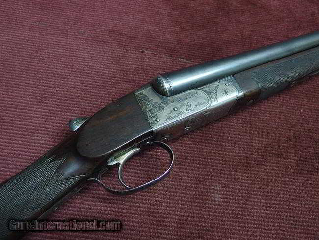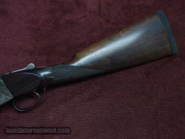 Description: Ithaca NID 3E 16ga., single trigger, ventilated rib; auto ejectors; cocking indicators; made in 1927; barrels were professionally shortened by Kirk Merrington and are choked .005/.007; English style straight grip stock; 14 1/4-inch LOP; 2-in. DAH; 1 1/2-in. DAC; weighs 6 lbs. 10ou.; tight lock up; sharp engraving and still retains some of the original case colors. A nice looking NID 16 with excellent shooting dimensions. VISA/MC/DISCOVER/AMEX(add 3%); $45shp. SOLD Curio/Relic: Yes Manufacturer: Ithaca Model: NID Gauge Info: 16 |