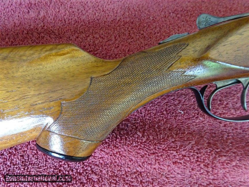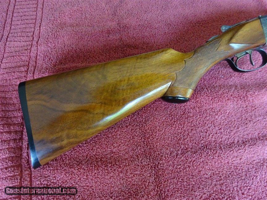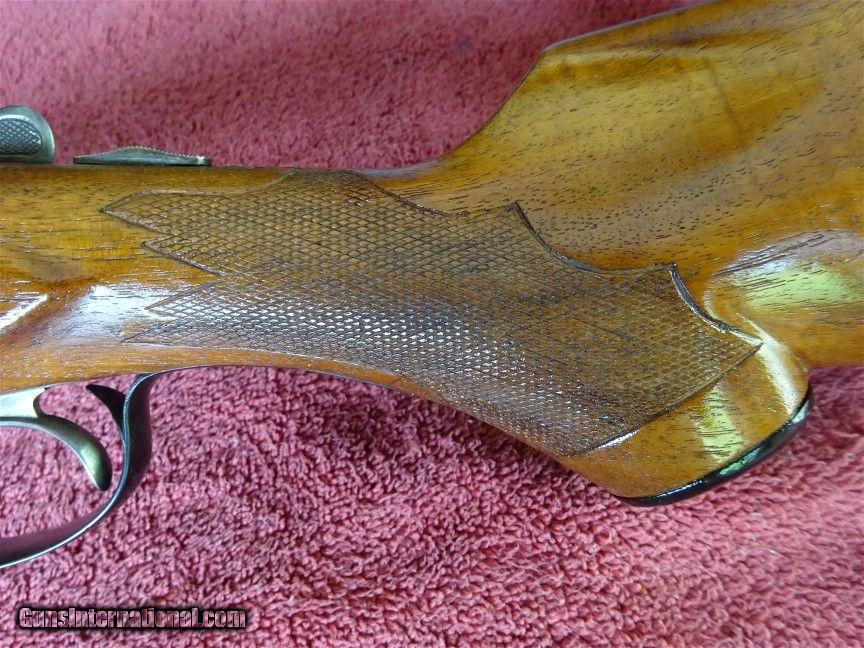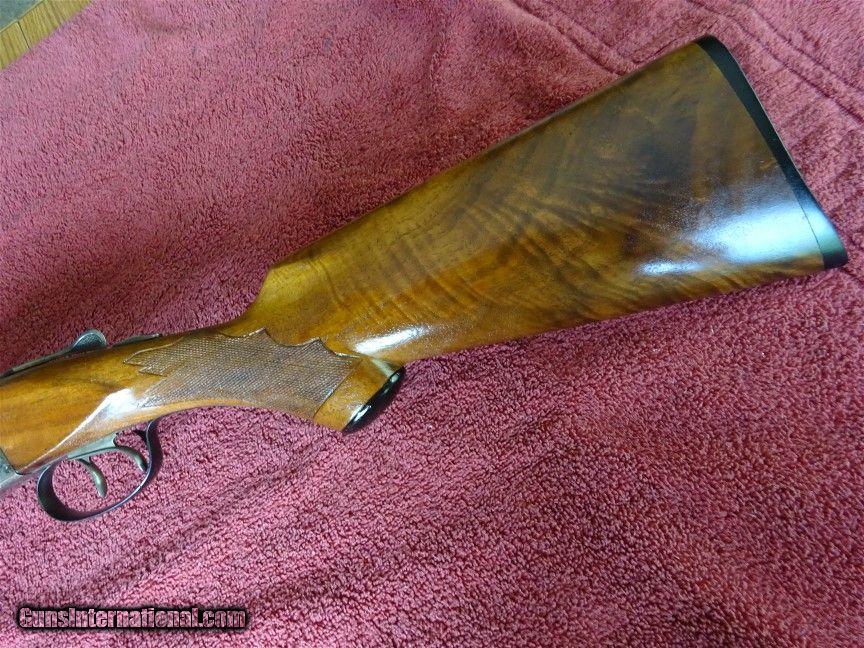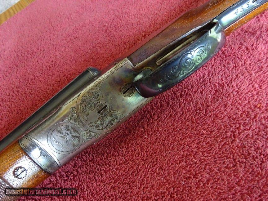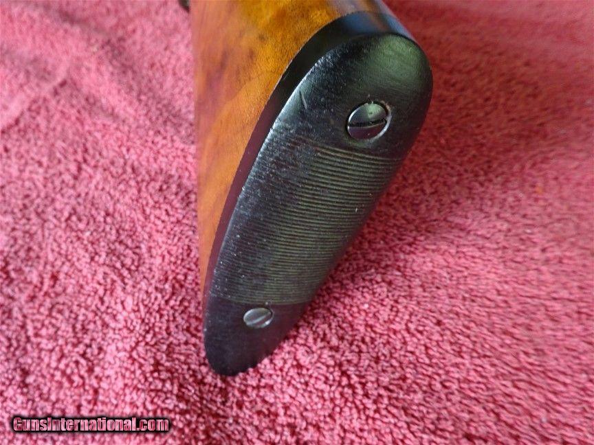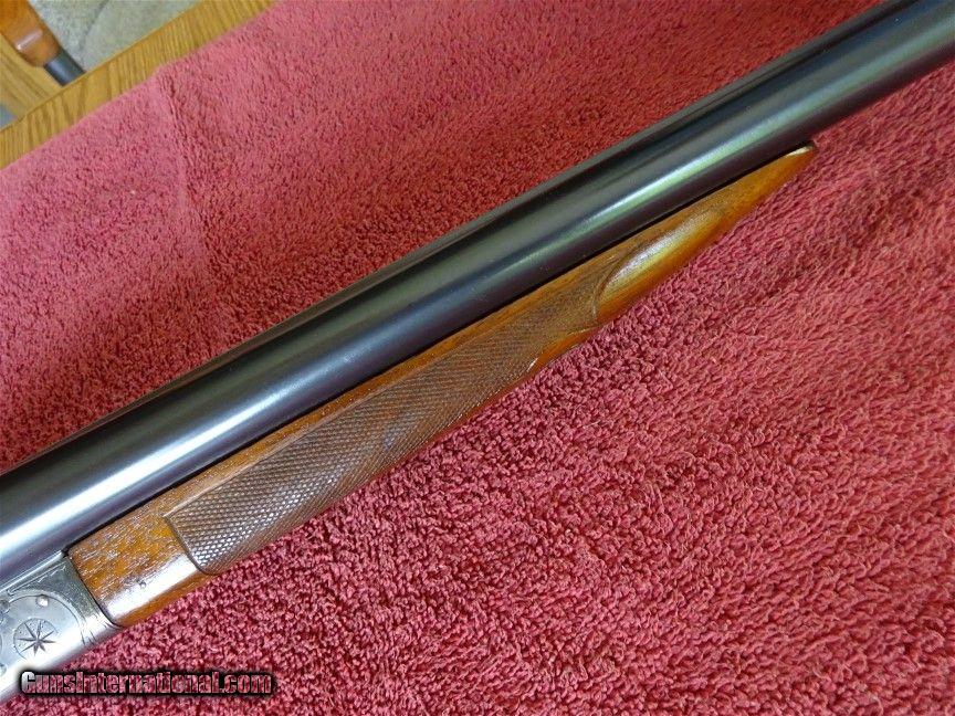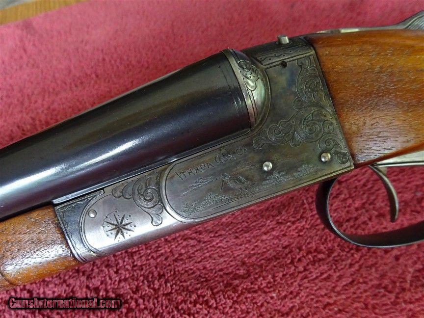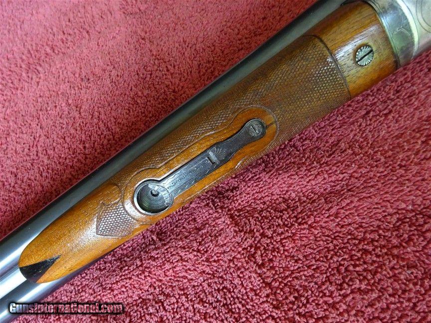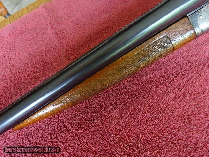 Description: ITHACA NID GRADE THREE 16 GAUGE, 28" BARRELS, 2 3/4" CHAMBERS, IC AND FULL, MARKED "BEST FLUID STEEL". EXCELLENT BLUE, MIRROR BORES. NICELY ENGRAVED WITH QUAIL ON RIGHT SIDE, WOODCOCK ON LEFT SIDE, MALLARD IN FLIGHT ON BOTTOM PLUS SCROLLWORK AND BORDERS, ENGRAVED SCREWS. GOOD CASE COLOR, COCKING INDICATORS, TOP LEVER TO THE FAR RIGHT, TIGHT ON FACE. BARRELS RING NICELY. PISTOL GRIP STOCK, SPLINTER FOREARM, FINE CHECKERING, ATTRACTIVE WOOD FIGURE, ORIGINAL GRIP CAP AND BUTTPLATE, 1 1/2" X 2 1/2" X 14 1/8", 6 1/2 POUNDS. MADE IN 1926. $4250.00 + $50.00 Insured shipping to an FFL address. See all Pats listings We also have hundreds of pieces of ORIGINAL gun company advertising & memorabilia available for sale. We have no reprints or reproductions. Email for more information. SOLD Curio/Relic: Yes |