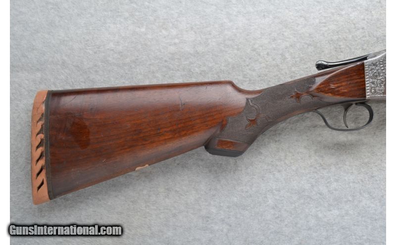 Description: This older Model Ithaca single shot/barrel 12 Ga. shotgun comes with a 34 inch ventilated rib barrel with a 2 3/4 chamber. The coin finished receiver is engraved with scroll, border and has a man aiming a shotgun on the left side and a bird with spread wings on the right side. The barrel is in very good condition. There are muntiple handling marks in the stock. The rubber recoil pad needs to be replaced. SOLD Manufacturer: S/N 2788XX Caliber Info: 12 Ga. Chambers: 2 3/4 inch. Metal Condition: Very good. Wood Condition: Good with multiple handling marks. Light wear. Bore Condition: Excellent. Barrels: 34 inches with a ventilated rib. Stock: Checkered grip walnut pistol grip with a black cap. Stock Dimensions: LOP 13 3/4 inches. Fore End: Checkered grip walnut. Butt Pad: Rubber recoil pad. Weight: 7 lbs. 15 oz. Sights: White front and middle beads. Chokes: Fixed IM. Item Location: Richfield, WI |