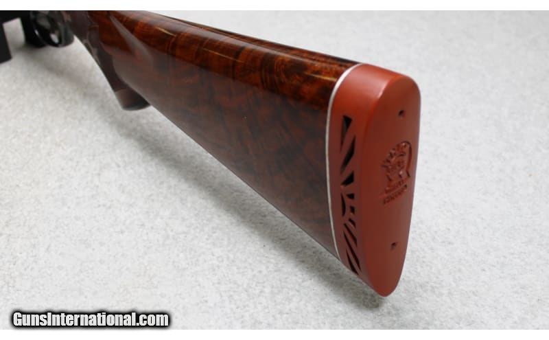 Description: Ithaca Single Barrel Trap Gun chambered in 12 Gauge. Produced from 1914 until 1977 and known as the "King of Trap Guns". Serial number (403699) suggests that it is a Knick Model produced in 1952. Professionally refinished gun features include a 32-inch blued barrel with a fixed Full choke and an engraved color casehardened receiver with floral and hunting scenes. No accessories. 12 Gauge SOLD Chambers: 2.75 inch Metal Condition: Very Good with Minor Handling Marks Wood Condition: Very Good with Minor Handling Marks Bore Condition: Bright And Clear with No Pitting Barrels: 32 inch Butt Pad: Ventilated Rubber Weight: 8 Lbs 3 Oz Chokes: Fixed Full Item Location: Fort Worth, TX |
