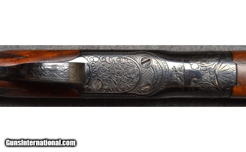 Description: Ithaca Single Barrel Trap No.5E 12 Gauge. Features a 32" barrel, choked full, vented trap rib with white front and mid beads, a 2 3/4” chamber, ejector and single trigger. The receiver is beautifully adorned with No.5 scroll and game scene engraving featuring silver inlays of a pheasant and a woodcock, and an engraved American eagle at the bottom of the action. Adding to the beauty of the shotgun are the deluxe grade American walnut stocks with No.5 fleur de lis checkering, Monte Carlo comb, a Morgan adjustable target recoil pad and a brass initial plate, and including a checkered beavertail forend with an engraved pull-down release lever.Condition: The barrel to action fit has some play, and the release lever, though just right of center is a bit sloppy to the right, and the metal parts have been reblued. The butt-stock was reworked with an additional piece of wood installed between the top and bottom halves, and of course the wood has been refinished. The stock adjacent the receiver's top tang has a short 1/2 inch crack, and the forend on the left side has a very thin 1-1/2 inch crack either in the finish or the wood, as it is hard to tell. The checkering is fairly well worn on the butt-stock and the forend, and there are scratches and dings in both. Bore Condition: Very good condition throughout, very shiny and clean. Manufacturing Date: 1926. Serial Number: 400584T See bullets points for additional information.Dimensions: 14 1/2" LOP, 1 1/2" DAC, 1 1/2" DAH.: Weight: 8 lbs. 10 oz. SOLD Manufacturer: 1926 - Serial # 400584T Caliber Info: 12 Ga. Chambers: 2 3/4" Chamber. Metal Condition: Very good condition, a very shiny and clean bore. Wood Condition: Good but the butt-stock was reworked with an extra piece of wood. See Description for additional information. Bore Condition: Shiny and bright with few signs of use Barrels: 32" Barrel. Triggers: Single trigger. Stock: Deluxe grade walnut stock. Stock Dimensions: 14 1/2" LOP, 1 1/2" DAC, 1 1/2" DAH Fore End: Walnut. Butt Pad: Adjustable target recoil pad Weight: 8 lbs. 10 oz. Sights: Shotgun rib with white bead front and mid sights. Chokes: Full choke. Extras: None. Item Location: Boise, ID |