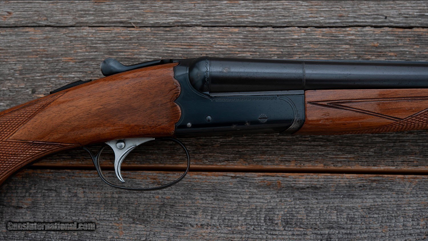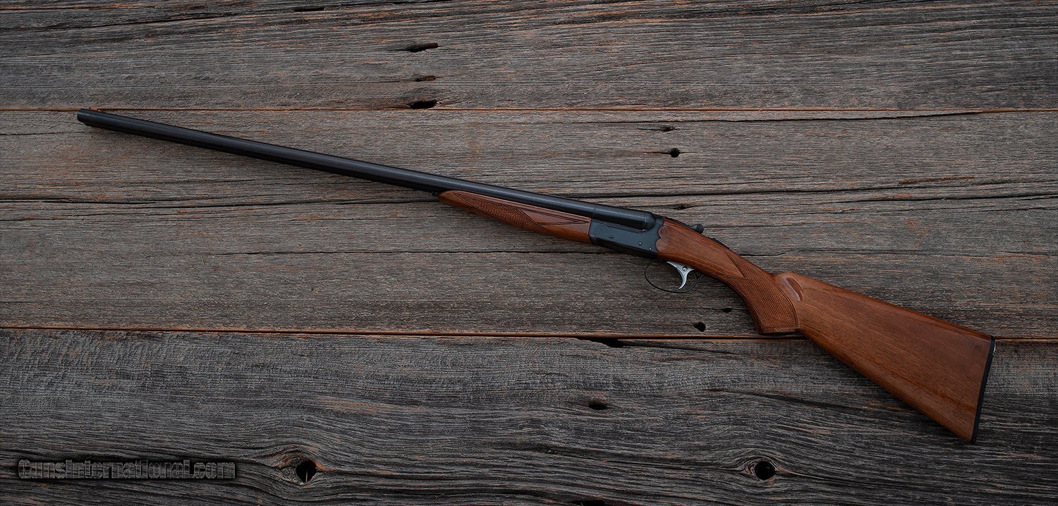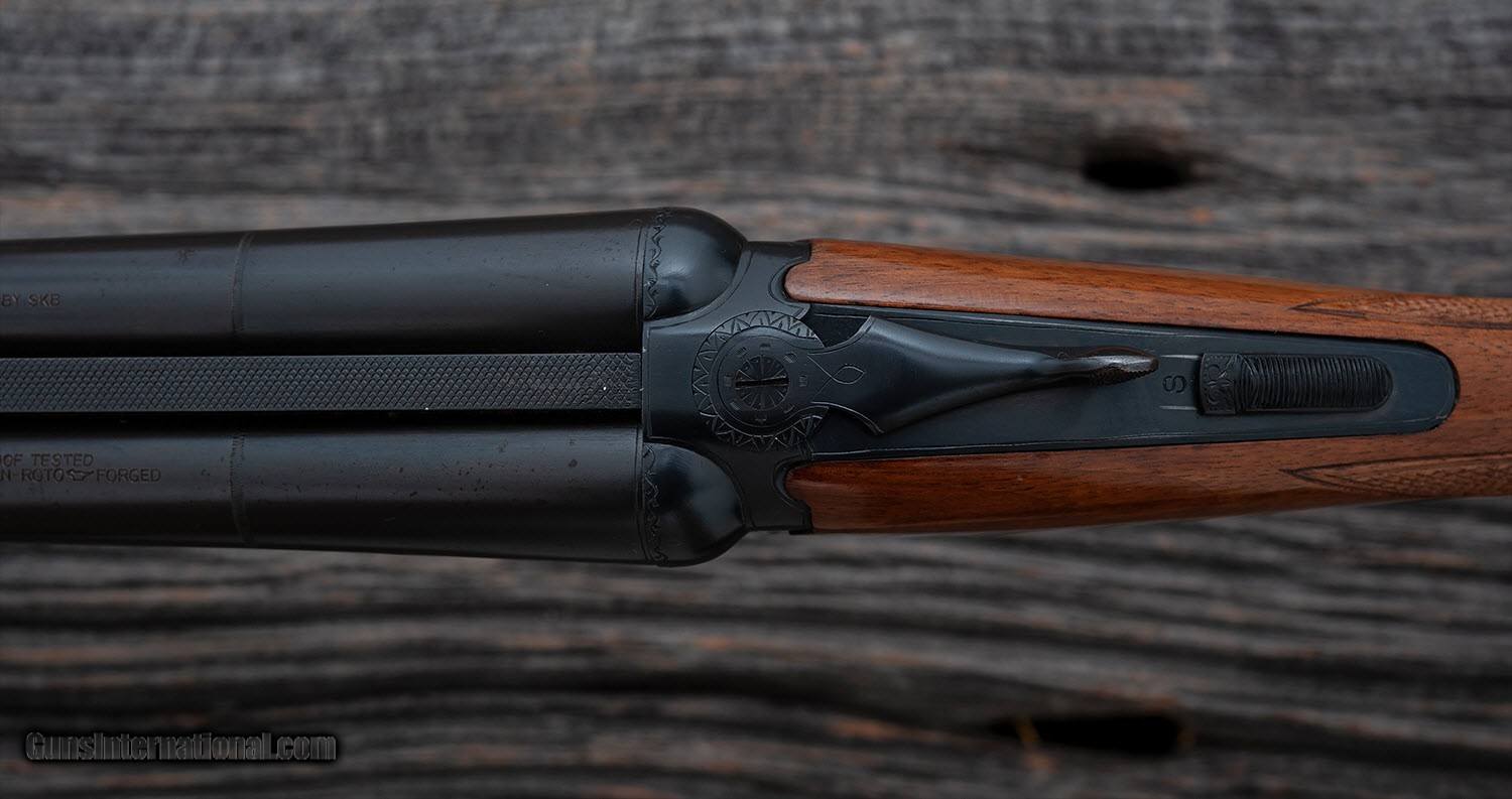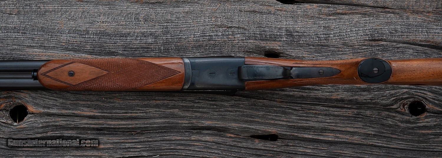 Description: Ithaca - SKB - 100 - 20 ga - Item Number: ITHS203345 Shotgun type: SxS Action: Boxlock Ejectors: No Trigger: Single Grip: Pistol Grip Forend: Checkered Lop: 14 1/8 " Pad thickness: 0.25 " Type of butt: Factory Drop comb: 1 1/2 " Drop heel: 2 5/8 " Cast amount: 1/8 " Cast: Off Weight: 6 lbs, 4 oz Manufactured in: Japan Finish: Blue Overall condition: Very Good Stock condition: Very Good Metal condition: Very Good Stock: Original finish Metal: Original finish Type of Case: none Extra barrels: 0 Barrel info: Gauge: 20 ga Chamber: 3 " Length: 28 " Chokes: M/F Rib type: Flat File Cut Comments : Gun is in very good condition with some light handling marks. SG-132 SOLD |