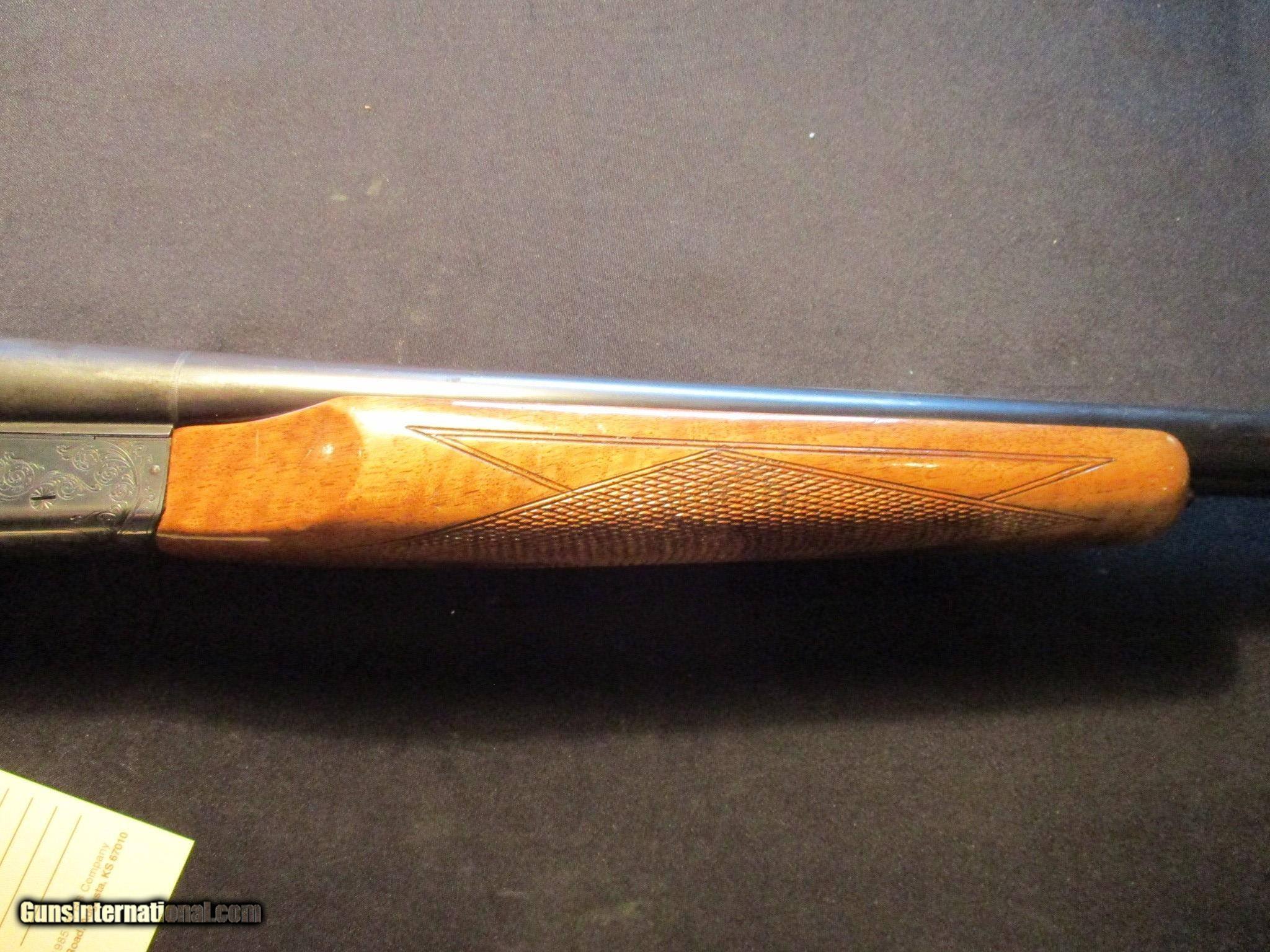 Description: Ithaca 200E by SKB, 20ga, 25" barrels, 3" chambers, fixed IC and Mod choke. Single selective trigger, auto ejectors. SN is R2550xx. Factory finish on both wood and metal, factory butt plate. Nice clean gun! Email me if you would like these pics sent to you, they will come through bigger and better than on the listing page here. We do offer Lay-A-Way. Our standard terms are 25% down, 90 days. Initial deposit is not refundable. Email me with any questions. I am a store front dealer, and I will close s if the gun sells locally. Once it has aI will pull it from my shelves. Please check your local laws to confirm it is legal to own in your state! Buyer pays $25 shipping and insurance to your FFL in the lower 48. AK, HI or PR is extra. I will ship to California, NO PROBLEM! All my guns come with a non firing, 3 day unconditional return privilege, from the day UPS delivers to your dealer. Buyer pays shipping both ways if the gun comes back. I can add a new hard case by PLANO for secure shipping for $25 if the buyer wishes (highly recommended, cheap insurance, really helps keep the UPS monster from eating my guns!). No sales tax on guns ship out of Kansas, guns sold in Kansas are subject to Kansas sales tax. I am a licensed FFL, and will include a copy of my FFL with the gun for your dealers records. I will ship to a C&R if the gun is eligible. I will ship to California, but you need to confirm the gun is legal where you are, California or other. I am always looking for good clean, old original Winchesters to buy, consign, or trade, especially pre '64's model 70's and model 54's. WE ALSO TRADE FOR CLASSIC CARS AND TRUCKS! Email me with any questions, and good luck! SOLD |