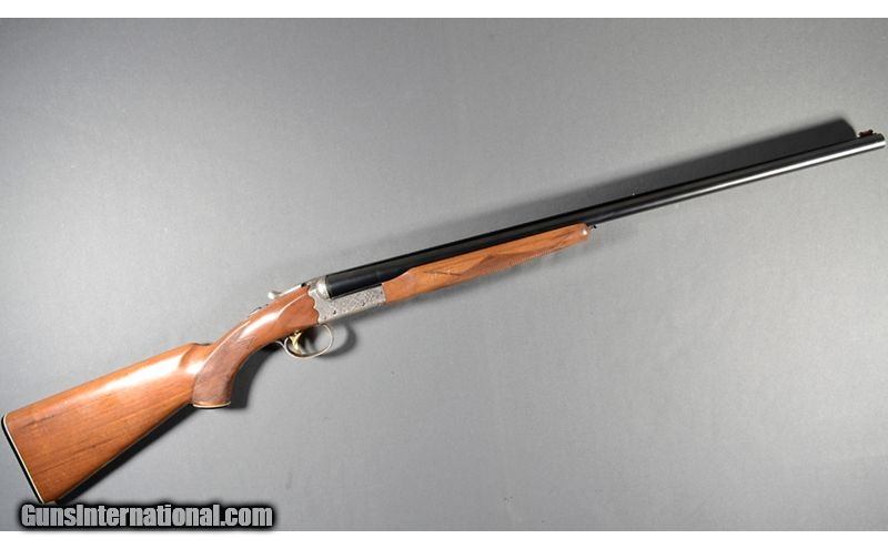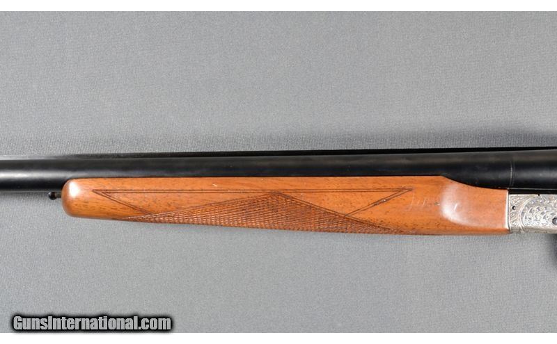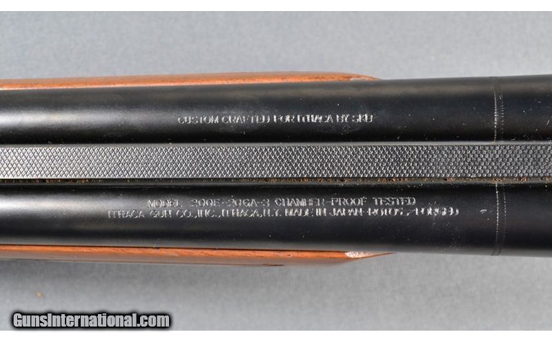 Description: Ithaca Model 200E side by side double barrel shotgun made for Ithaca by SKB in Japan from 1967 to 1977. Blued "Roto" forged steel barrels with raised matted rib with "Tru-Glo" front sight and bead mid-sight. Barrels marked "Custom Crafted For Ithaca By SKB" and "Model 200E-20GA-3IN Chamber-Proof Tested" over "Ithaca Gun Co., INC, Ithaca, NY Made in Japan-Roto Forged". Silver finished boxlock action with full coverage vignette engraving and scalloped finished rear of action. 20 Gauge SOLD Metal Condition: "Very Good, A Few Minor Scrapes, Beautiful Scroll Engraving Wood Condition: "Good, Has a chip on the bottom of the butt plate Bore Condition: Excellent Barrels: 25 Weight: 4lbs Item Location: Lacey, WA |