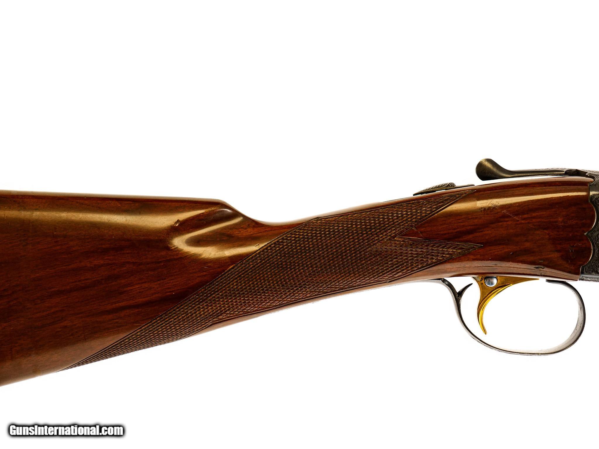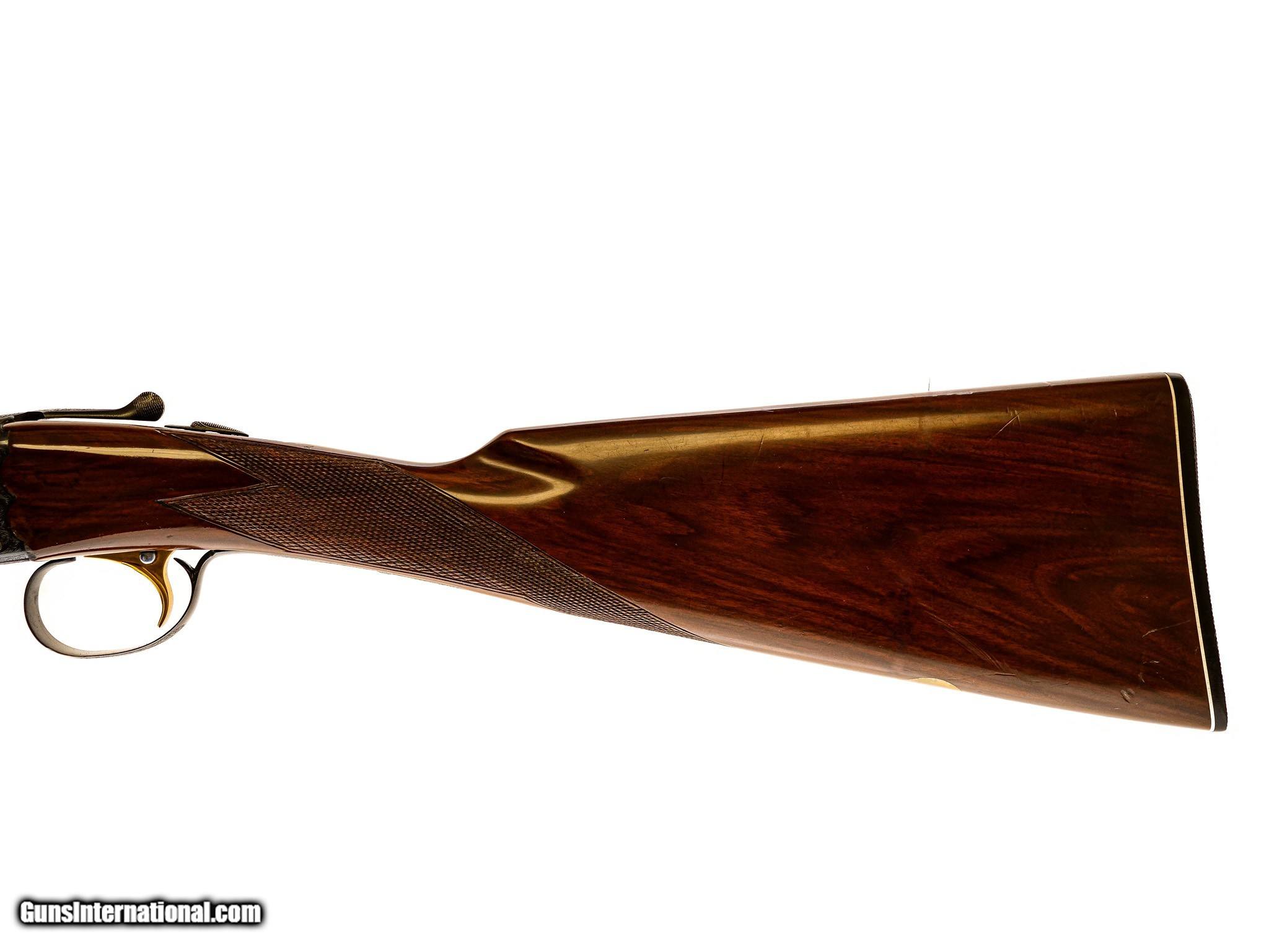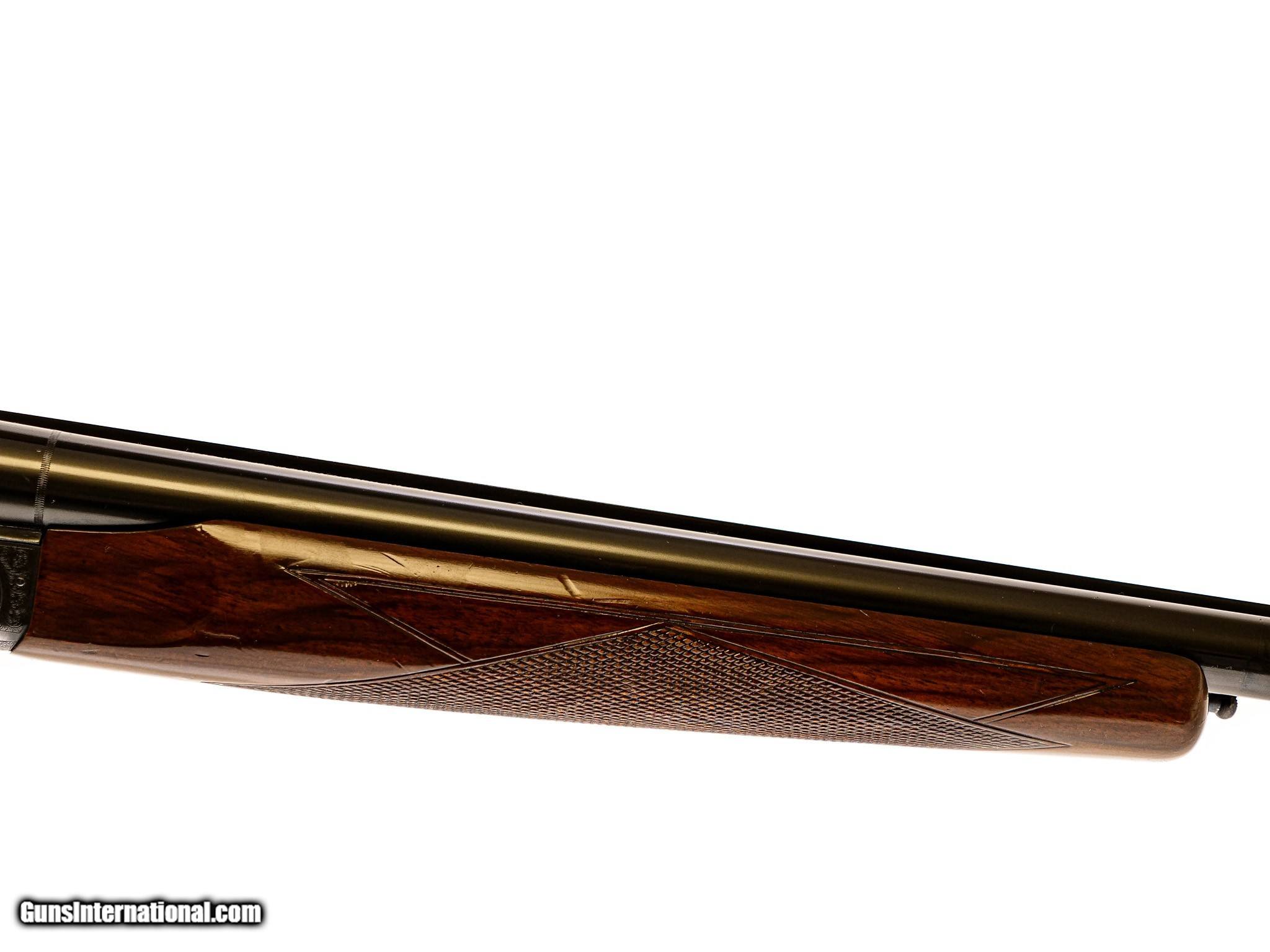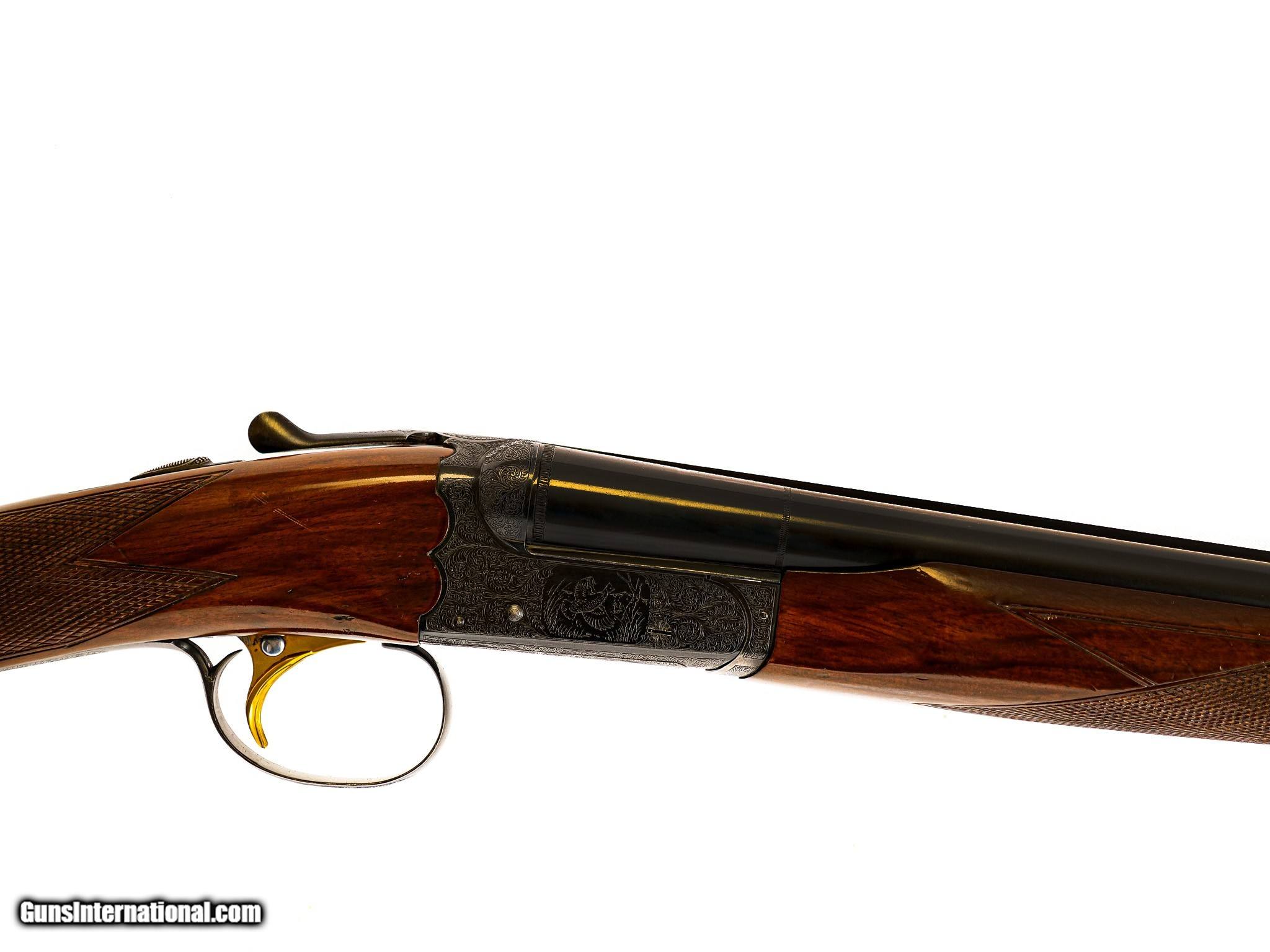 Description: Ithaca - SKB, 280, 20ga. 25" Barrels Choked IMP CYL/M. Beavertail single selective trigger, straight grip stock, virtually unused, minor handling marks on wood, perfect screws, sharp engraving, very desirable, Gun by SKB. Inv; 61806 6 lbs. 2 oz. 14 1/8" x 1 1/2" x 2 1/2" $2,600.00 SOLD |