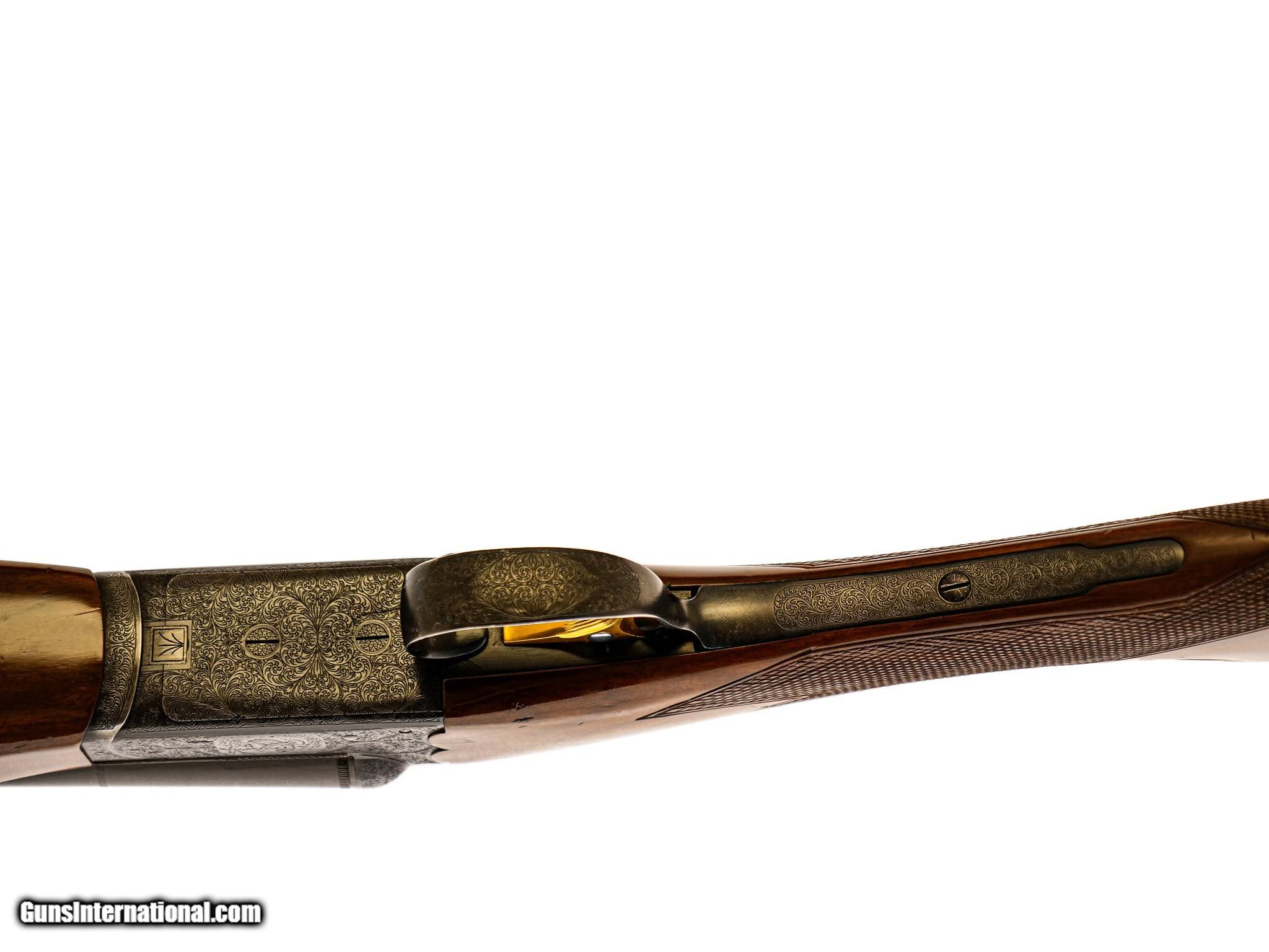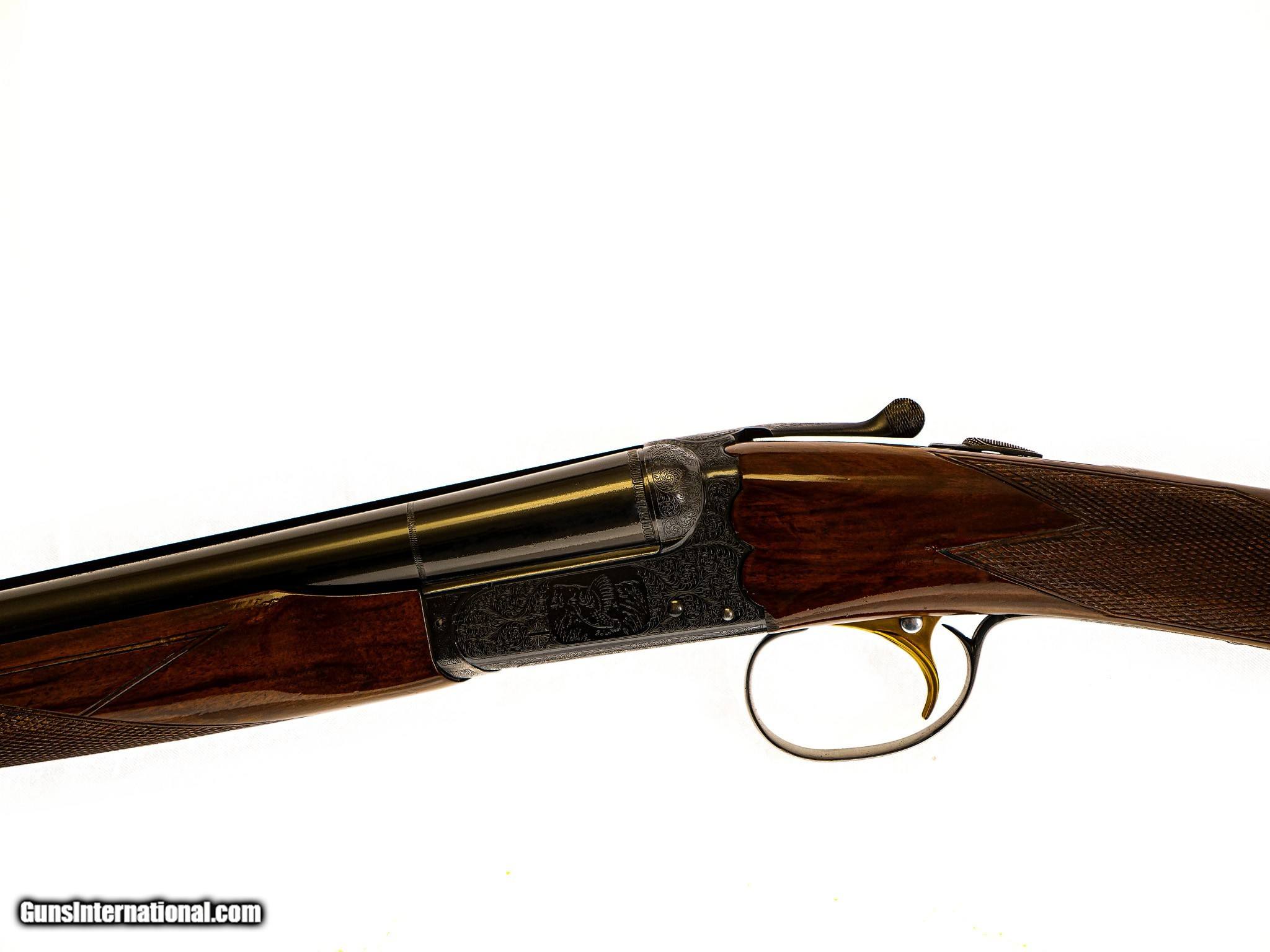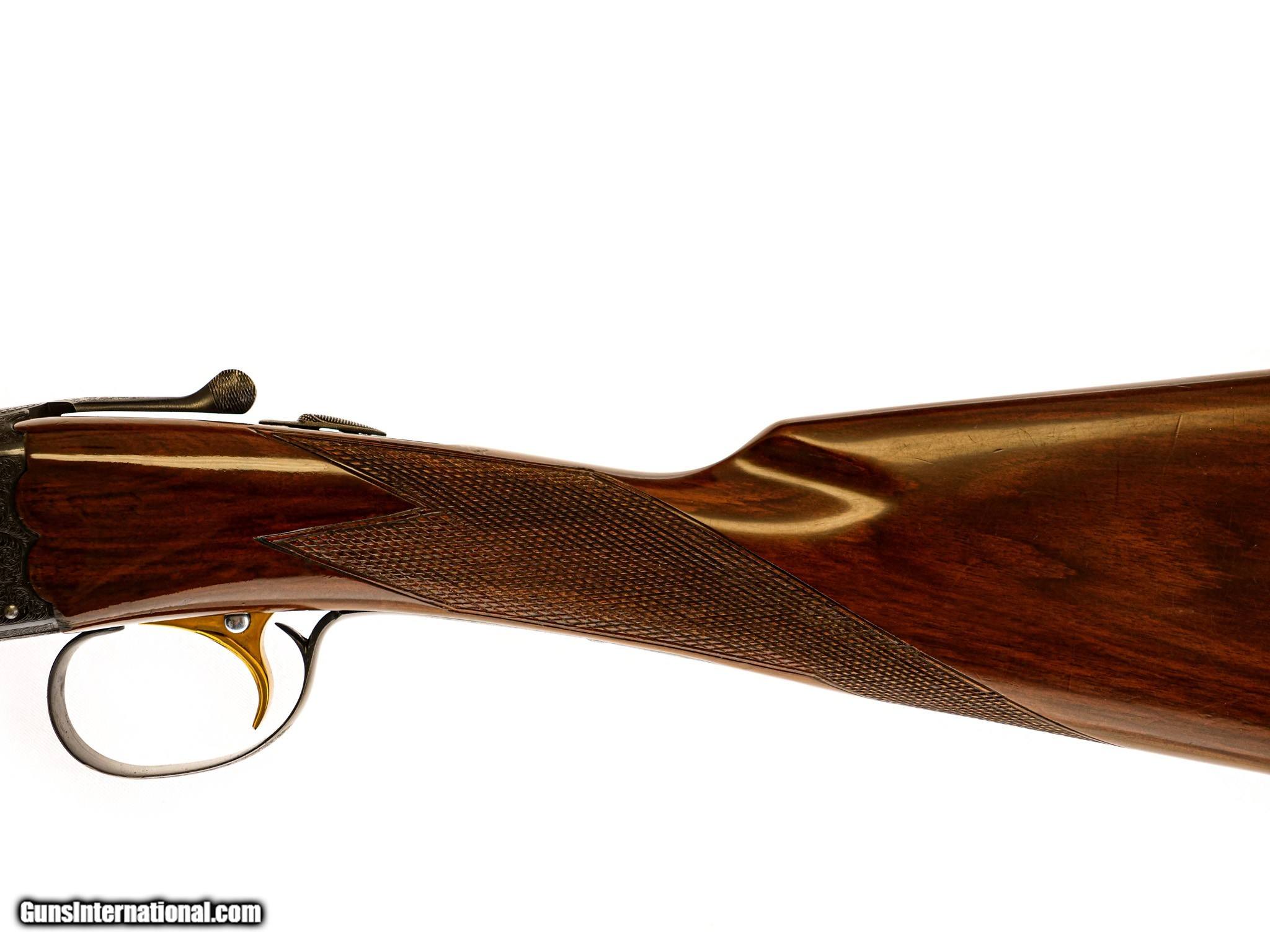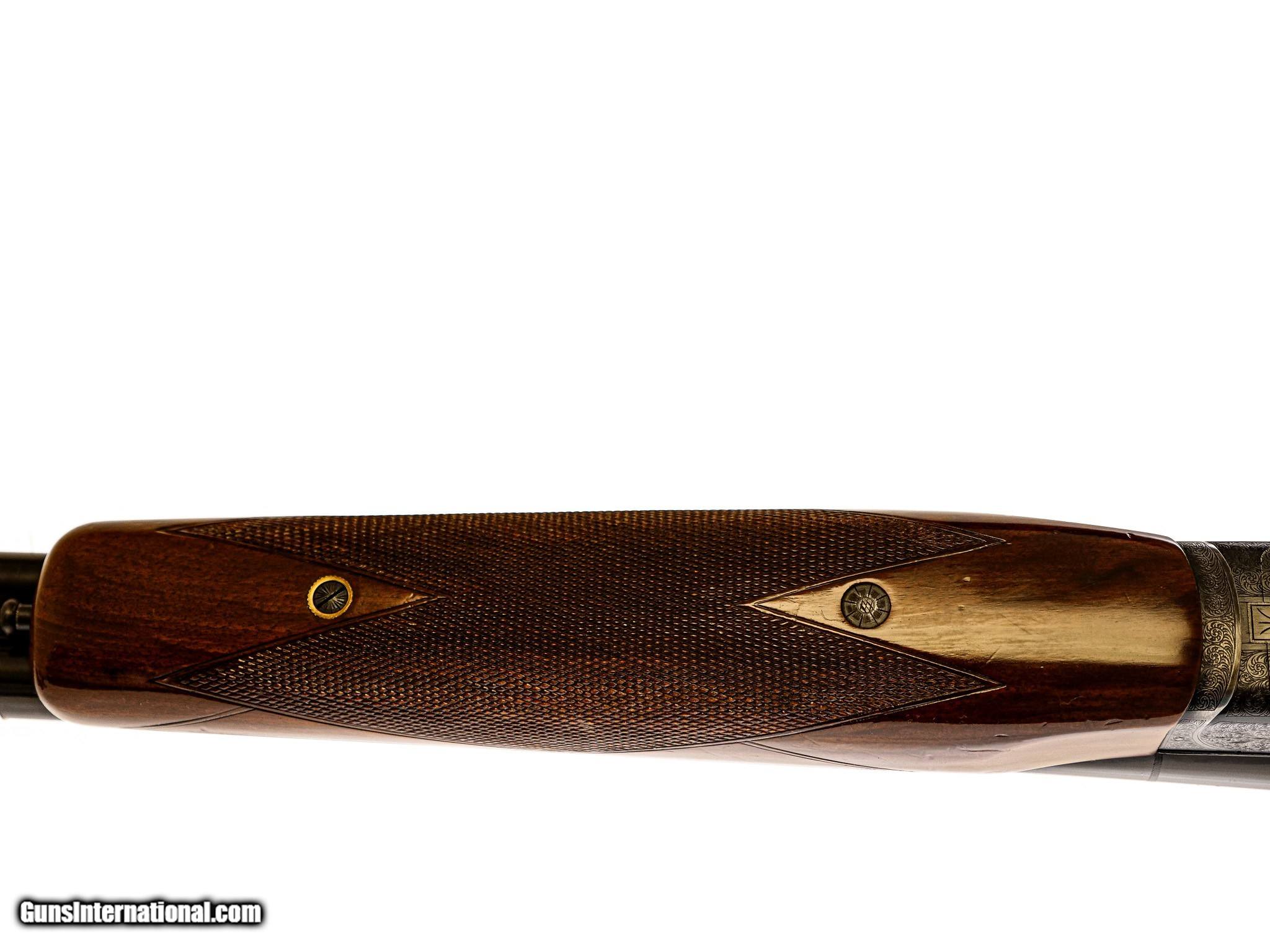 Description: Ithaca - SKB, 280, 20ga. 25" Barrels Choked IMP CYL/M. Beavertail single selective trigger, straight grip stock, virtually unused, minor handling marks on wood, perfect screws, sharp engraving, very desirable, Gun by SKB. Inv; 61806 6 lbs. 2 oz. 14 1/8" x 1 1/2" x 2 1/2" $2,600.00 SOLD |