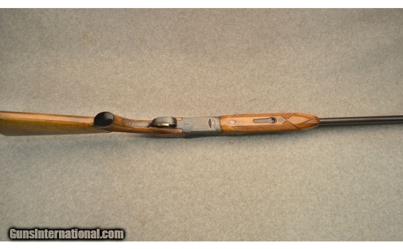 Description: A very nice 20 Gauge over and under shotgun. The wood shows signs of use, with field marks throughout the gun. The metal is pristine. Has a high visibility front bead that is very easy to pick up. Has fixed chokes. SOLD Caliber Info: 20 Gauge Chambers: Break action O/U with ejectors Metal Condition: Excellent Wood Condition: Very good with a good amount of field marks Bore Condition: Very shiny Barrels: 26 Inches with vent rib Triggers: Single gold colored trigger Stock: Mid-grade walnut with checkered pistol grip Stock Dimensions: 14 1/4 inch LOP Fore End: Matching checkered walnut Butt Pad: Ithaca butt plate Weight: 6 lbs 4 ozs Sights: Single front high visibility red bar Chokes: Fixed MOD and fixed CYL Item Location: Gainesville, VA |