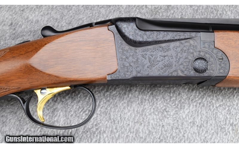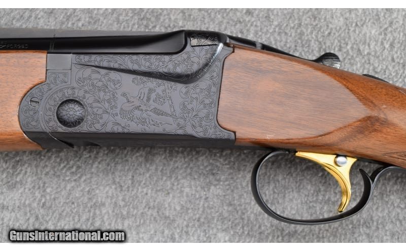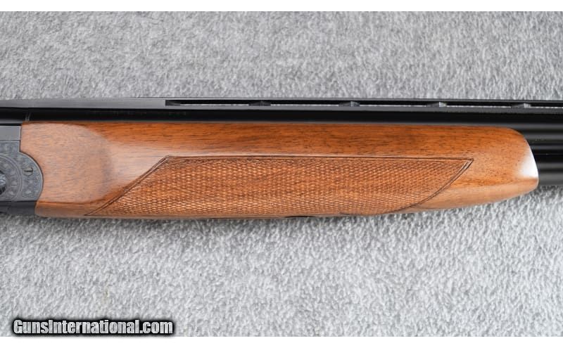 Description: This shogun was manufactured in Japan by SKB for Ithaca sometime before 2009. Gun is in excellent overall condition showing very little use. Wood is solid with only a couple very tiny dings in wood on bottom of left butt and above trigger at left wrist. Matte blue remains excellent with fully engraved receiver s featuring duck, pheasant and quail. Barrel is 28" matte vent rib with orange fiber optic front bead. Bores are excellent. This is an ejector gun with double Kersten locks. This is a little beauty! 20 Gauge SOLD Chambers: 3 Metal Condition: Excellent Wood Condition: Excellent Bore Condition: Excellent Barrels: 28" Vent Rib Triggers: Single Selective Trigger Stock Dimensions: 14" LOP Fore End: Checkered Walnut Pistol Grip with Black Pistol Grip Cap - Checkered Walnut Forend Butt Pad: Ithaca/SKB Checkered Black Plastic Butt Plate Weight: 6 1/2 lbs Sights: Orange Fiber Optic Front Chokes: Full/Modified - Fixed Item Location: Wheeling |