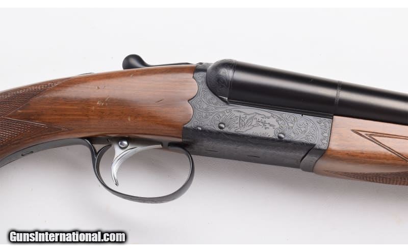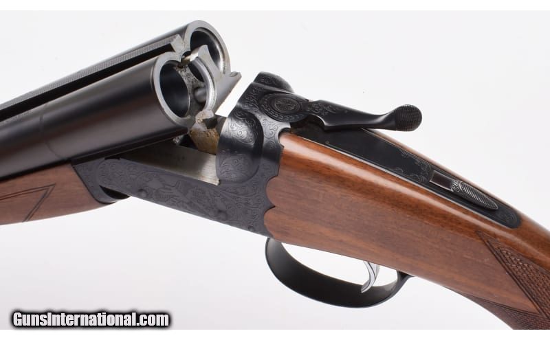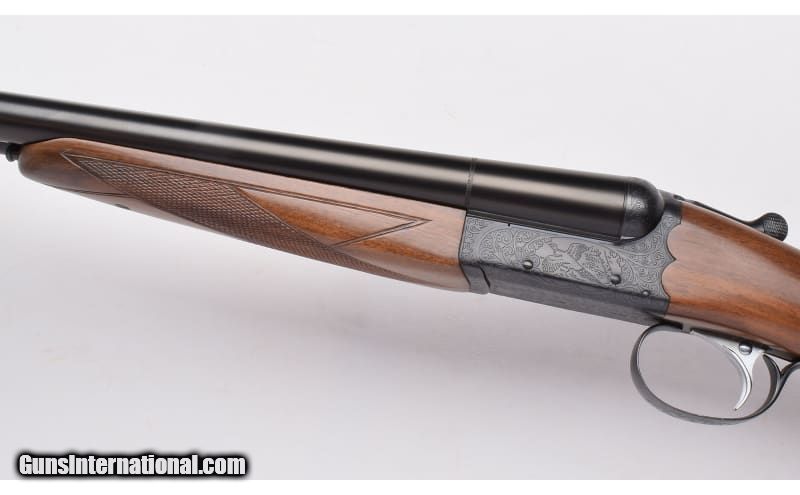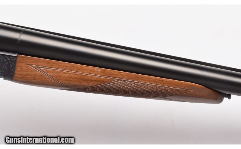 Description: Ithaca side by side built by SKB. Boxlock action with extractors and auto safety. Solid with excellent bluing, stock shows scattered small ding and scratches. 12 Gauge SOLD Chambers: 2 3/4 Metal Condition: "Blued, Scroll engraved receiver Wood Condition: Checkered wood pistol grip Bore Condition: Bright Barrels: 26 Triggers: Single Select Stock Dimensions: 14" LOP Fore End: Splinter Butt Pad: Factory Plate Weight: 6 lbs 11 oz Sights: "Matted Rib, Metal Bead Chokes: Imp Cyl. / Modified Item Location: Buda, TX |