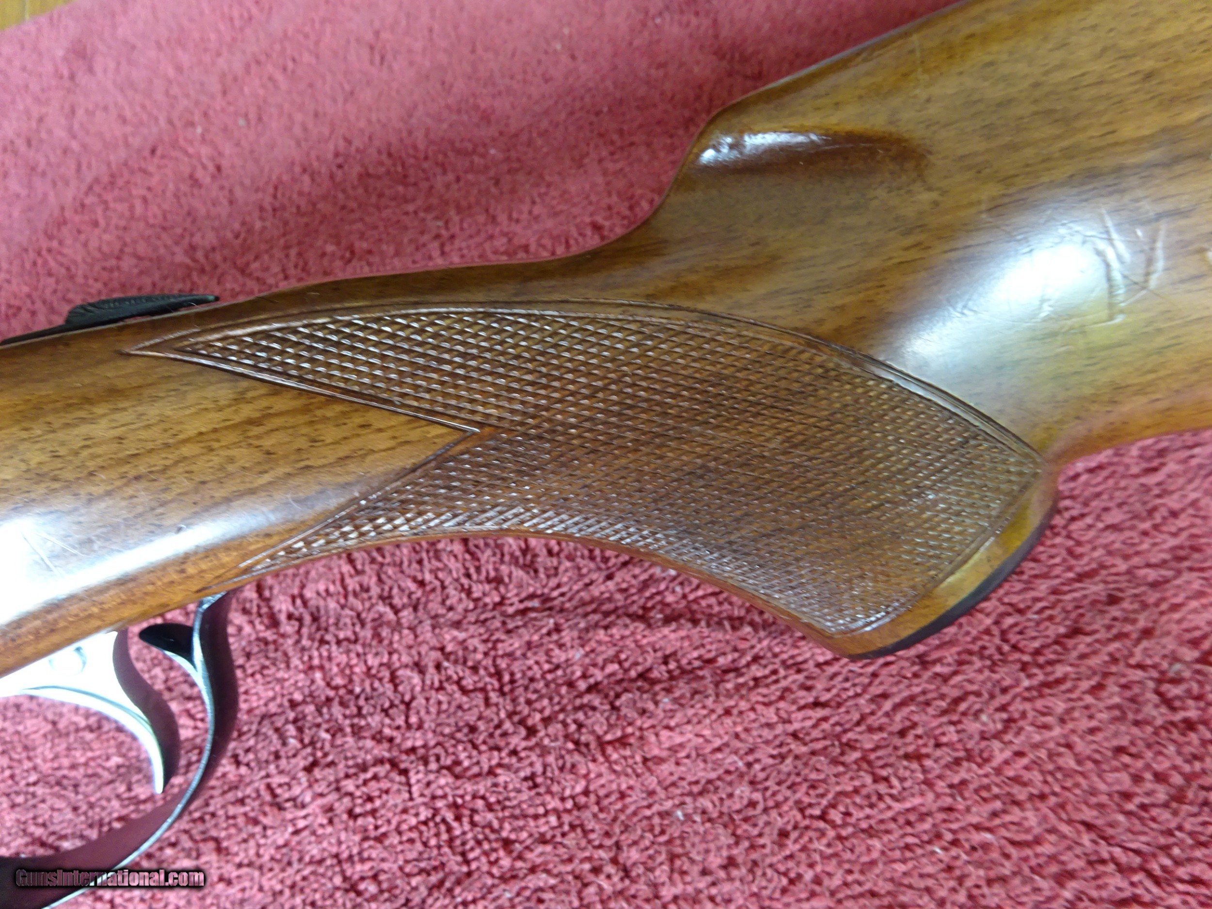 Description: ITHACA SKB MODEL 100, 20 GAUGE, 28" BARRELS, 3" CHAMBERS. 100% BLUE, MIRROR PERFECT BORES, BRILEY CHOKE TUBE SET OF 6 WITH WRENCH (COST TODAY $550.00). SCROLL ENGRAVING PATTERN, SINGLE SELECTIVE TRIGGER. PISTOL GRIP STOCK, SPLINTER FOREARM, EXCELLENT WOOD AND CHECKERING, 1 1/2" X 2 1/2" X 14 3/8". KICK-EEZ PAD. VIRTUALLY NO BLUE WEAR - THE GUN HAS BEEN USED VERY LITTLE. MADE CIRCA 1968-1980. $1375.00 + $50.00 Insured shipping to an FFL address. See all Pats listings We also have hundreds of pieces of ORIGINAL gun company advertising & memorabilia available for sale. We have no reprints or reproductions. Email for more information. SOLD Serial Number: 6109xxx |