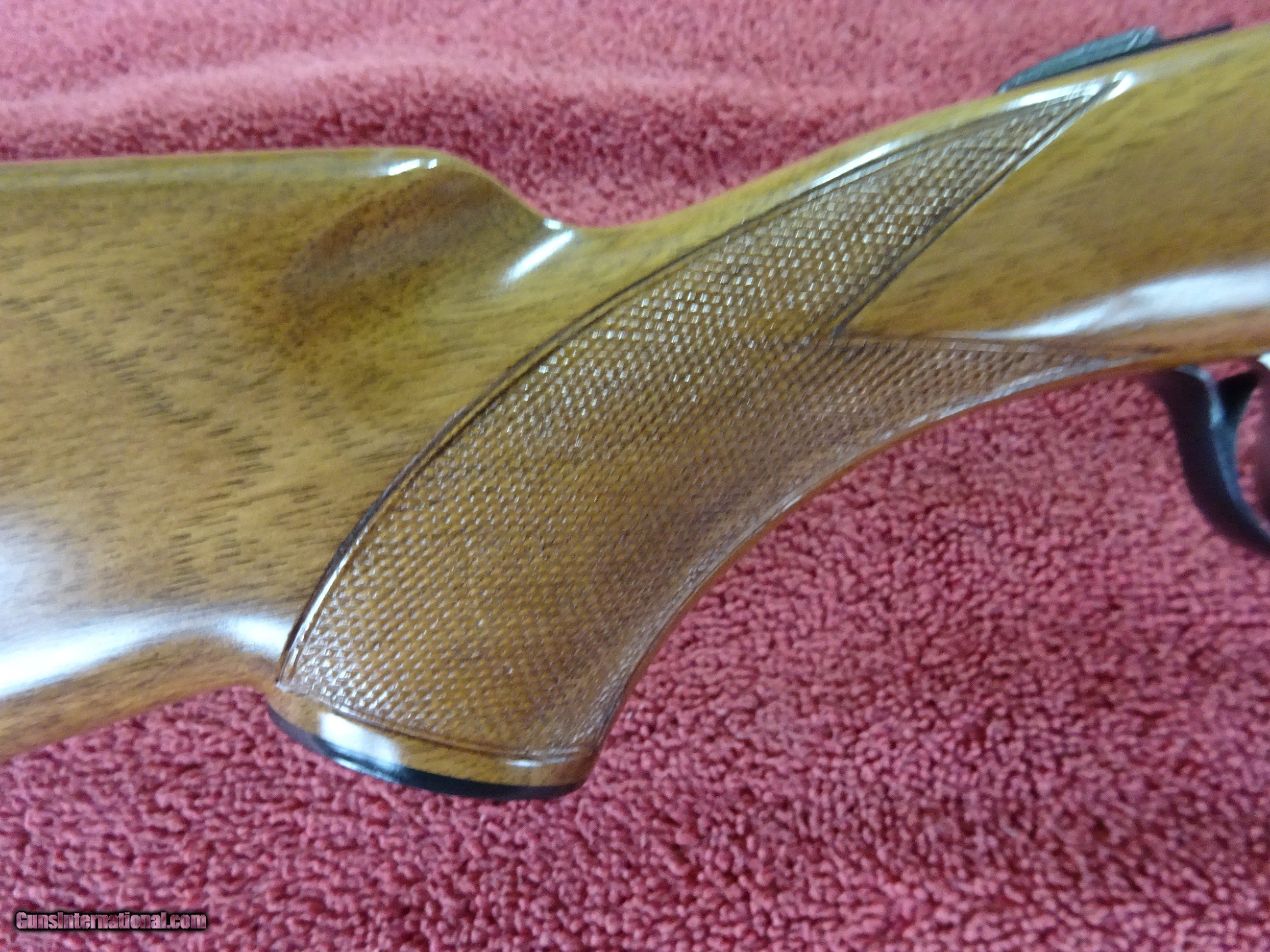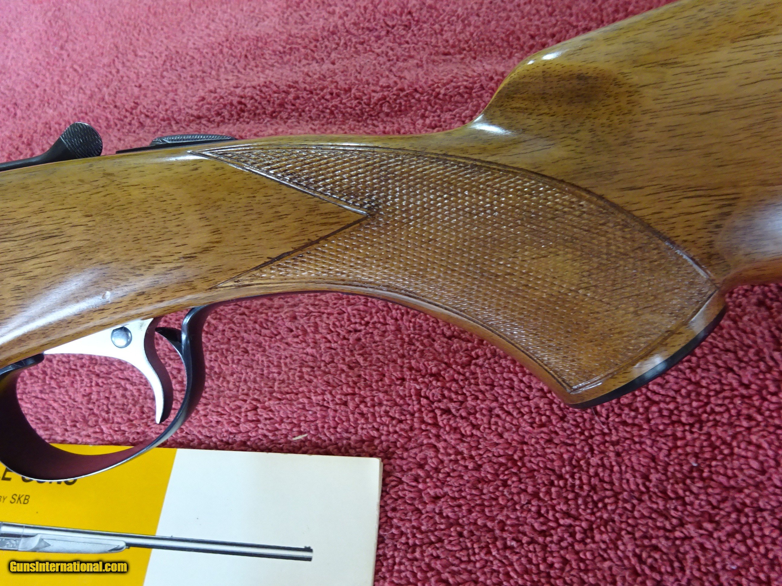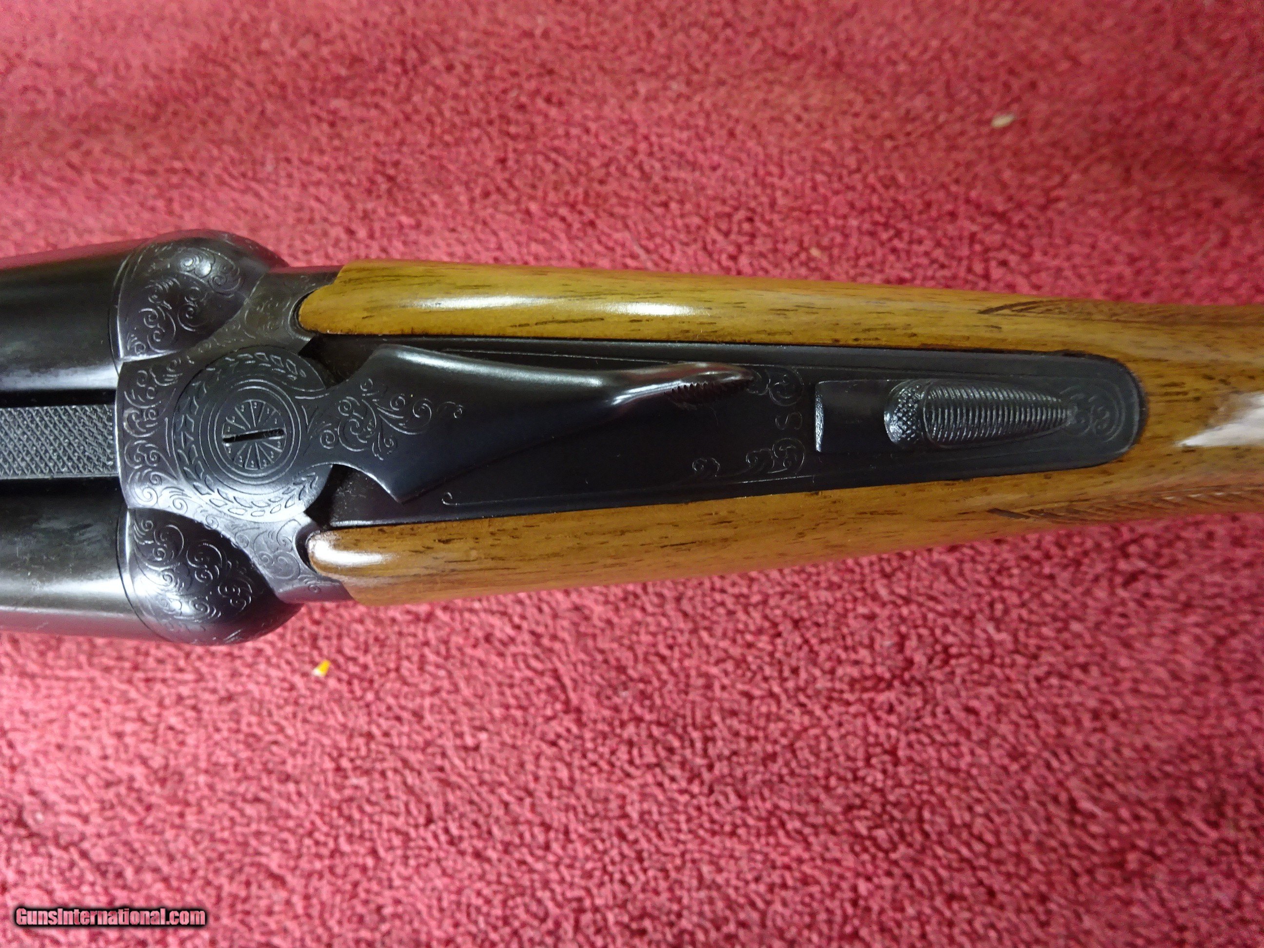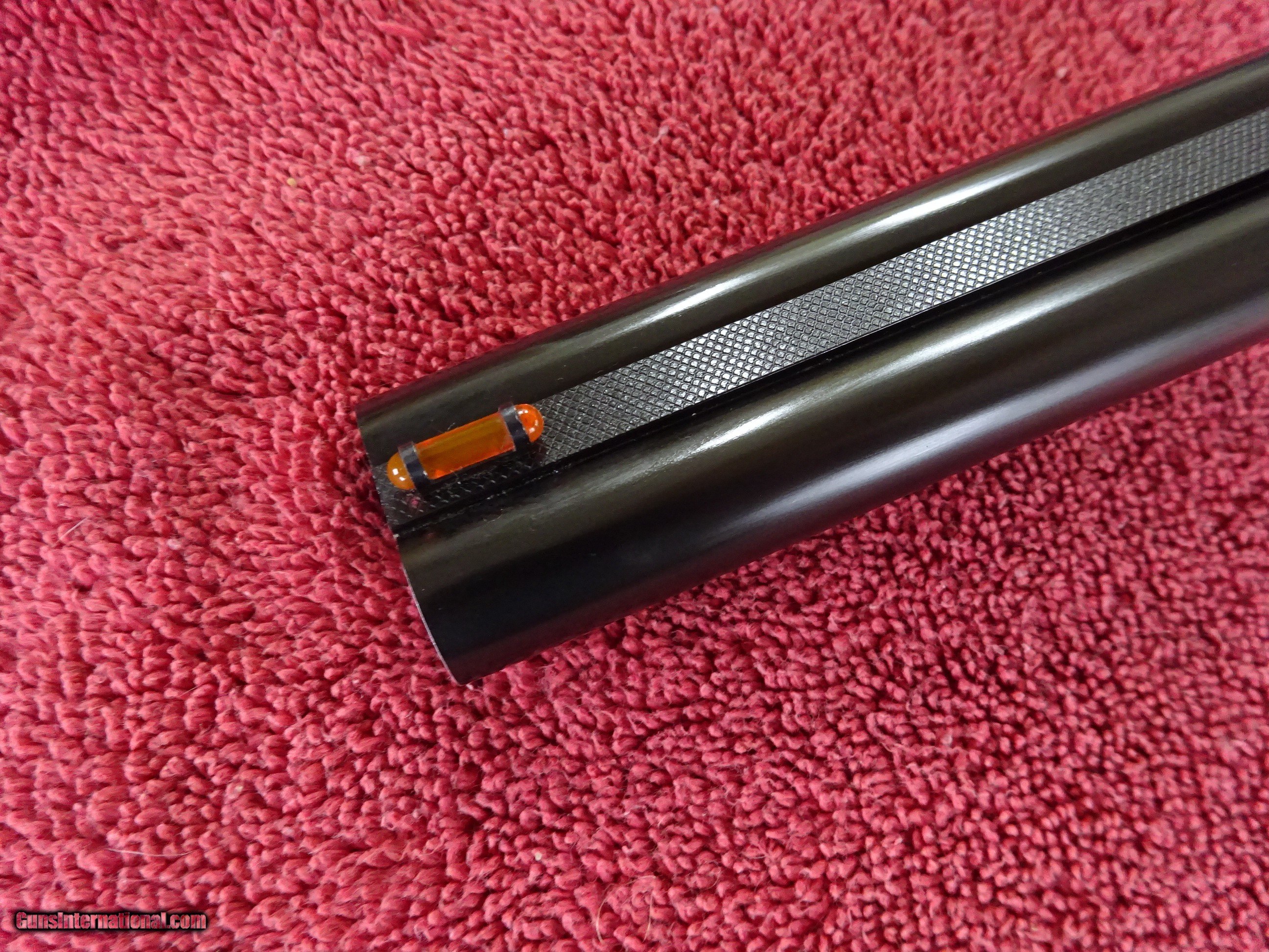 Description: ITHACA SKB MODEL 100, 20 GAUGE. 25" BARRELS, IMCYL. AND MODIFIED, 3" CHAMBERS. MIRROR PERFECT BORES, SINGLE SIGHT. MARKED "CUSTOM CRAFTED FOR ITHACA BY SKB". SCALLOPED BOXLOCK FRAME, FULLY ENGRAVED, MALLARD IN FLIGHT ON RIGHT SIDE, PHEASANT ON LEFT SIDE, PLUS SCROLLWORK AND BORDERS, ENGRAVED SCREWS. SINGLE SELECTIVE TRIGGER, AUTO SAFETY. PISTOL GRIP STOCK, SPLINTER FOREARM, ORIGINAL GRIP CAP AND ITHACA MARKED BUTTPLATE. OVERALL CONDITION IS LIKE NEW. NO BLUE WEAR, NEAR PERFECT CHECKERING AND WOOD FINISH, 1 1/2" X 2 1/2" X 14", 5 POUNDS 10 OUNCES. MADE 1967 TO 1977. INCLUDES ORIGINAL INSTRUCTION BOOKLET, 16 PAGES FULLY ILLUSTRATED, NO BOX. $1475.00 + $70.00 Insured shipping to an FFL address. Layaway is available. See all Pats gun listings on this site! We also have hundreds of ORIGINAL gun company advertising & memorabilia pieces available for sale on our site SPORTINGCOLLECTIBLES. We have no reprints or reproductions. Email for more information. If you need to call, morning or evening is best, and please note the Seller's Inventory number. SOLD Curio/Relic: Yes |