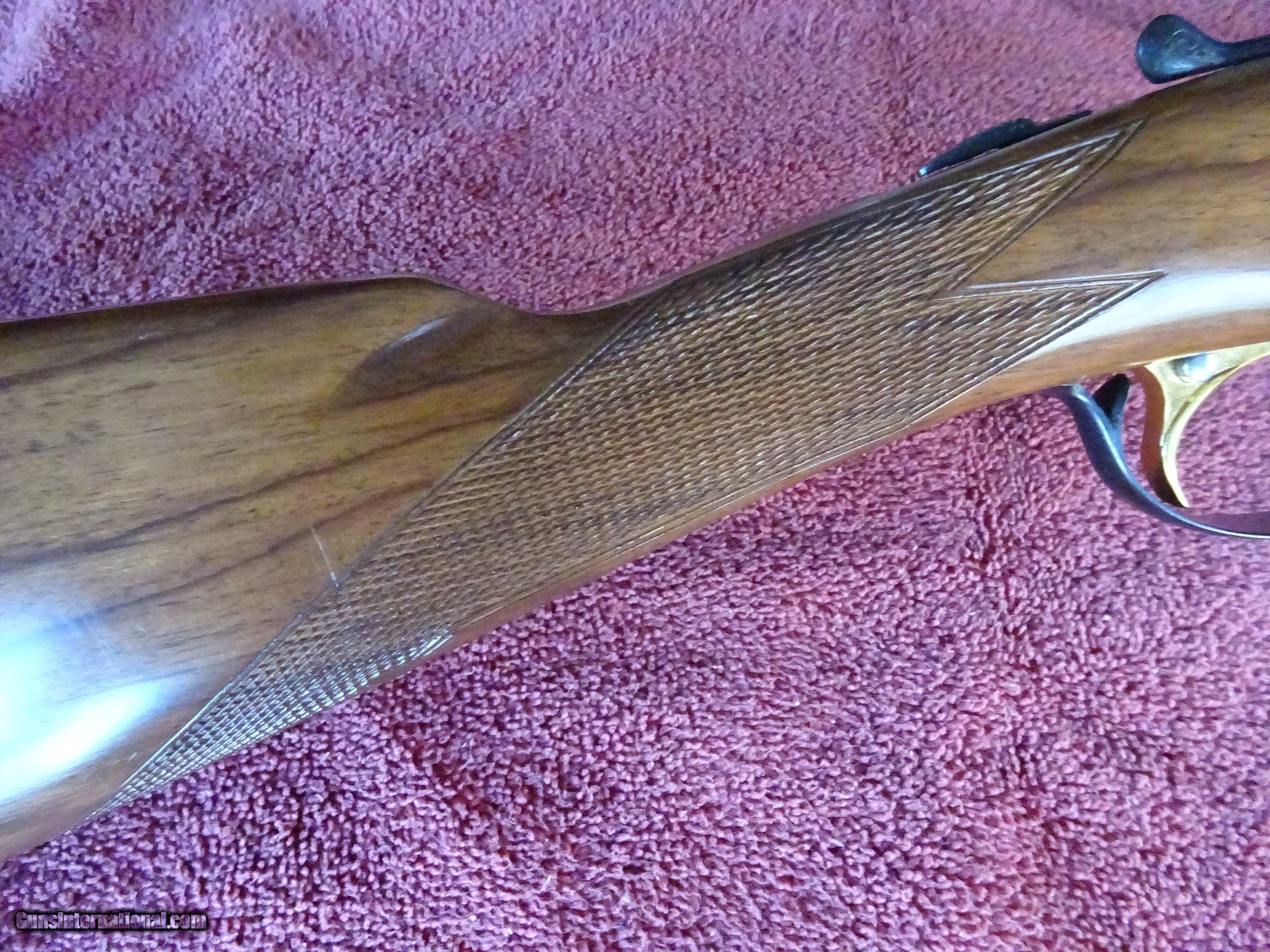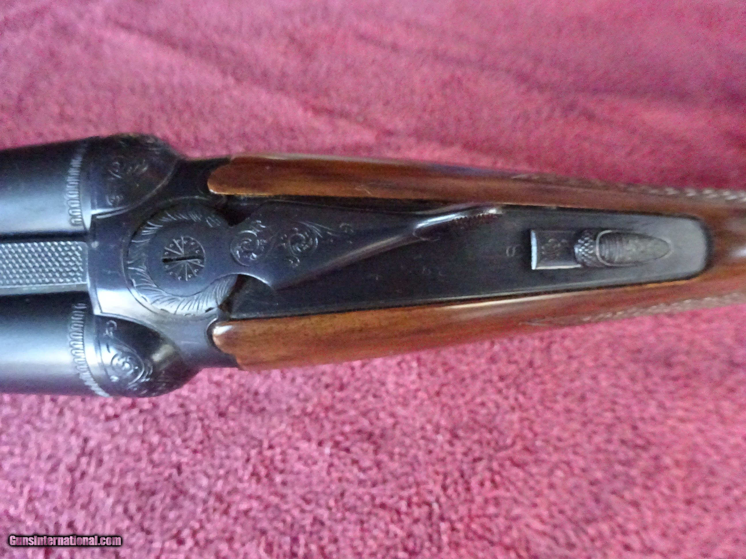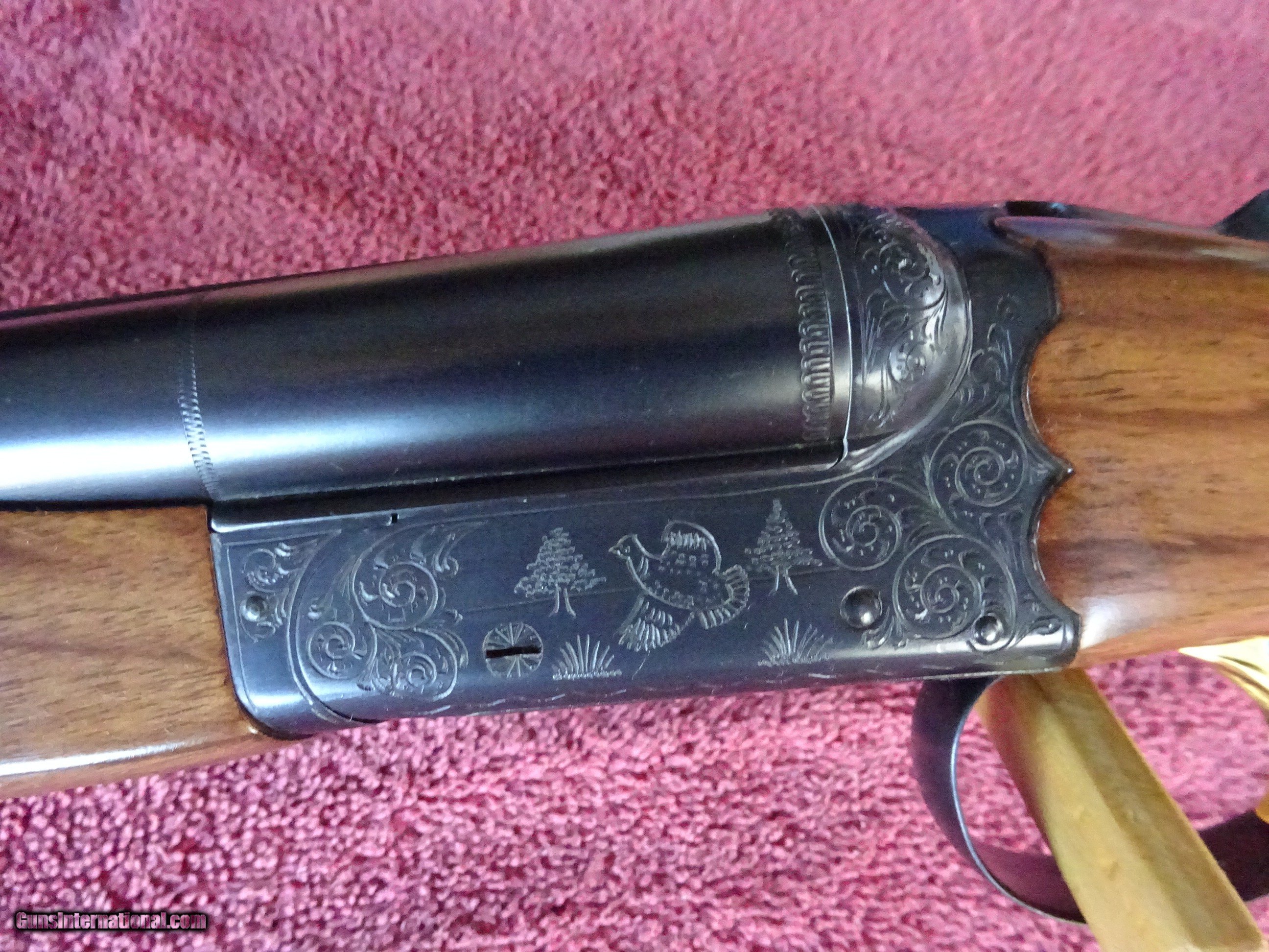 Description: ITHACA SKB MODEL 280, 20 GAUGE, 25" BARRELS, IMCYL, AND MODIFIED, 3" CHAMBERS, TWIN SIGHTS, AUTOMATIC EJECTORS. GOLD SINGLE SELECTIVE TRIGGER, AUT0-SAFETY, SCALLOPED BOXLOCK FRAME ENGRAVED WITH GAME BIRDS IN FLIGHT AND SCROLLWORK. TOP LEVER TO THE FAR RIGHT, TIGHT AS NEW. STRAIGHT GRIP STOCK, BEAVERTAIL FOREARM, ATTRACTIVE WOOD WITH DARK STREAKS. ORIGINAL ITHACA SKB MARKED BUTTPLATE, 1 1/2" X 2 1/2" X 14 1/4", 5 POUNDS 15 OUNCES. AS NEW OVERALL CONDITION, NO WEAR. GREAT LITTLE UPLAND GAME GUN. MADE 1967 TO 1977, 100% ORIGINAL CONDITION. INCLUDES ORIGINAL 16-PAGE INSTRUCTION BOOKLET, BUT NO BOX. $1975.00 + $70.00 Insured shipping to an FFL address. Layaway is available. See all Pats gun listings on this site! We also have hundreds of ORIGINAL gun company advertising & memorabilia pieces available for sale on our site SPORTINGCOLLECTIBLES. We have no reprints or reproductions. Email for more information. If you need to call, morning or evening is best, and please note the Seller's Inventory number. SOLD |