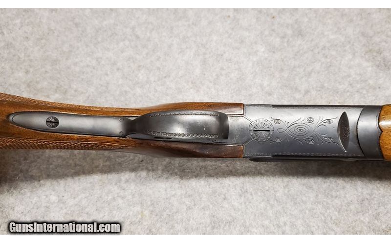 Description: ITHACA/SKB MODEL 500 20 GAUGE OVER/UNDER SHOTGUN. 26" vent rib barrels, metal sight bead, 3" chambers, single selective trigger, selective ejectors, top tang safety, blued barrels and receiver, receiver is fully scroll engraved with checkered forearm and stock with a SKB buttplate. This is high quality shotgun in excellent 95% original condition. The action is tight, the bores are excellent, and the wood is free of cracks or splits with scattered light marks. 20 Gauge SOLD Chambers: 20 Ga Metal Condition: Very Good Wood Condition: Very Good Bore Condition: Very Good Barrels: 26 Triggers: Single Trigger Stock Dimensions: 14" LOP Fore End: Very Good Butt Pad: Very Good Weight: 6lbs 3oz Sights: Front Bead Chokes: Top: Fixed Improved Cylinder Bottom: Fixed Cylinder Item Location: Berlin |