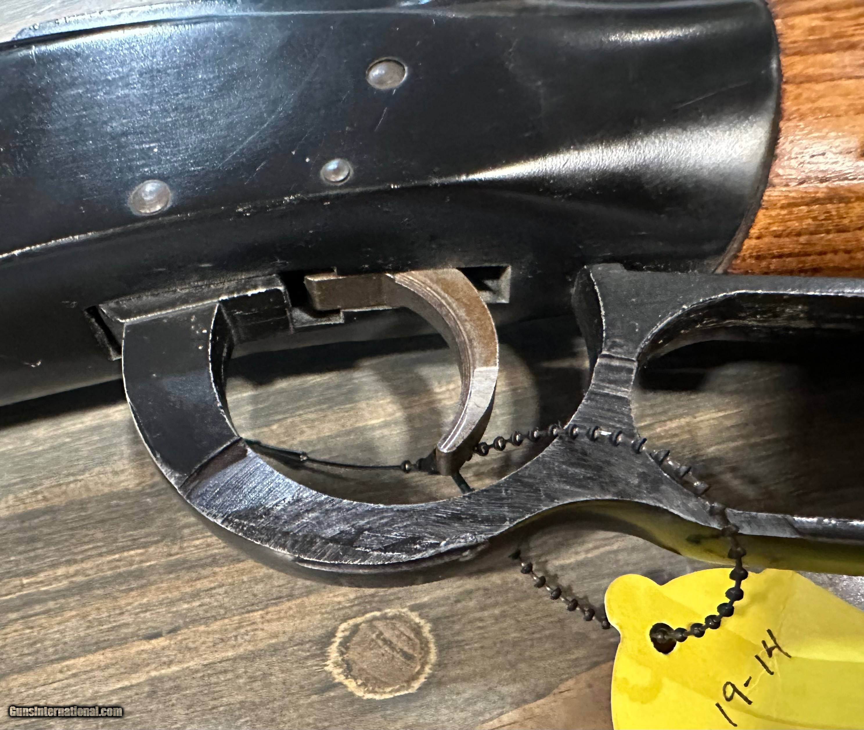 Description: This is a Ithaca Model 66 Super Single in 20 ga. it has a 3" chamber and a fixed modified choke. The lever handle breaks open the shotgun. Bluing is 90% with some freckling on the barrel. The receivers came from the factory with a epoxy finish. this shotgun has some wear on the edges and most prevalent on the handle. the handle has a spot on the left that looks like it rubbed against a rotating pulley. you can see it in the pictures. Shinny bore. Includes all shipping and Credit Card Fees SOLD Shotgun Gauge: 20 Gauge Manufacturer: Ithaca Model: 66 Super Single Serial Number: 660254755 Barrel Length: 27-3/4 Condition: Good Metal Condition: Good Wood Condition: Good Bore Condition: Very Good Chokes: Modified Item Location: Buxton Maine |