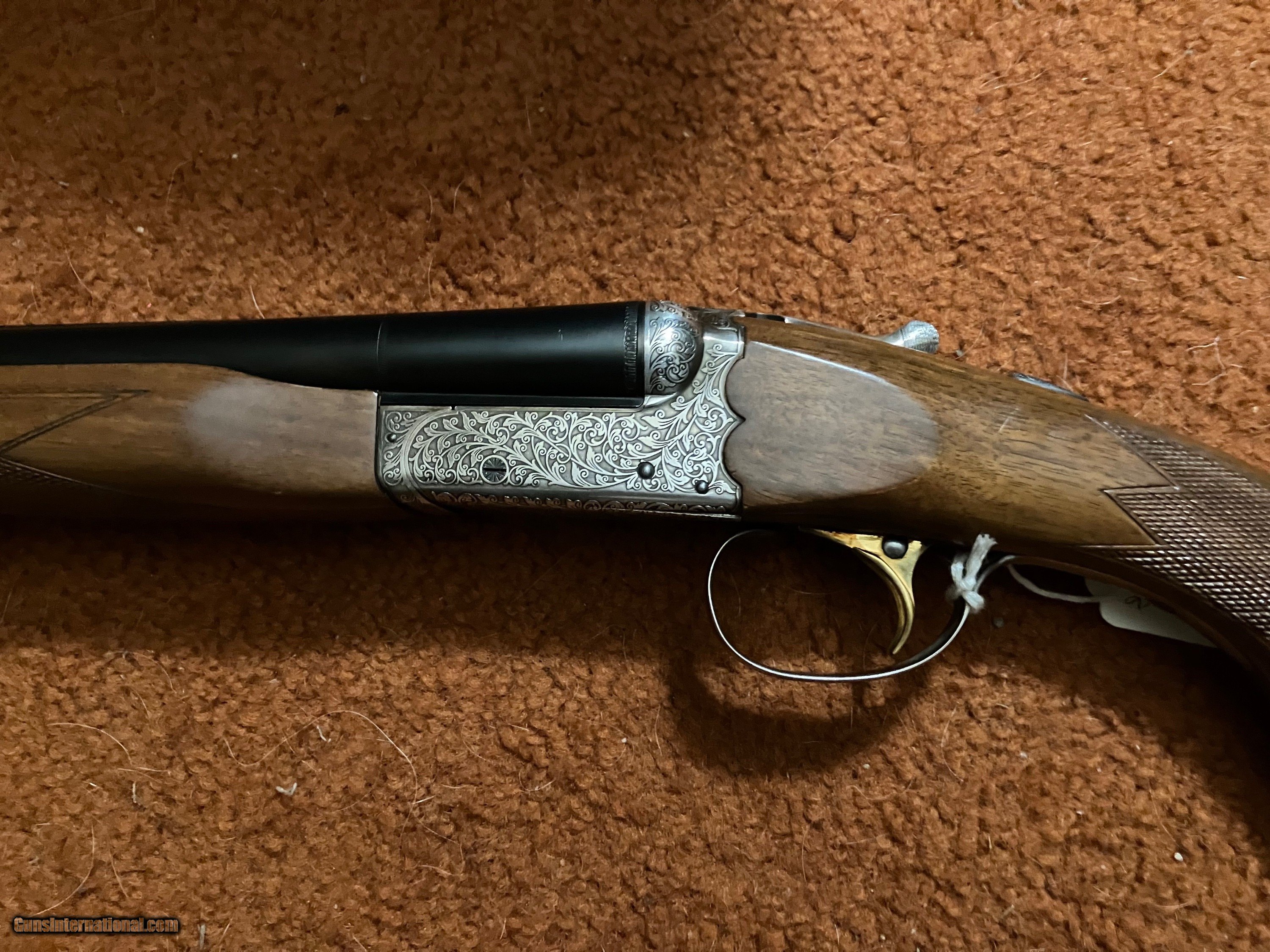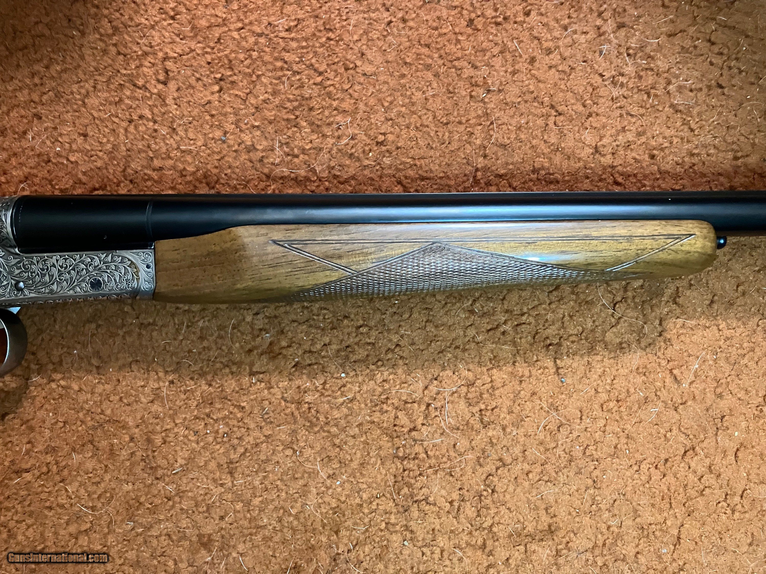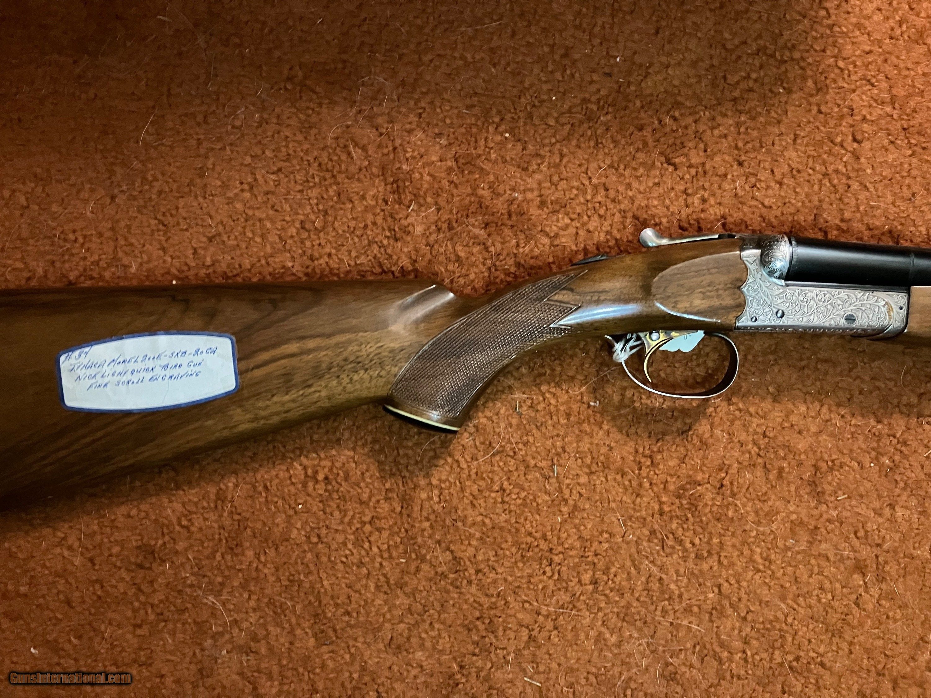 Description: This Ithica 200E 20 Gage is like new. Extremely clean through out, great light weight bird gun. Description: For your consideration, the SKB 200E side-by-side shotgun chambered in 20 Gauge. The Japanese manufacture SKB made shotguns for brand names like Browning, Weatherby and BSA and first started exporting in the 1960s. The 200E had a limited run, but not a lot of information on the production numbers. The Model 200 and 200E are essentially the same, the E meaning (English Style Stock). This model was made for Ithaca, who imported them from 1968 to 1978, which could explain why it has the American style stock. 20 Gauge SOLD Curio/Relic: Yes Shotgun Gauge: 20 Gauge Manufacturer: Ithaca Model: 200 E Serial Number: 2052 Barrel Length: 25” Bore: 20 Gag Ejectors: Yes Condition: Excellent - Like New Metal Condition: Excellent Wood Condition: Excellent Bore Condition: Bright and shiny Barrel Type: Double Action: Double Engraving: Very nice engraved silver receivers and other engraved areas also Item Location: Hanover, Pa |