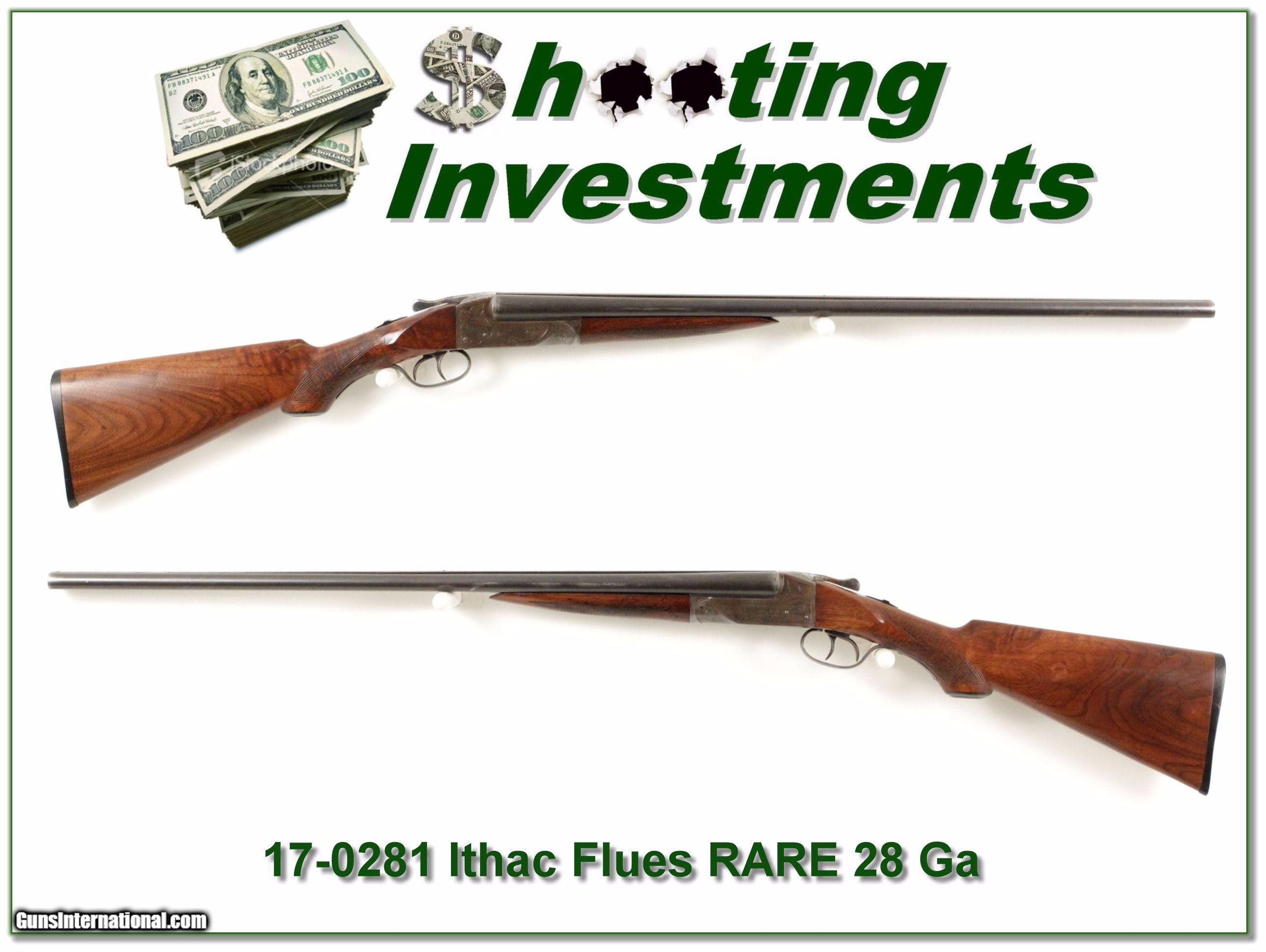 Description: Collectors, this is a rare, Ithaca Flues 28-gauge, 1.5 grade shotgun with shiny, 26-inch bores sporting an ivory front bead. With chokes marked 0 and 4, this lightweight, perfectly balanced shotgun is in very good mechanical condition, ideal for small game and bird hunting or shooting a round of vintage, small gauge, sporting clays. I am selling this one on consignment and as such, lay-a-way can’t be used. It does of course have the standard 3-day inspection. Shipping and insurance is $35 or $15 more if you want it shipped in a new Plano hard case. Please email me with any questions or larger pictures. (I now consign quality firearms only 10%! Let me know if you have any you would like to sell!) 17-0281 Payment: Payment is by Money Order, Cashiers Check or Personal Check. I can now also accept MasterCard and Visa with a 3% convenience fee. PayPal can be used for some items but never firearms. Please let us know if you would like to pay via PayPal. Shipping: The shipping charge will be listed in each description. It is $35 for most guns. Some heavy guns or those insured for over $2000 will be higher. Shipments to Alaska and Hawaii are higher because air shipment is required. Most firearms are shipped within 5 days of receipt of payment. We prefer shipping at the beginning of the week to avoid firearms in transit over weekends. We package all shipments carefully and insure them for the full purchase price, rounded up to the next $100. In the unlikely event that damage occurs, it is important that you save all packaging material for the claims process. Optics are shipped Priority Mail and most other non-firearm shipments are shipped First Class. Returns: Our return policy is simple. If for any reason you are not pleased with your purchase, you may return your item for a refund. The only exception is ammunition, it cannot be returned. It is important to us that you are happy. Guns cannot be fired or dissembled before returning them and must be returned in the same condition as received. Notification of a return must occur with-in 3 days of receipt at your dealer. Shipping, convenience and dealer fees are not refundable and are the responsibility of the buyer. Lay-a-way: If needed, we offer a 60 day lay-a-way option on most firearms. It is 1/3 now, 1/3 in 30 days and 1/3 in 60 days. Lay-a-way firearm sales are final. Consigning your firearms with Shooting Investments: We will help you get top dollar for your firearms. While most local guns shops charge 20% or more, our fee is only 10% with a minimum of $50. At your local gun shop it might take months to sell. Selling on-line provides instant access to thousands of interested buyers. You won’t find any other on-line dealer willing to sell your firearms for only 10% or listing every gun on 4 separate s. Selling through an House typically costs the seller 15% and the buyer an addition 15% (so 30%) and you have to wait several months to sell and longer to receive funds. If properly priced, we will sell your firearms in a week or two. Send us an email or give us a call and we’ll explain how easy it is for you to get top dollar. Trading: We collect guns and usually just trade for guns we want to add to our collections. We often sell guns for others wanting to purchase one of ours. We find this the most fair to both of us. Our Commission is only 10% and we hold the gun you want until yours sells. Please contact us if you want to sell one of yours to buy one of ours. Help for California Buyers: We are happy to ship to California. It is the buyer’s responsibility to make sure any item you buy is legal in your state. We are also happy to help with your purchase of a firearm from someone other than us. If you see a gun you would like to buy but the seller can’t or won’t ship to California we can help. You buy the gun and have it shipped to us. We’ll then ship it to your California dealer. The cost for this service is only $30 + shipping. Let me know if we can help! SOLD |