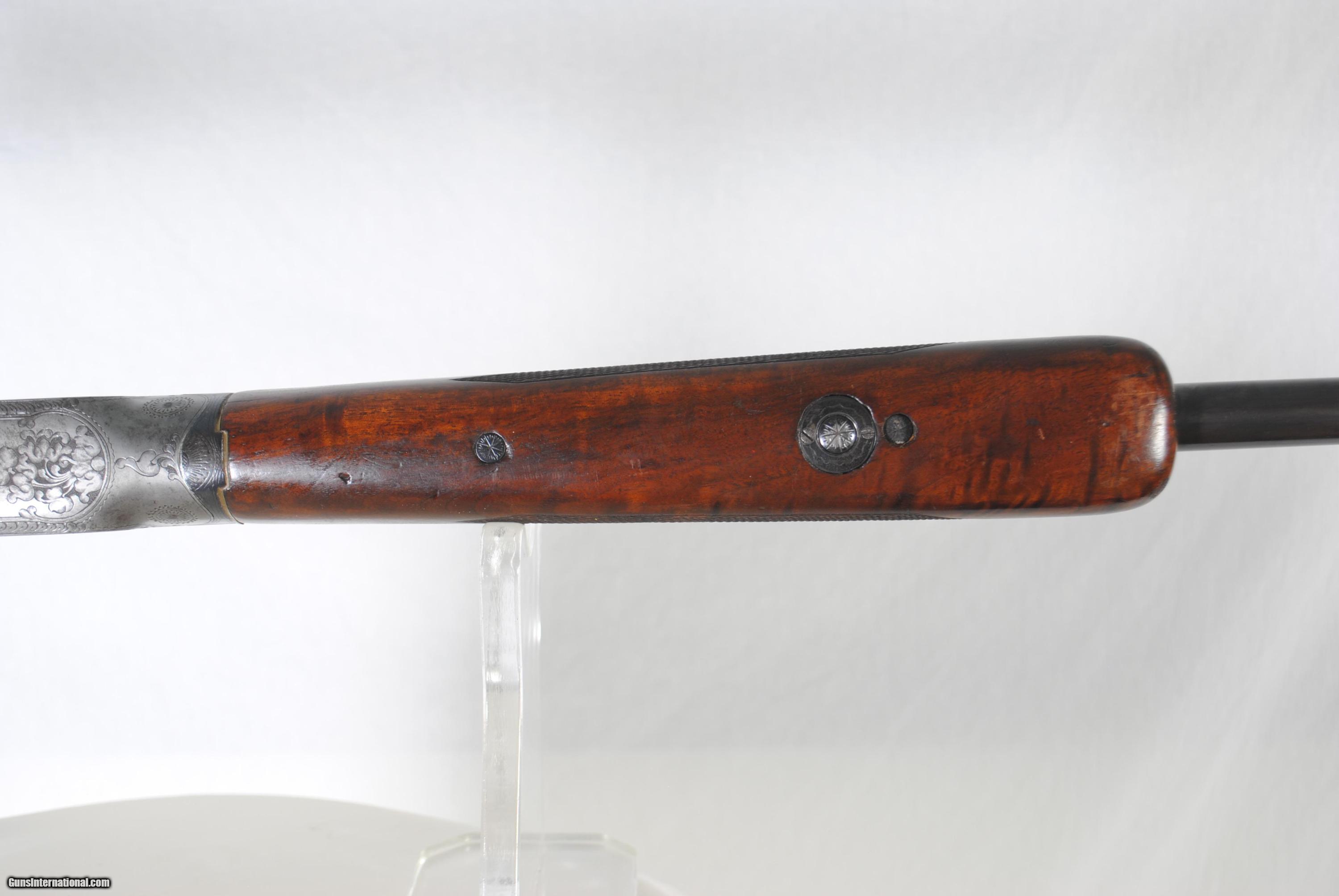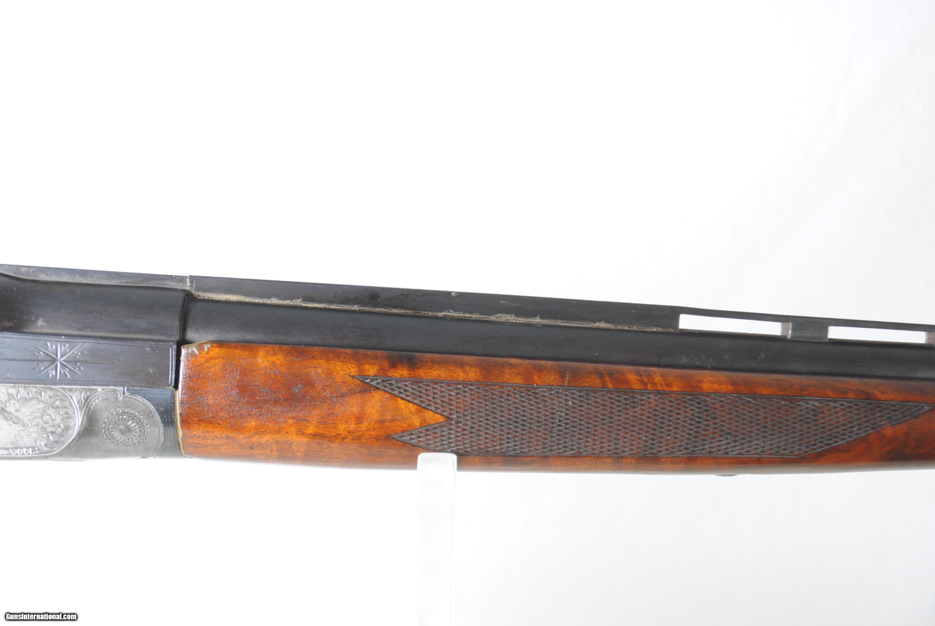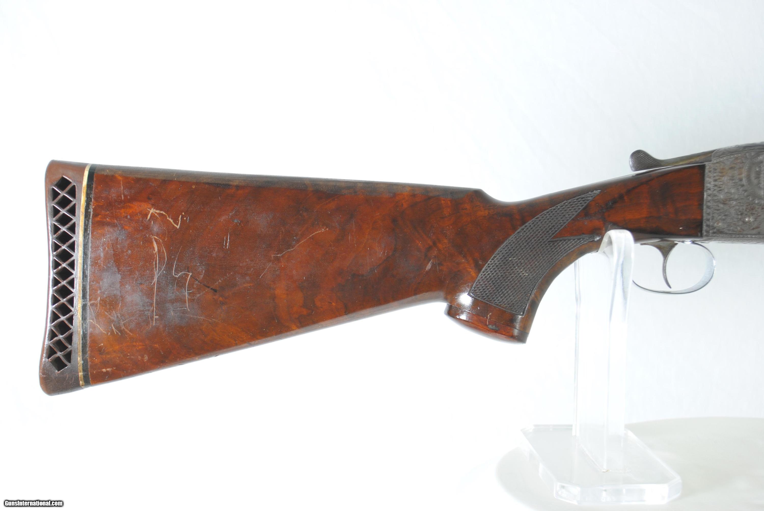 Description: Ithaca Flues Grade 4 Single Barrel Trap with 32" barrel. All serial numbers match. Nice engraving. Tight on face. Good bore at .727 with 35/1000 choke. Chamber 2 3/4". Ejector spring removed - works as extractor. Trigger guard plated. Top rib has a small section that is slightly loose. Front and center bead. Weight of gun is 8 LBS 5 OZ. Shipping is $40. Stock dimensions follow. LOP - 14 1/4" Drop at Comb 1 5/8" Drop at Heel - 1 3/4" For inquiries please call Guy - 407-721-3748 SOLD |