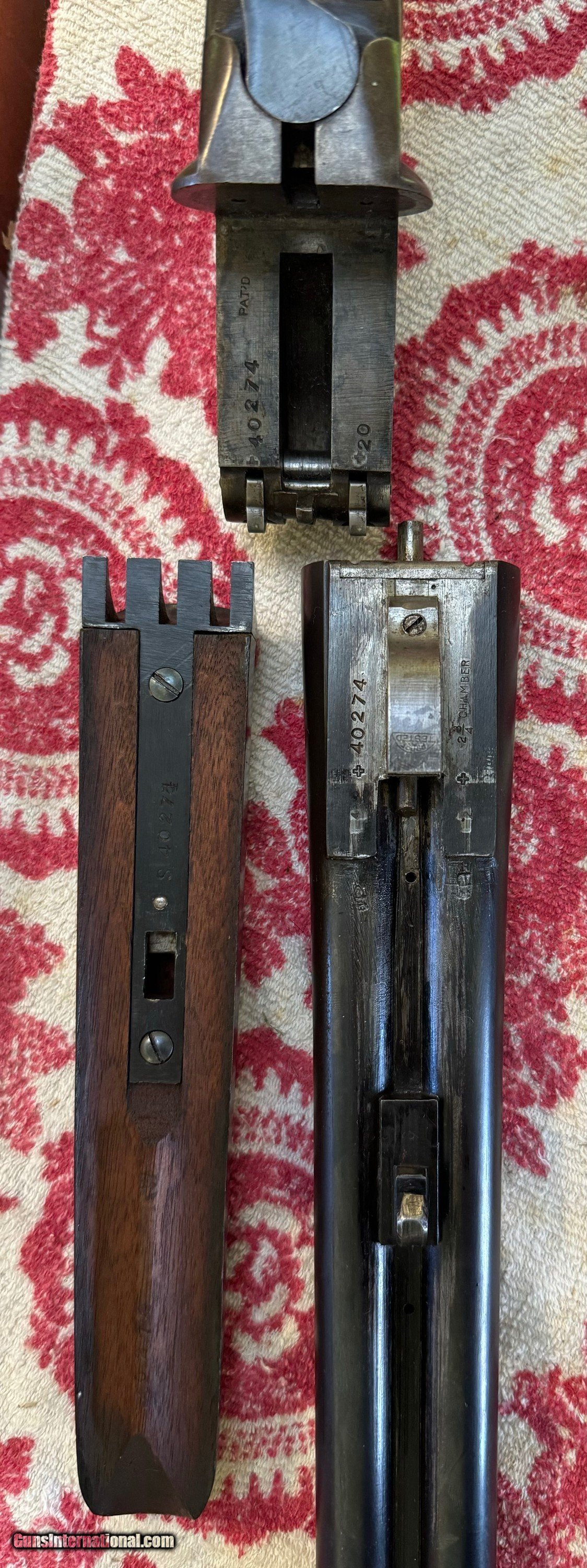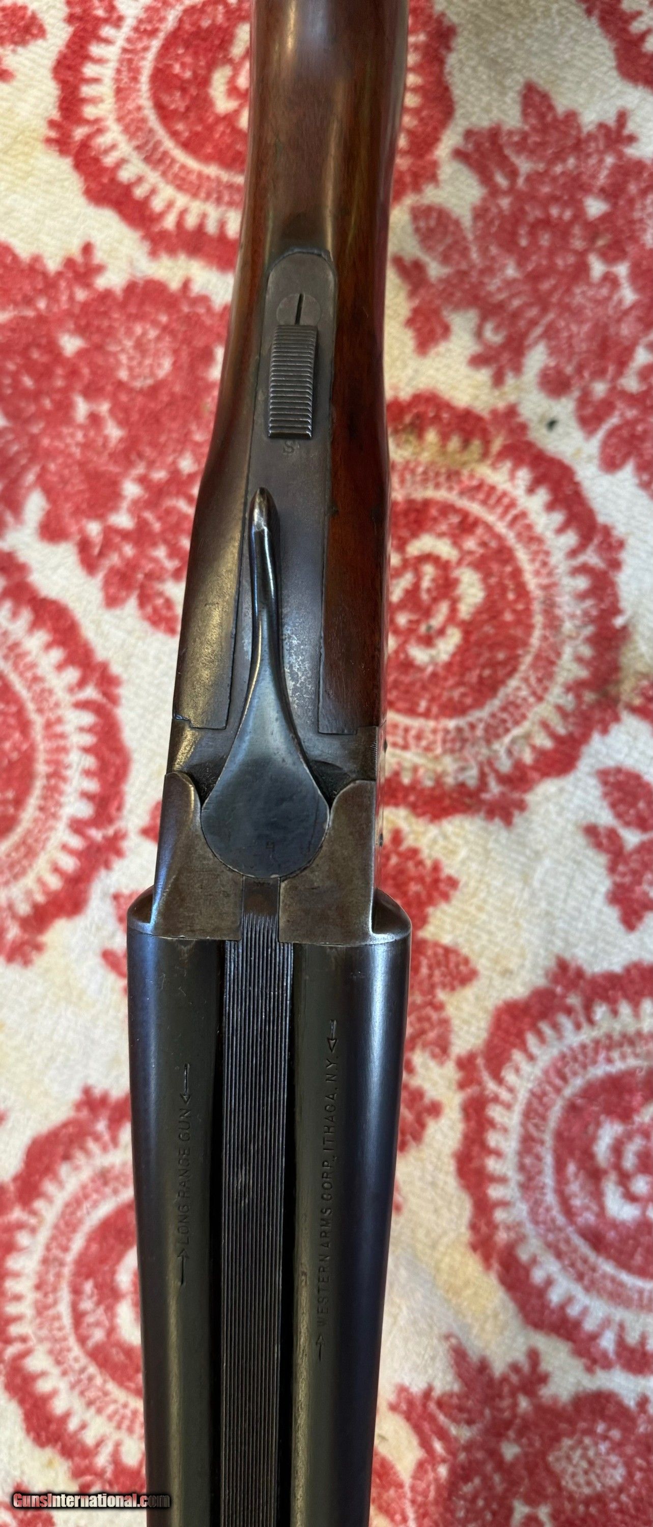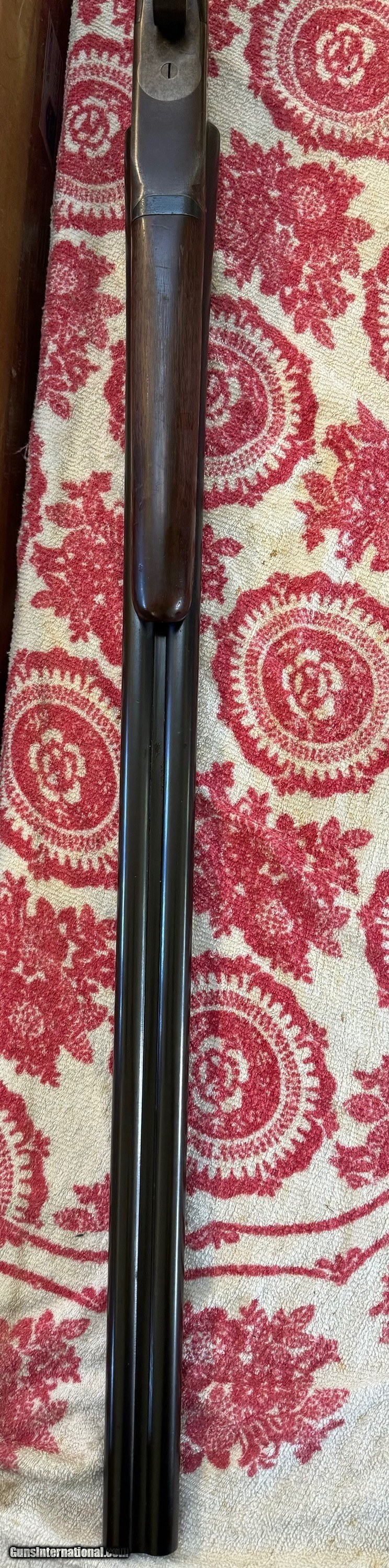 Description: UPDATE: 7/26/2024: Sale pending to Reid. A gentleman contacted me about the gun today. He asked about the receiver. I told him (to the best of my ability, because I am not really good with colors), that it had kind of a "plum colored" look to it. I have seen this before in guns from the 1930's, because they are, of course, older, and sometimes the metal coloring is affected over time. Hope this helps . . . . For sale is a Western Arms Ithaca 20 ga. shotgun that was manufactured in 1936. As far as shipping is concerned, the gun can easily be broken down to send. That will save quite a bit on the shipping charges. Depending on how far you are away from Ohio, it might be shipable for around $30-$35 or so. NOTE: If you click on the first two pictures, then a picture of the full gun will pop up . . . . The "Western Arms" Ithacas were the "Economy Model" of the Ithaca Shotgun line. They were advertised by Ithaca as a "Durable Double" in advertsing promotions. This particular gun is a 20 ga.with 28" barrels choked Mod. and Full. Ithaca, by 1936, had standardized the newer chamber lengths in their line, and this gun has 2 3/4" chambers as manufactured. Additionally, Ithaca used a numbering system on the "Barrel Flats" on the bottom of the barrels, and the numbers are "2" and "4," indicationg the chokes. Ithaca's numbering system was used as follows: "0" for Cylinder choke, "1" for Improved Cylinder choke, "2" for Modified choke, "3" for Improved Modified choke, "4" for Full choke, and "S" for Skeet choke. The gun is compltetely original from "stem to stern" and is in very good plus overall condition. From the butt to the muzzle it is exactly like it left the factory. I consulted Walt Snyder's serial number listings for the Ithaca doubles, and came up a total manufacture of 7099 Western Arms doubles in 1936. If you divide that number by 12 (months in the year) you come up with a monthly total of 591 guns produced a month. Counting either forward or backward will get you a determination of the gun being manufactured in October of 1936. As far as the number of guns produced is concerned, you will find less 20 gauge guns than the 12 gauge or 16 gauge guns. Drops are 1 5/8" by 2 1/2." You cannot beat a 20 gauge gun for upland hunting. LOP is 14 1/8." Take a look at the pictures . . . they are (by far) the best indicator of the condition of the gun. I do not not think that the gun has been fired that much . . . the top lever is very right of center . . . if you remove the forend from the gun, the barrels and action are "rock solid" in that position--indicating the gun is tight "on face". The gun weighs 6 pounds, 4 1/8 oz. Call or email if you have any questions. Thank you. SOLD Curio/Relic: Yes Shotgun Gauge: 20 Gauge Manufacturer: Ithaca Model: Western Arms Branch Barrel Length: 28 Chambers: 2 3/4 Condition: Very Good + Bore Condition: Shiny Stock Comb: 1 5/8 Stock Heel: 2/12 LOP: 14 1/8 |