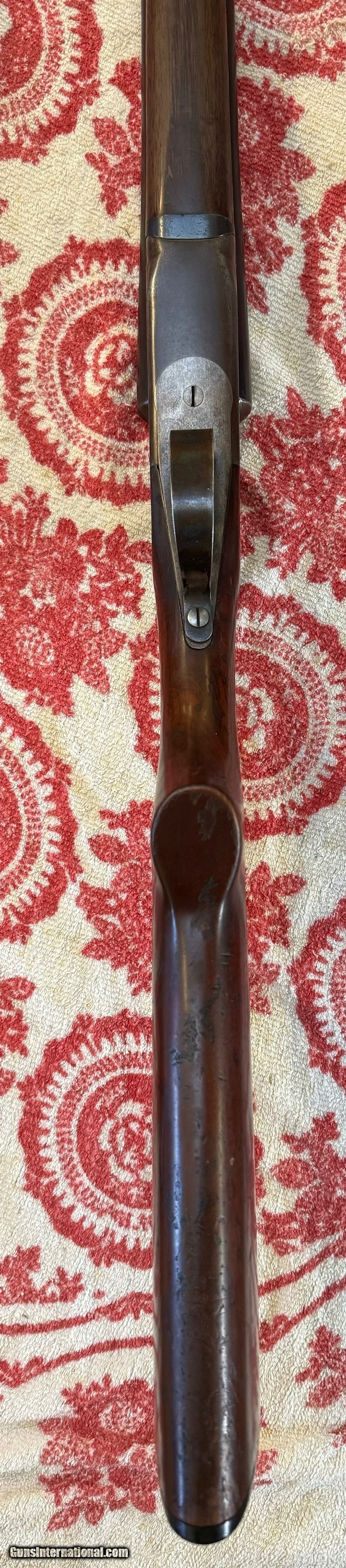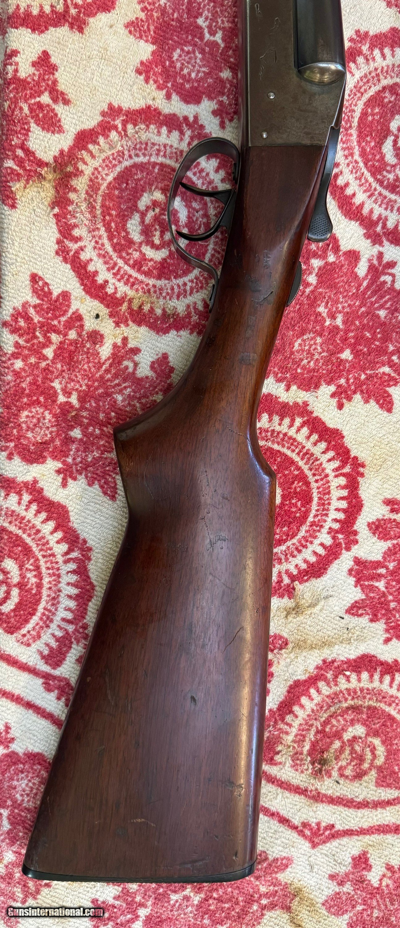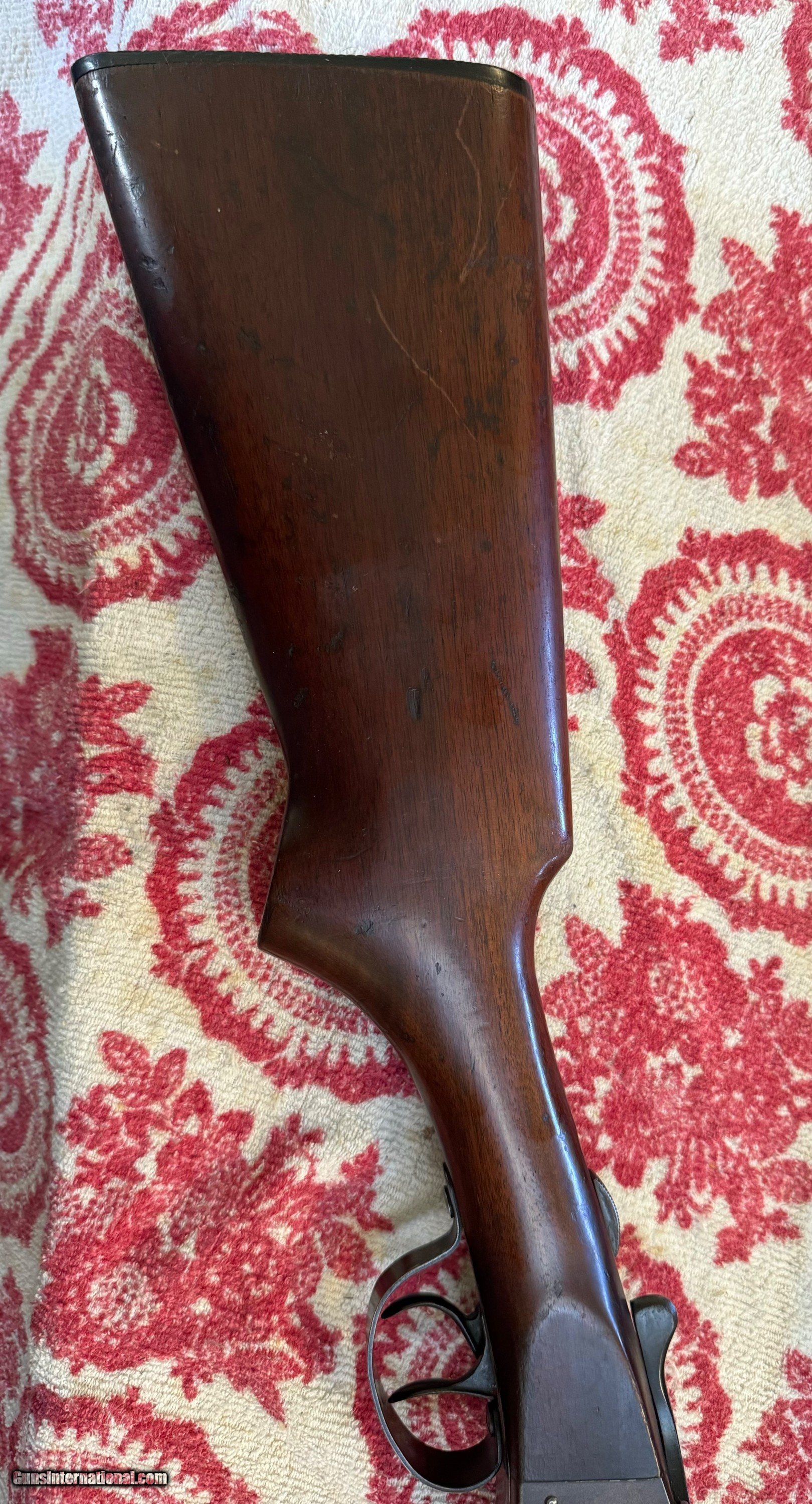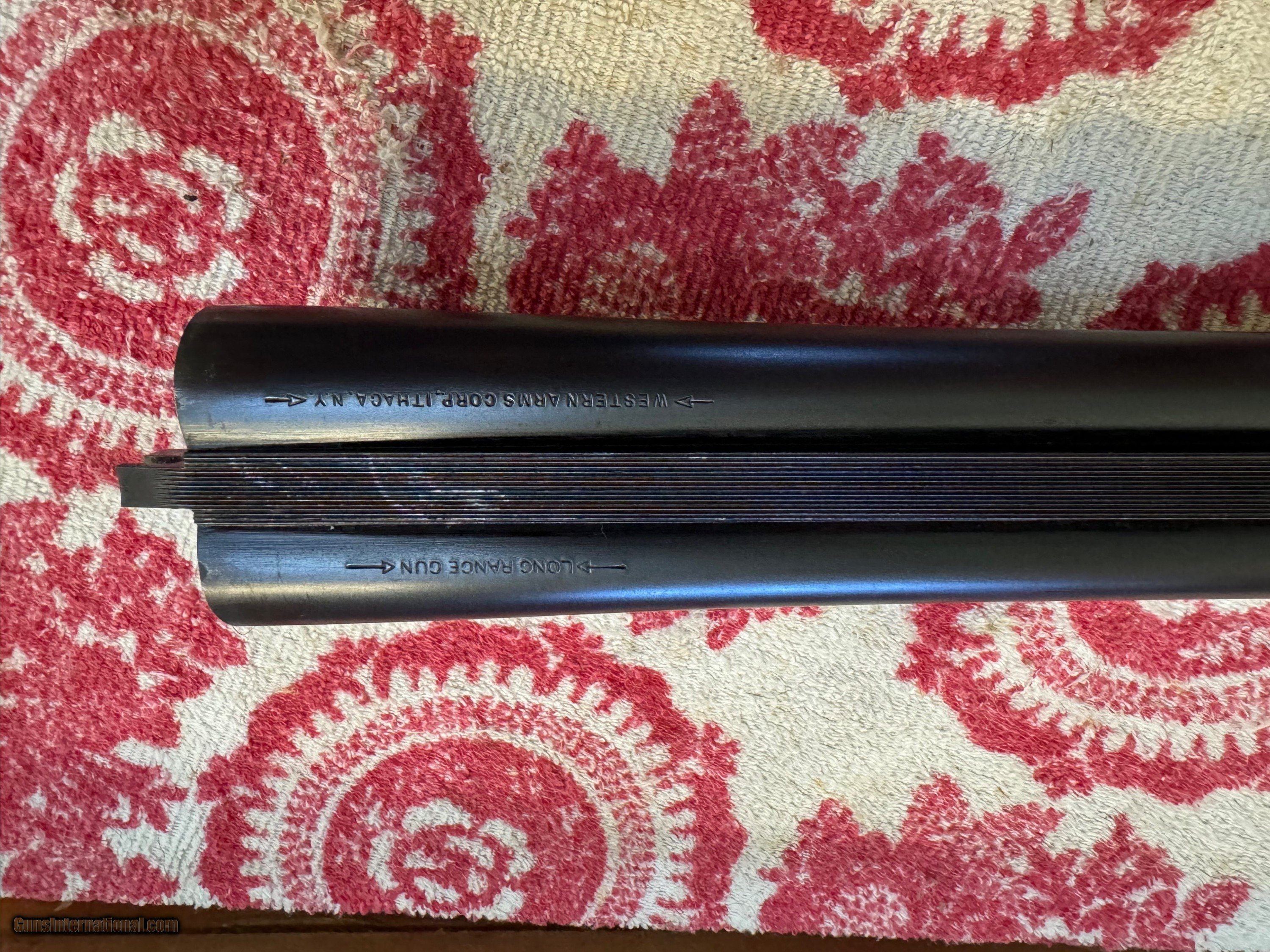 Description: UPDATE: 7/26/2024: Sale pending to Reid. A gentleman contacted me about the gun today. He asked about the receiver. I told him (to the best of my ability, because I am not really good with colors), that it had kind of a "plum colored" look to it. I have seen this before in guns from the 1930's, because they are, of course, older, and sometimes the metal coloring is affected over time. Hope this helps . . . . For sale is a Western Arms Ithaca 20 ga. shotgun that was manufactured in 1936. As far as shipping is concerned, the gun can easily be broken down to send. That will save quite a bit on the shipping charges. Depending on how far you are away from Ohio, it might be shipable for around $30-$35 or so. NOTE: If you click on the first two pictures, then a picture of the full gun will pop up . . . . The "Western Arms" Ithacas were the "Economy Model" of the Ithaca Shotgun line. They were advertised by Ithaca as a "Durable Double" in advertsing promotions. This particular gun is a 20 ga.with 28" barrels choked Mod. and Full. Ithaca, by 1936, had standardized the newer chamber lengths in their line, and this gun has 2 3/4" chambers as manufactured. Additionally, Ithaca used a numbering system on the "Barrel Flats" on the bottom of the barrels, and the numbers are "2" and "4," indicationg the chokes. Ithaca's numbering system was used as follows: "0" for Cylinder choke, "1" for Improved Cylinder choke, "2" for Modified choke, "3" for Improved Modified choke, "4" for Full choke, and "S" for Skeet choke. The gun is compltetely original from "stem to stern" and is in very good plus overall condition. From the butt to the muzzle it is exactly like it left the factory. I consulted Walt Snyder's serial number listings for the Ithaca doubles, and came up a total manufacture of 7099 Western Arms doubles in 1936. If you divide that number by 12 (months in the year) you come up with a monthly total of 591 guns produced a month. Counting either forward or backward will get you a determination of the gun being manufactured in October of 1936. As far as the number of guns produced is concerned, you will find less 20 gauge guns than the 12 gauge or 16 gauge guns. Drops are 1 5/8" by 2 1/2." You cannot beat a 20 gauge gun for upland hunting. LOP is 14 1/8." Take a look at the pictures . . . they are (by far) the best indicator of the condition of the gun. I do not not think that the gun has been fired that much . . . the top lever is very right of center . . . if you remove the forend from the gun, the barrels and action are "rock solid" in that position--indicating the gun is tight "on face". The gun weighs 6 pounds, 4 1/8 oz. Call or email if you have any questions. Thank you. SOLD Curio/Relic: Yes Shotgun Gauge: 20 Gauge Manufacturer: Ithaca Model: Western Arms Branch Barrel Length: 28 Chambers: 2 3/4 Condition: Very Good + Bore Condition: Shiny Stock Comb: 1 5/8 Stock Heel: 2/12 LOP: 14 1/8 |