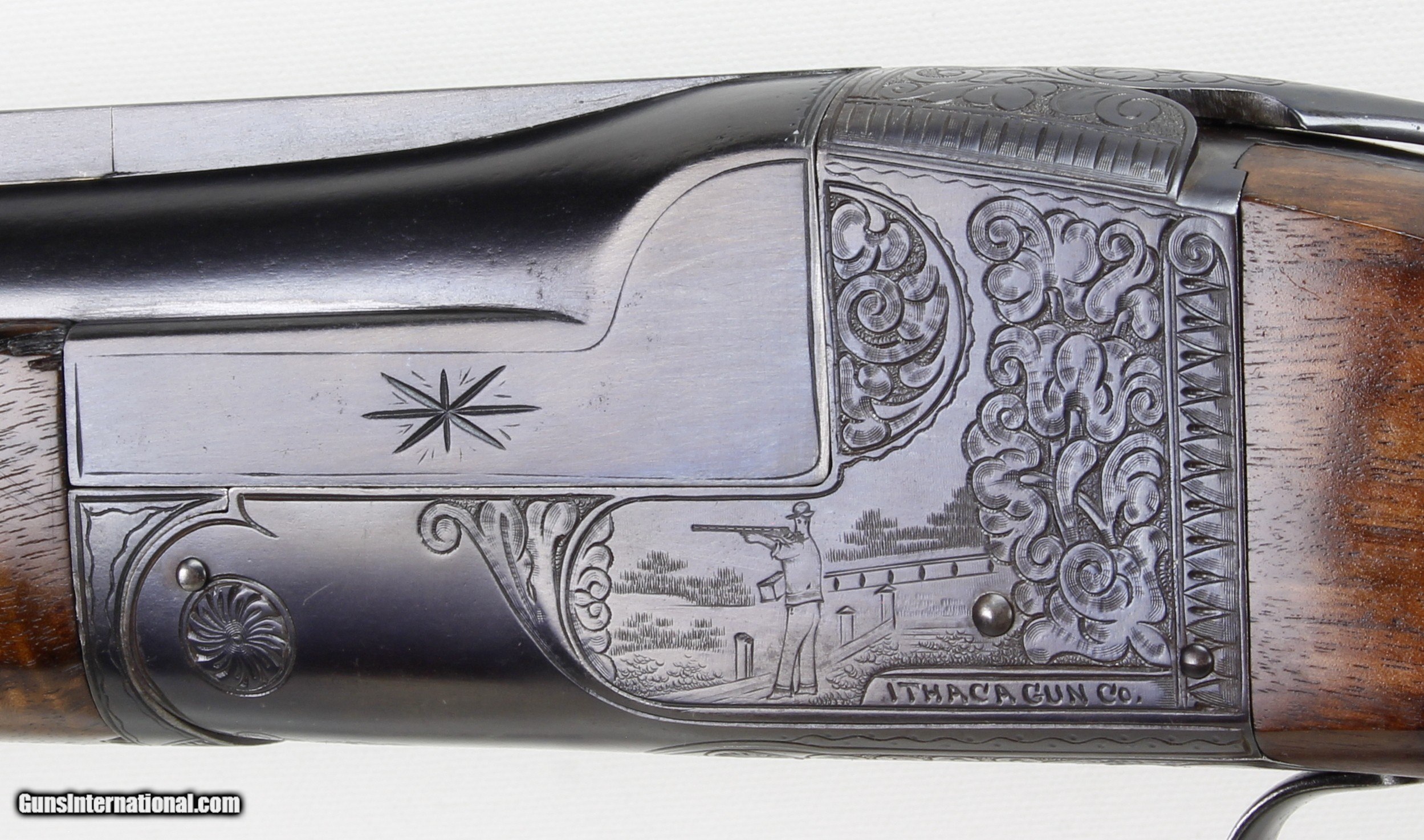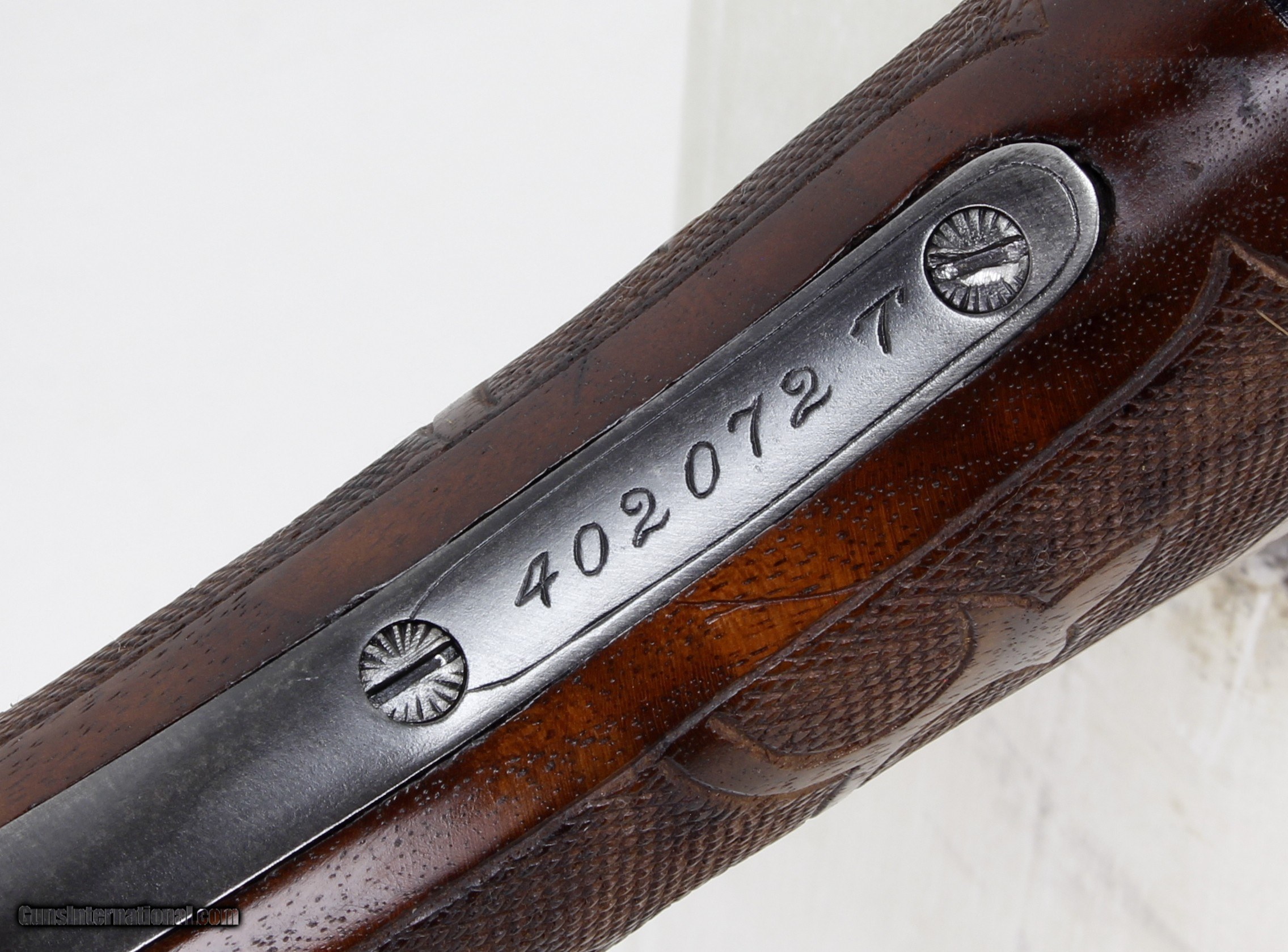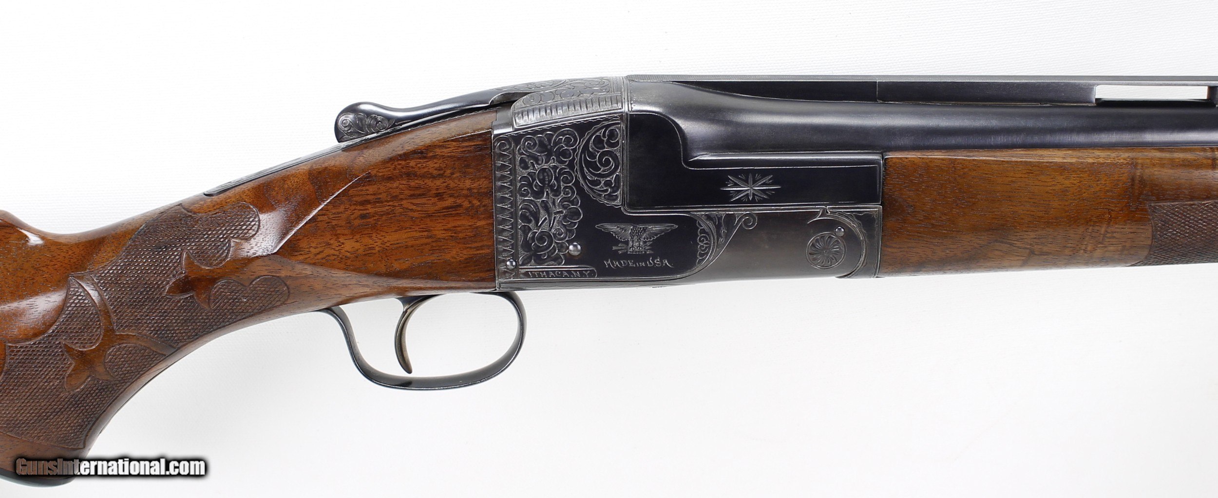 Description: Ithaca 4E Knick Single Barrel Trap Shotgun in 12Ga. SN #402072T. Mfg. in 1930. Choke is Full. LOP 13 3/8". Chamber 2.3/4". DAH 2 1/4"- DAC 1 5/8". 30" Vent Rib Barrel with an EXCELLENT Bright Bore. The Blued / Case Colored Metal and Fleur-de-Lis Checkered Pistol Grip Stock and Beavertail Forend have been FULLY RESTORED by SHOOTER'S EXCHANGE and REALLY LOOK GREAT. Engraved Receiver. Auto ejector. Front and Mid Barrel Bead Sights. New Recoil Pad. Lock up is NICE AND TIGHT. HARD TO FIND ONE OF THESE IN THIS GREAT SHAPE. Weight: 7.7 lbs. Trigger Pull: 3 lbs. More photos available upon request. Ships to Lower 48 W/ Insurance $65.00. "The Stock & Fore-End wood alone would cost more than $2000. SOLD PENDING RECEIPT OF FUNDS SOLD Curio/Relic: Yes Shotgun Gauge: 12 Gauge Manufacturer: Ithaca Model: 4E Knick Single Barrel Trap Serial Number: 402072T Barrel Length: 30 Chambers: 2 3/4 Condition: Excellent Metal Condition: Refinished Wood Condition: Refinished Bore Condition: Excellent LOP: 13 3/8 Rib: Solid Finish: Blue Weight: 7.7 lbs. Manufacture Date: 1930 Chokes: Full |