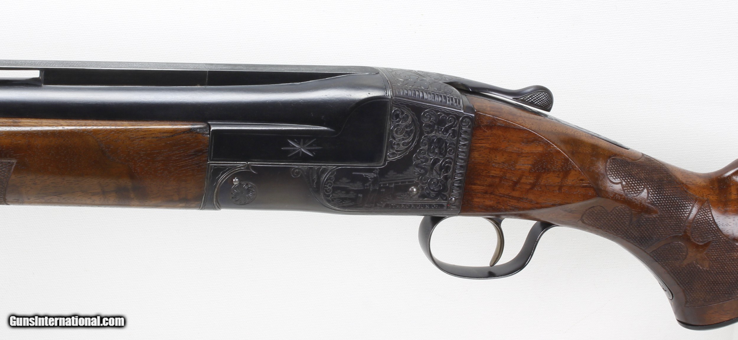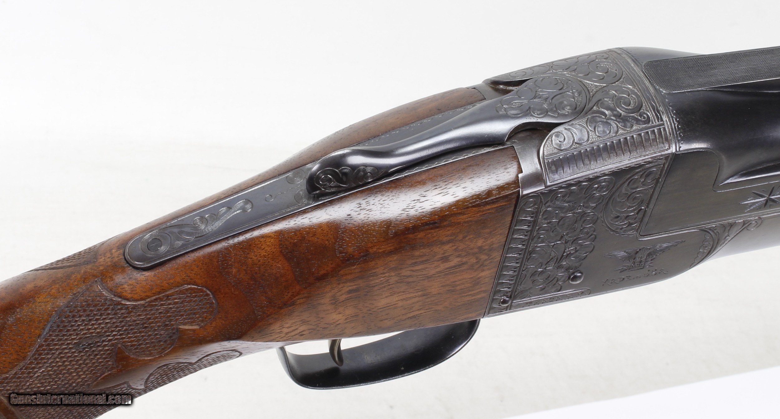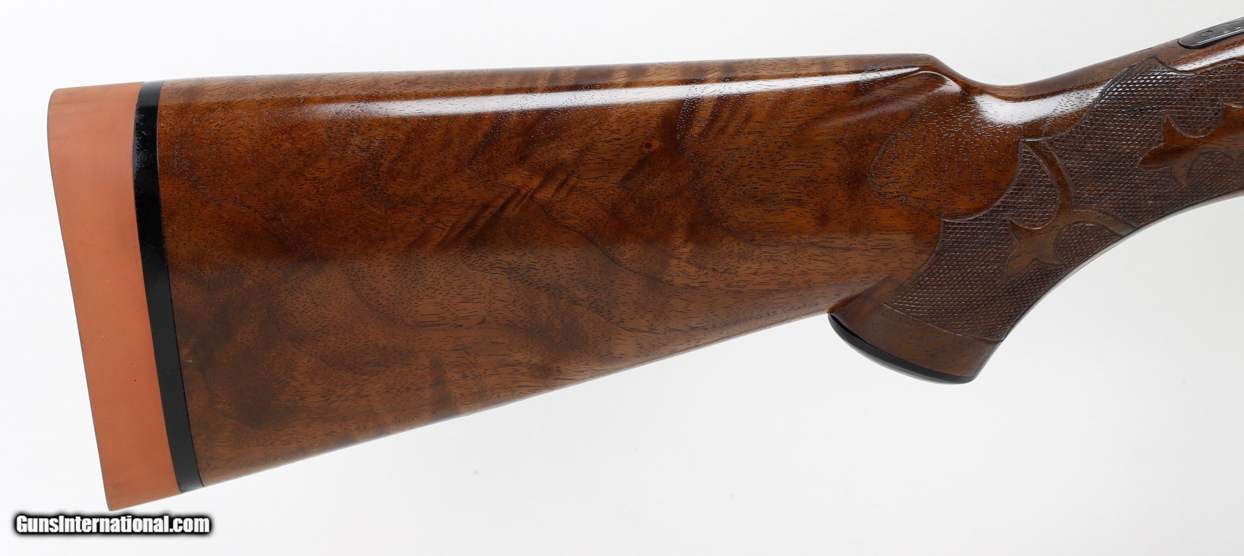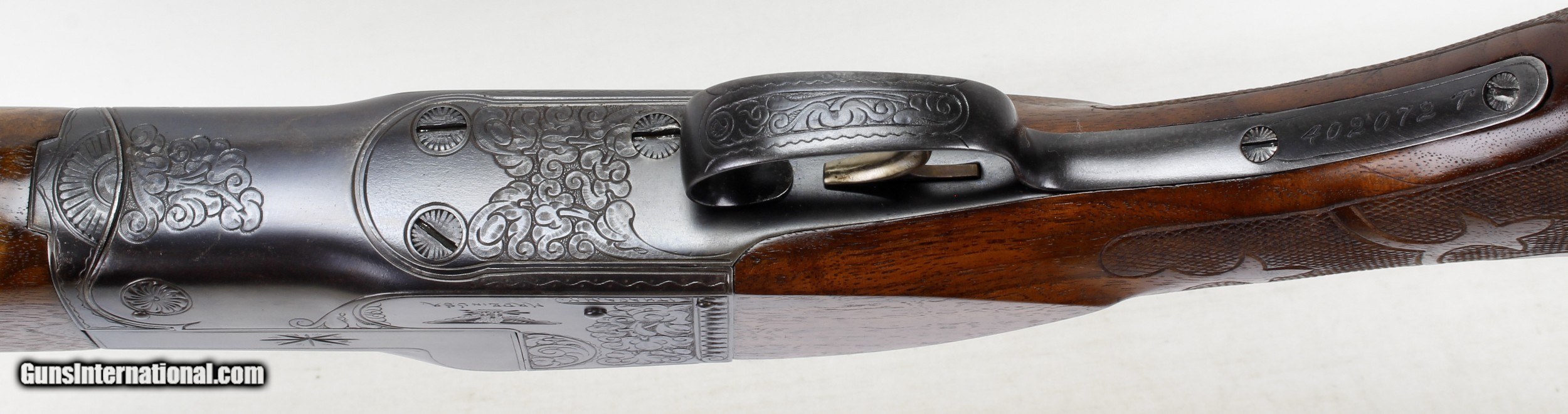 Description: Ithaca 4E Knick Single Barrel Trap Shotgun in 12Ga. SN #402072T. Mfg. in 1930. Choke is Full. LOP 13 3/8". Chamber 2.3/4". DAH 2 1/4"- DAC 1 5/8". 30" Vent Rib Barrel with an EXCELLENT Bright Bore. The Blued / Case Colored Metal and Fleur-de-Lis Checkered Pistol Grip Stock and Beavertail Forend have been FULLY RESTORED by SHOOTER'S EXCHANGE and REALLY LOOK GREAT. Engraved Receiver. Auto ejector. Front and Mid Barrel Bead Sights. New Recoil Pad. Lock up is NICE AND TIGHT. HARD TO FIND ONE OF THESE IN THIS GREAT SHAPE. Weight: 7.7 lbs. Trigger Pull: 3 lbs. More photos available upon request. Ships to Lower 48 W/ Insurance $65.00. "The Stock & Fore-End wood alone would cost more than $2000. SOLD PENDING RECEIPT OF FUNDS SOLD Curio/Relic: Yes Shotgun Gauge: 12 Gauge Manufacturer: Ithaca Model: 4E Knick Single Barrel Trap Serial Number: 402072T Barrel Length: 30 Chambers: 2 3/4 Condition: Excellent Metal Condition: Refinished Wood Condition: Refinished Bore Condition: Excellent LOP: 13 3/8 Rib: Solid Finish: Blue Weight: 7.7 lbs. Manufacture Date: 1930 Chokes: Full |