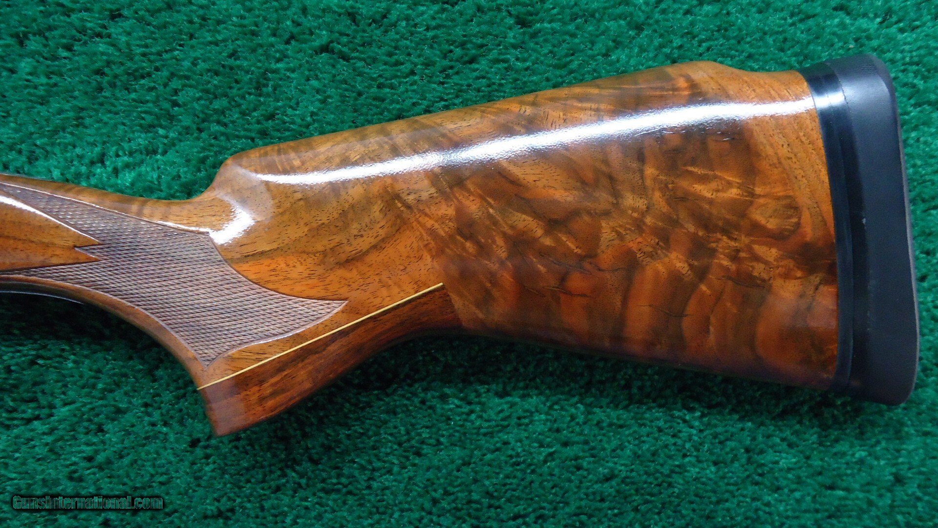 Description: This is the "Knick" single barrel Trap. 12 gauge 30 inch vent rib barrel with Modified choke and ejector. Barrel condition is good both inside and out. Most blue remaining and a shiny bore. The center bead has been taken off and the front bead has been changed. Just over the 400k serial range. Receiver is mostly a silver/grey color with some case colors still remaining. Lock up is nice and solid. This one has the Eagle on the right side and the standard engraving of the trap shooter on the left side. Buttstock is a nicely done custom piece with a roll-over Monte Carlo of deluxe wood. A Decelerator pad and a couple of spacers have been added to make the LOP 14-1/14 inches. Forearm appears to be a standard piece of wood that was freshened at the time of the custom stock work. Shotgun is just waiting to bust many more clay pigeons! Leroy Merz Antique Firearms specializes in antique and vintage Winchesters and other fine American firearms. Since 1965 Mr. Merz has taken part in the world of firearms and has been a contributor to many well known reference books. We have hundreds of additional guns in every price range at our home online. Search for Merz Antiques in google. Curio/Relic: Yes Shotgun Gauge: 12 Gauge Price: $2,100.00 Contact Seller |