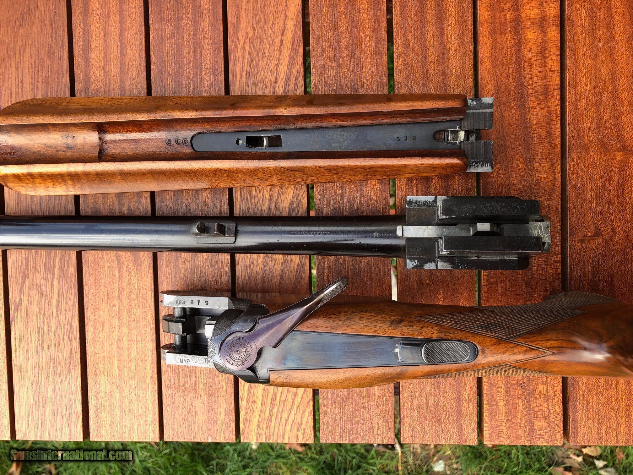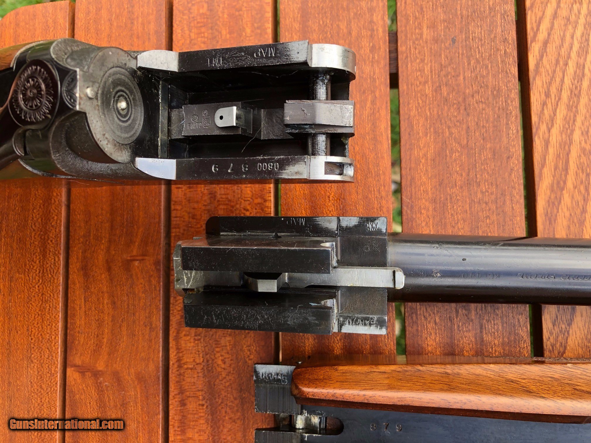 Description: Ithaca Gun Co. Single barrel trap made by Perazzi. same as Perazzi TM1 12g. 34" barrel, 14.25" LOP. Comes with two trigger groups; pull trigger and release trigger. Although this gun has some use on it, the breech lock up tight against the action face. Top lever is the the right of center. oil finish on stock is in great condition. There is some bluing wear on the bottom of action. Barrel bluing is in good shape. Fixed Full choke. Drop lock with a slide of a button. Comes with hard case shown. I accept Personal, bank, or postal oney order checks. Checks must clear before shipment. Will ship to your FFL in continental USA $45. Price $1700. SOLD Shotgun Gauge: 12 Gauge |