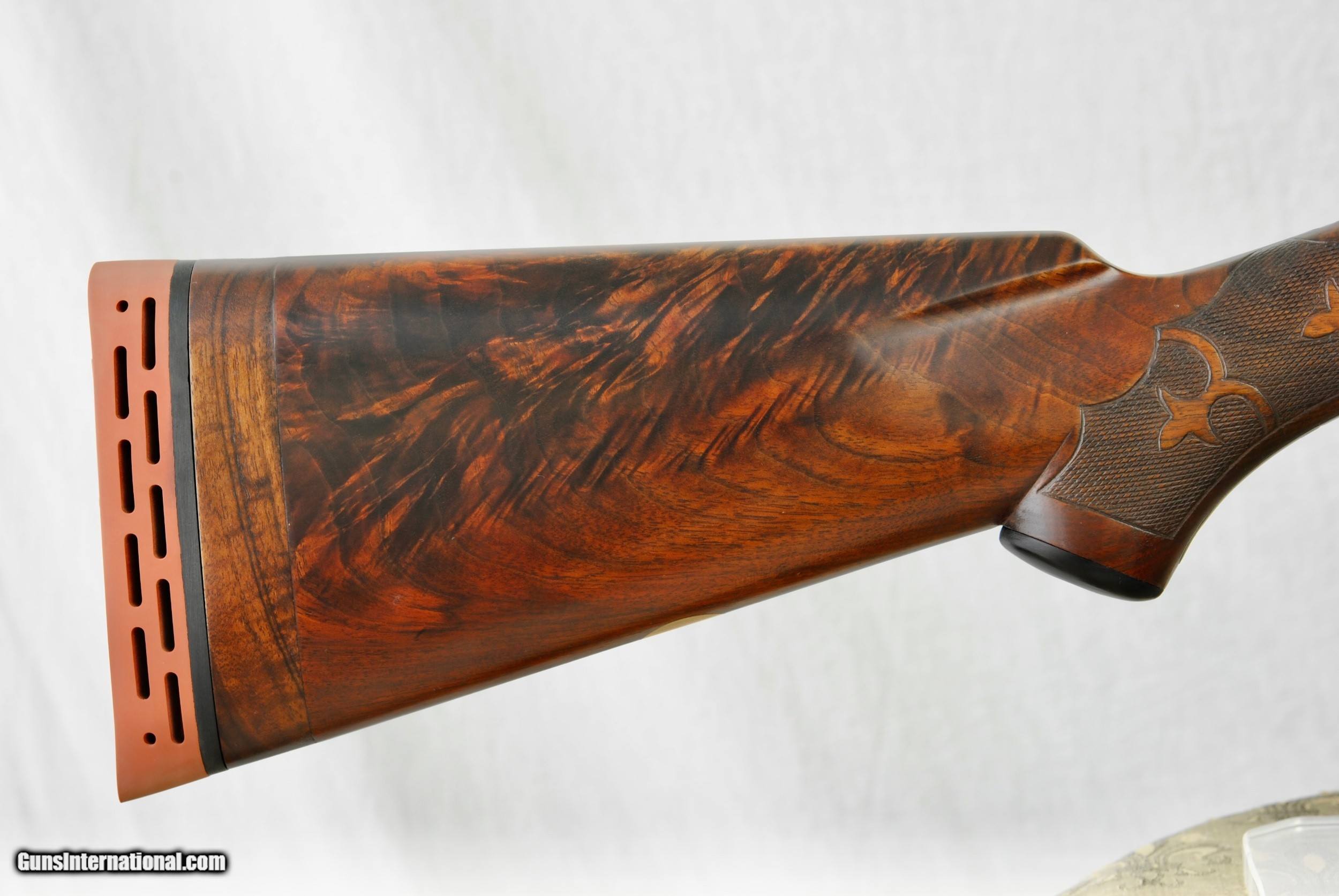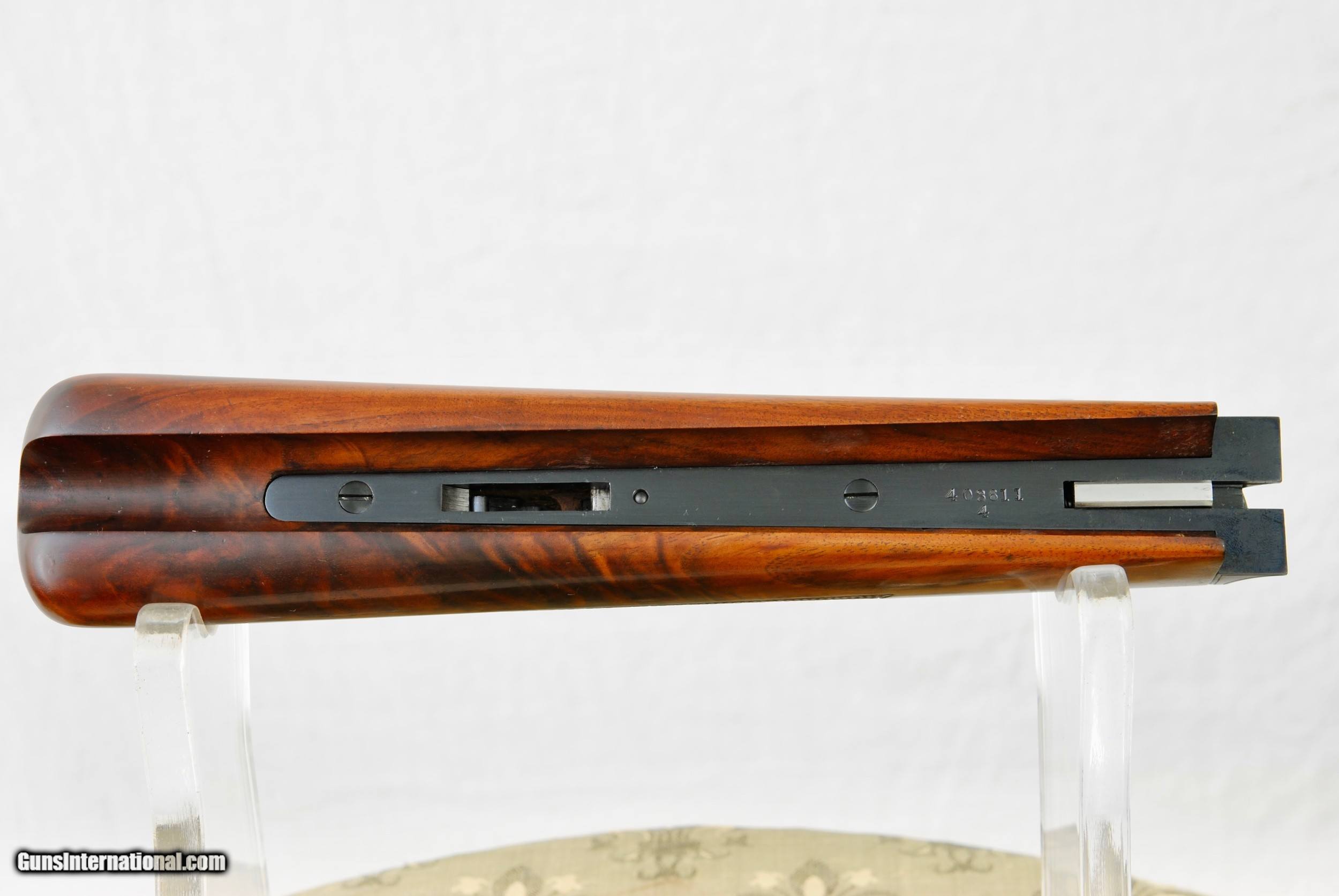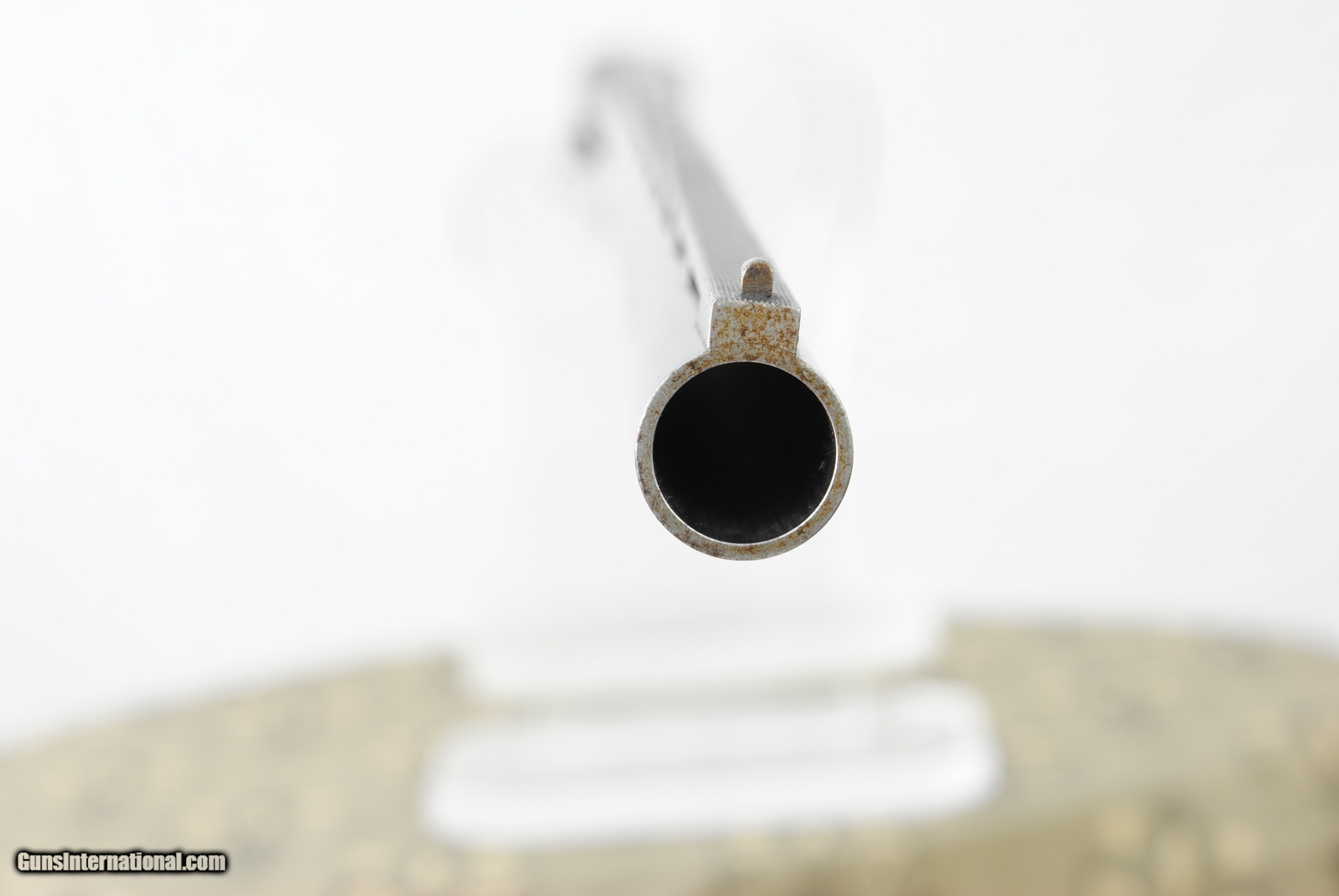 Description: Vintage Ithaca Knick Single Barrel Trap Model 4E. Gun remains in excellent condition with sharp engraving, muted case colors and well figured wood. Barrel is 32" with a mirror bore measuring .727. Choke as original at 37/1000 (Full).Chamber is 2 3/4". Ejector in time. Tight on face / rib tight / no cracks to wood. Later engraving style with the "Indian and bow" on right side of receiver. Jostan Recoil Pad. All matching serial numbers of course. LOP is 14 1/2". Drop at comb - 1 1/2". Drop at heel - 2". Shipping is $50. A nice very solid "Knick"! SOLD Curio/Relic: Yes Shotgun Gauge: 12 Gauge |