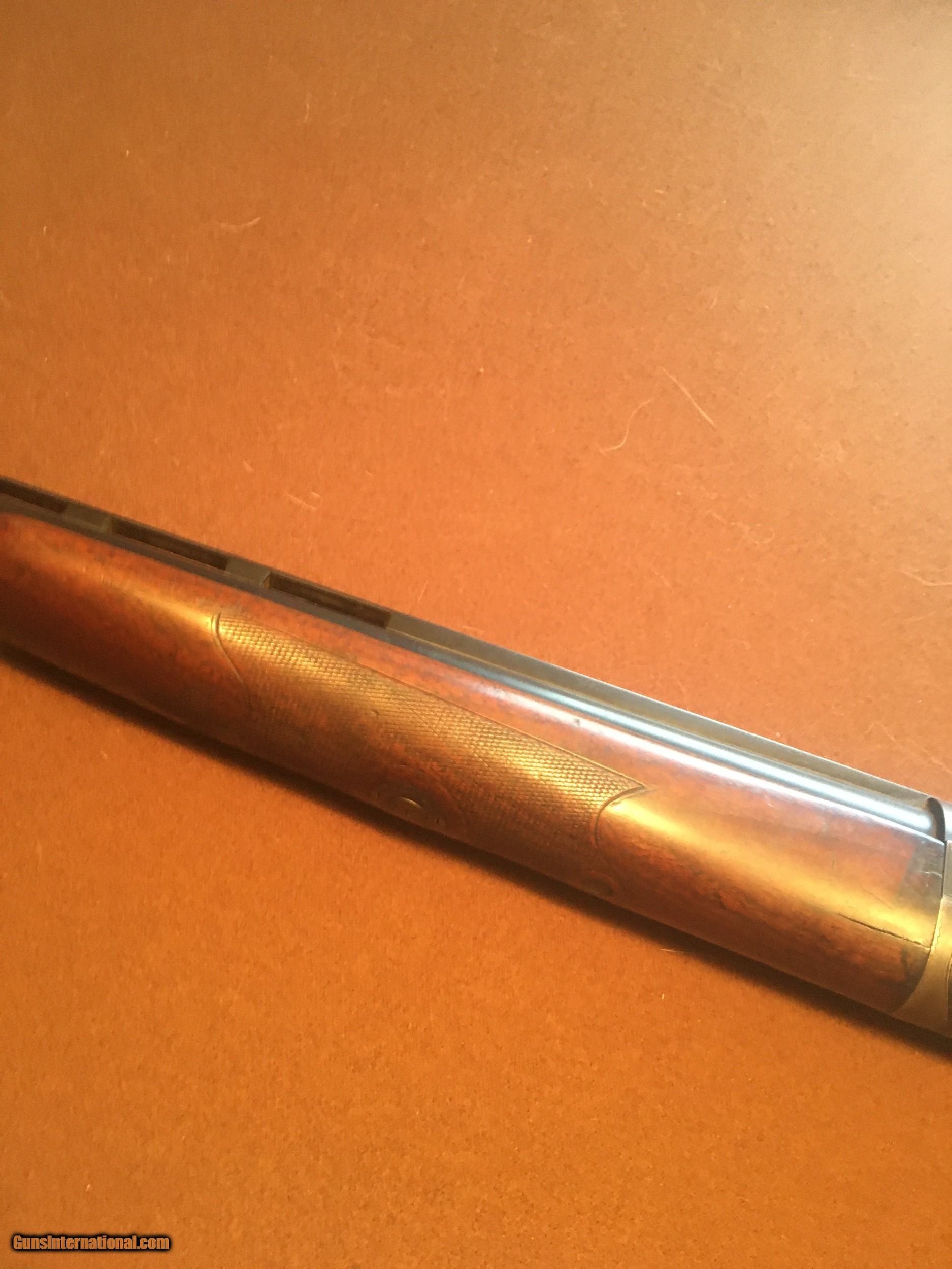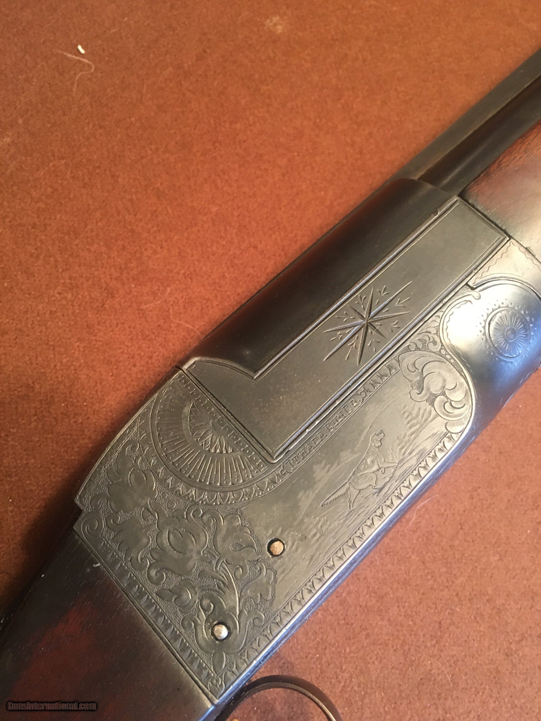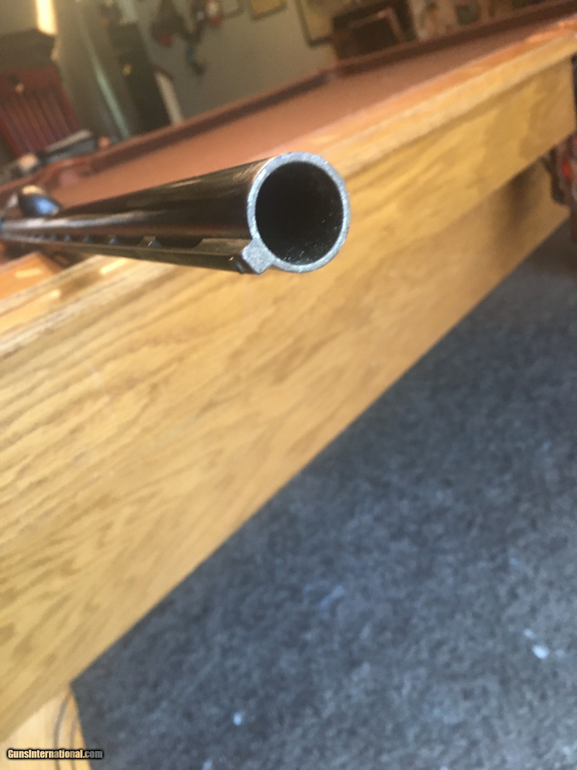 Description: Last chance and reduced for quick sale .Ithaca Fleus Single barrel trap 12 gauge Grade 4 deluxe engraved shotgun with high quality well figured walnut stocks With finely cut Fleur de Lis checkering . Very good overall original condition . Serial number 260xxx . Very early first year example before lthaca switched their grade 4 engraving to the Federal Eagle with shooters on a firing line. This one has the earlier and scarce extensive deep arabesque style with pheasant game scene on left side of receiver and a field dog on point on the right. The receiver shows very little blue loss . All markings are crisp. 32 inch vented rib barrel is very good with only very light scattered surface wear. Bright shiny bore .Gun locks up tight with lever still to the right. Small tight Repair to shoulder stock top left of lever. Beavertail for end gas a couple closed cracks approaching the receiver. The single trigger function is currently not working and will need repair. "Blue Line " recoil pad still serviceable. 14 1/2" LOP . Sold as is no returns. I will pay the shipping and insurance CONUS only . Ships my FFL guy to your FFL guy. United states postal money order only , accepted. Can't beat the price in this condition. Good luck! SOLD Shotgun Gauge: 12 Gauge Manufacturer: Ithaca Model: Single Barrel Trap Grade 4 Serial Number: 260xxx Chambers: 2 3/4” Condition: VG Metal Condition: VG Wood Condition: VG Bore Condition: Bright Butt Pad: Blue Line LOP: 14 1/2” Rib: Vented Finish: Blued Sights: Front and Mid |