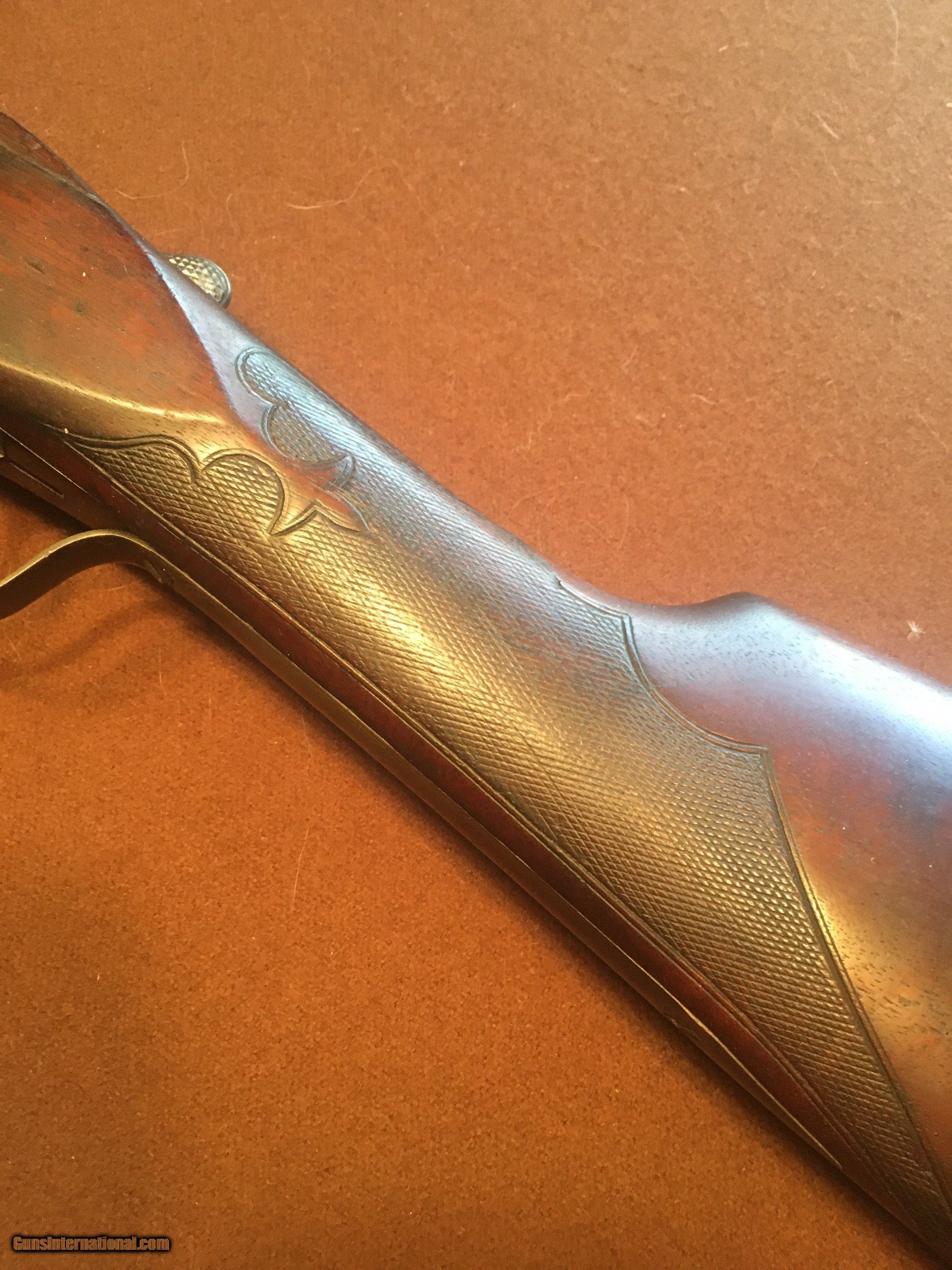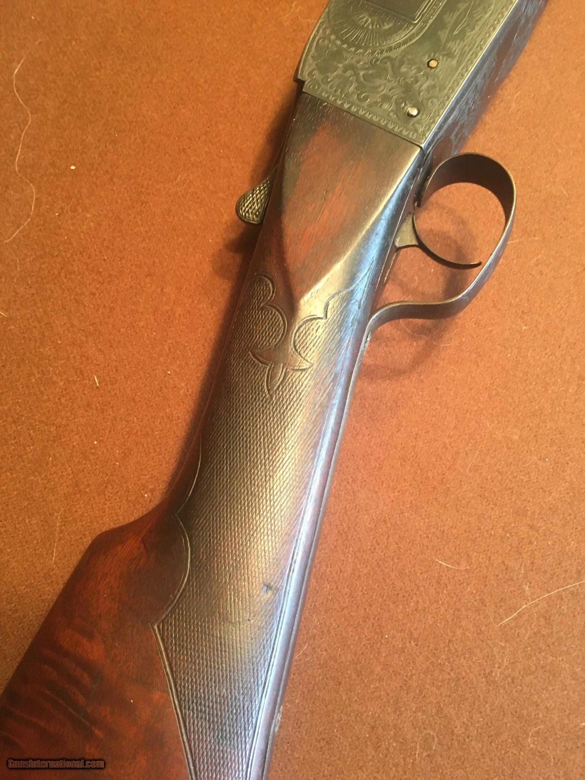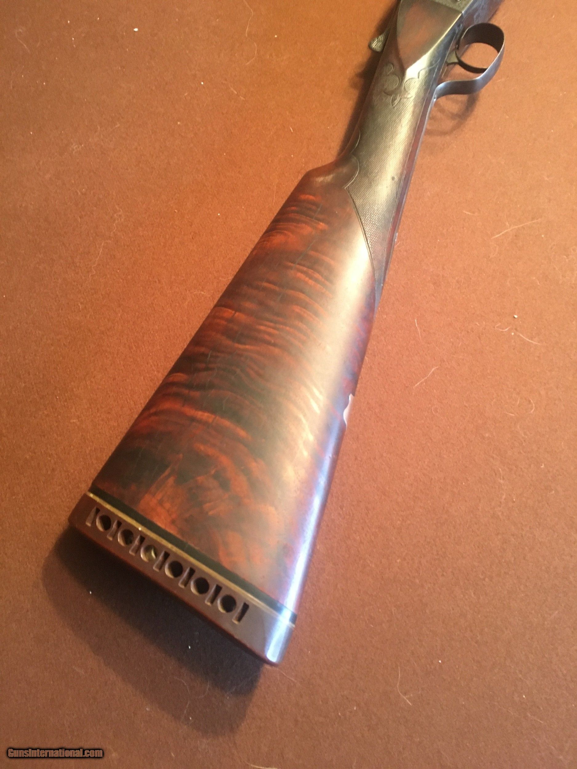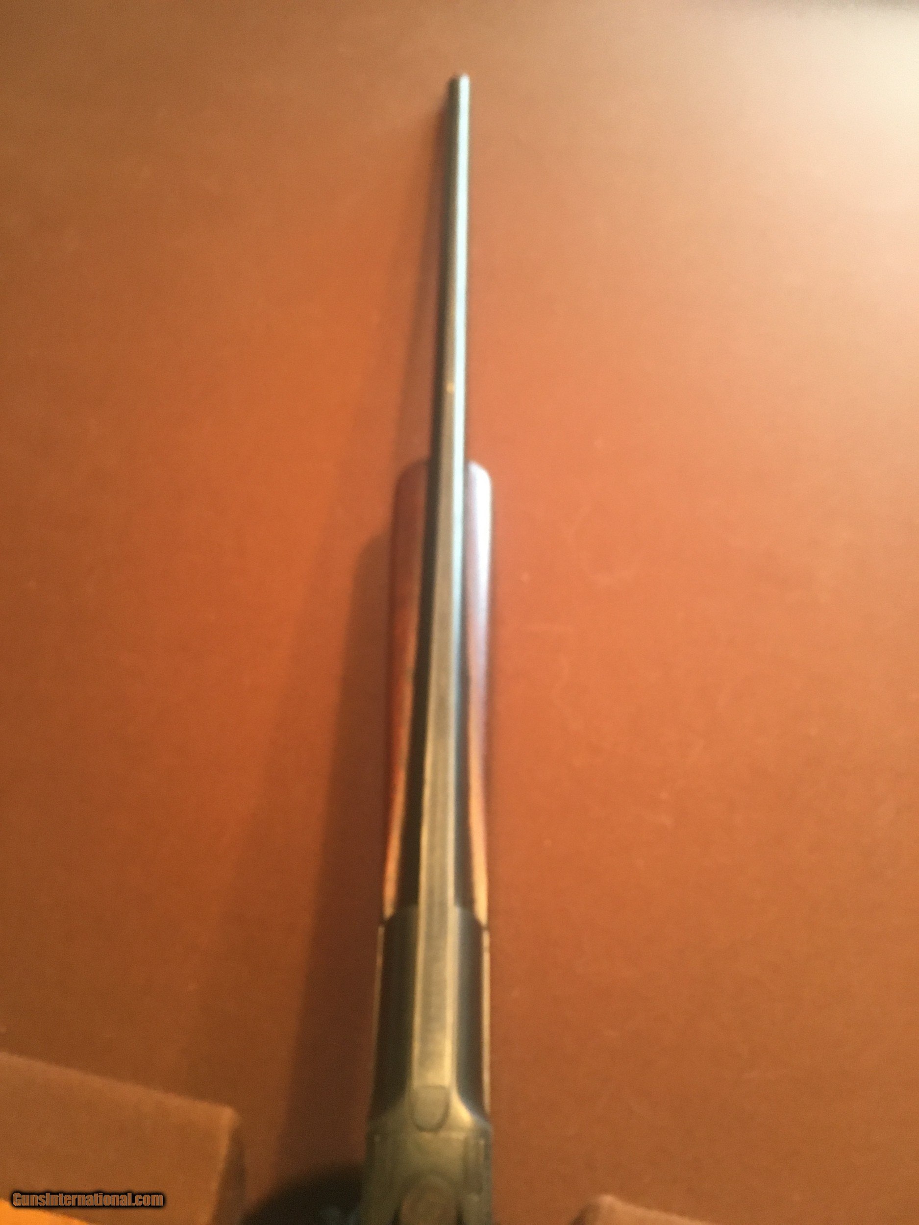 Description: Last chance and reduced for quick sale .Ithaca Fleus Single barrel trap 12 gauge Grade 4 deluxe engraved shotgun with high quality well figured walnut stocks With finely cut Fleur de Lis checkering . Very good overall original condition . Serial number 260xxx . Very early first year example before lthaca switched their grade 4 engraving to the Federal Eagle with shooters on a firing line. This one has the earlier and scarce extensive deep arabesque style with pheasant game scene on left side of receiver and a field dog on point on the right. The receiver shows very little blue loss . All markings are crisp. 32 inch vented rib barrel is very good with only very light scattered surface wear. Bright shiny bore .Gun locks up tight with lever still to the right. Small tight Repair to shoulder stock top left of lever. Beavertail for end gas a couple closed cracks approaching the receiver. The single trigger function is currently not working and will need repair. "Blue Line " recoil pad still serviceable. 14 1/2" LOP . Sold as is no returns. I will pay the shipping and insurance CONUS only . Ships my FFL guy to your FFL guy. United states postal money order only , accepted. Can't beat the price in this condition. Good luck! SOLD Shotgun Gauge: 12 Gauge Manufacturer: Ithaca Model: Single Barrel Trap Grade 4 Serial Number: 260xxx Chambers: 2 3/4” Condition: VG Metal Condition: VG Wood Condition: VG Bore Condition: Bright Butt Pad: Blue Line LOP: 14 1/2” Rib: Vented Finish: Blued Sights: Front and Mid |