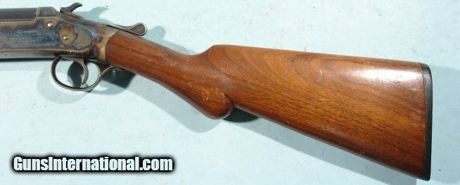 Description: EXCELLENT EARLY IVER JOHNSON CHAMPION .410 GAUGE 2 ¾” SINGLE SHOT SHOTGUN CIRCA 1920’S. 28” Modified barrel. All original and unaltered excellent overall with nearly all the original blue on the barrel. Frame, trigger guard and hammer with most of the bright case hardening colors. Early semi-pistol grip round knob stock and tapered forend with the original finish with light use. Iver Johnson “OWL HEAD” logo hard rubber original butt plate. Tight perfect working order and mint bore. Superior early Champion 410. SOLD Curio/Relic: Yes Shotgun Gauge: .410 Gauge |