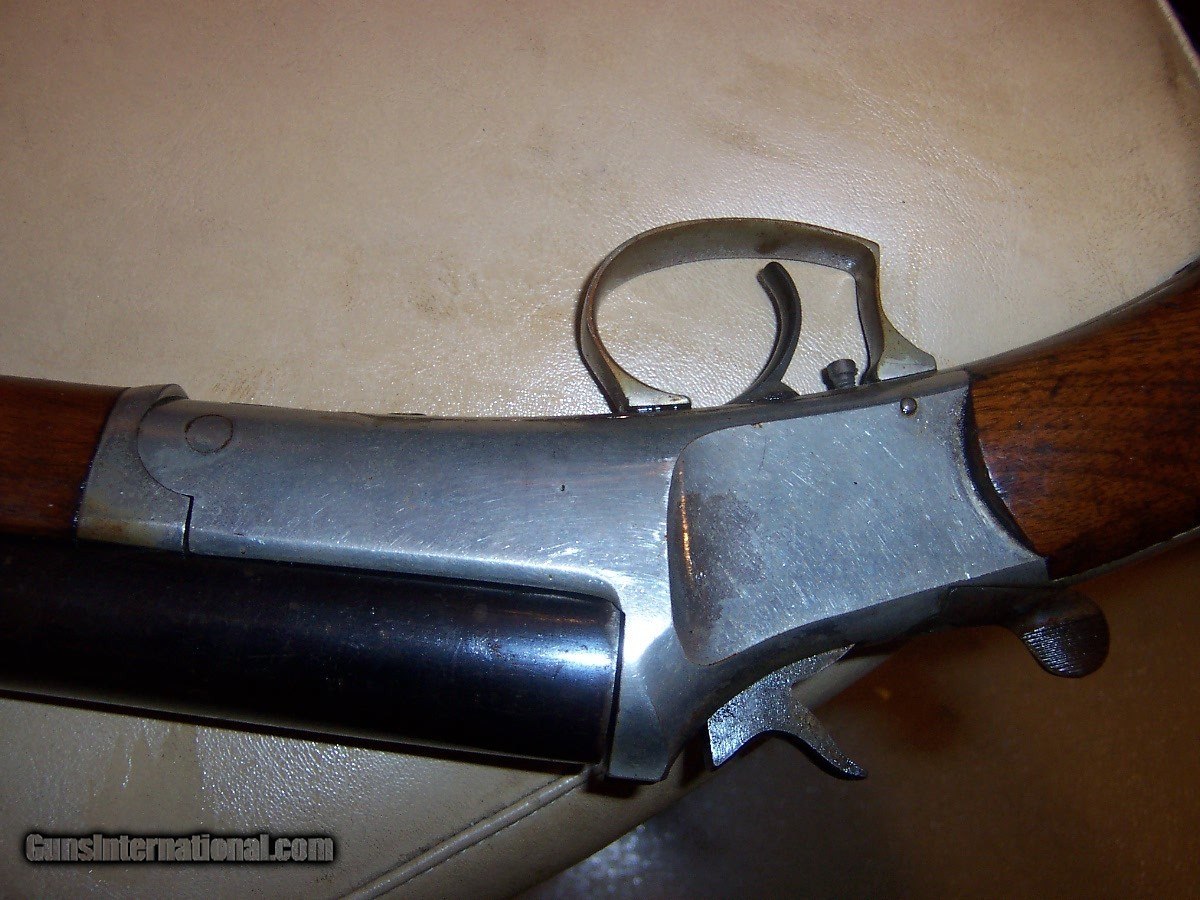 Description: 32"x12gauge steel barrel marked champion on barrel'''''' nickel about 87%n blue about 89% works in dry fire looks like most original stock finish is peresent solid stock'' action has a little play bolster marked pat ju;y 27 83 serial # 10037 an earlier version than the other one like it i have listed even though other has damascus barrel ;; antique probably the first model marked champion SOLD Antique: Yes Manufacturer: iver johnson Model: champion |