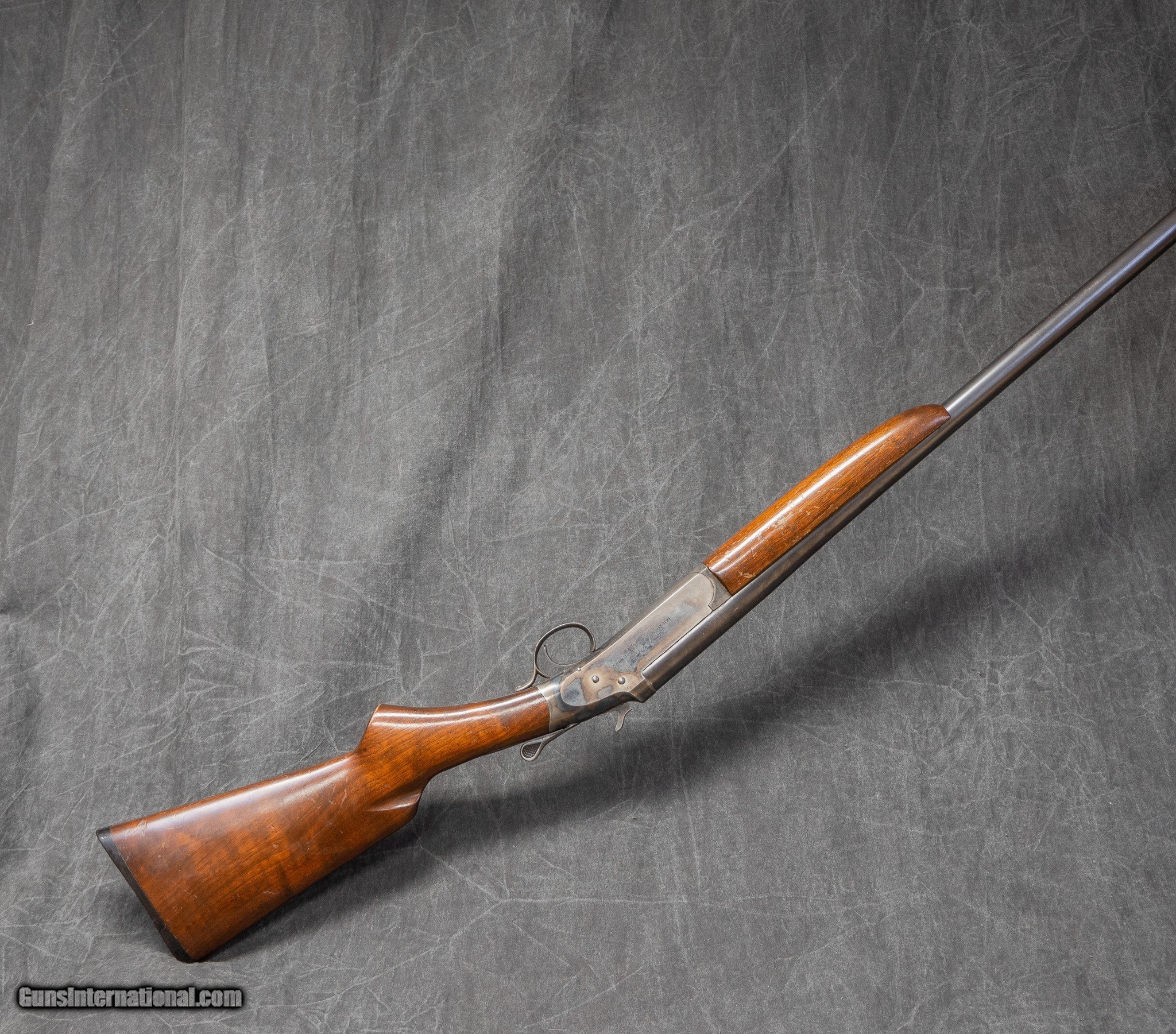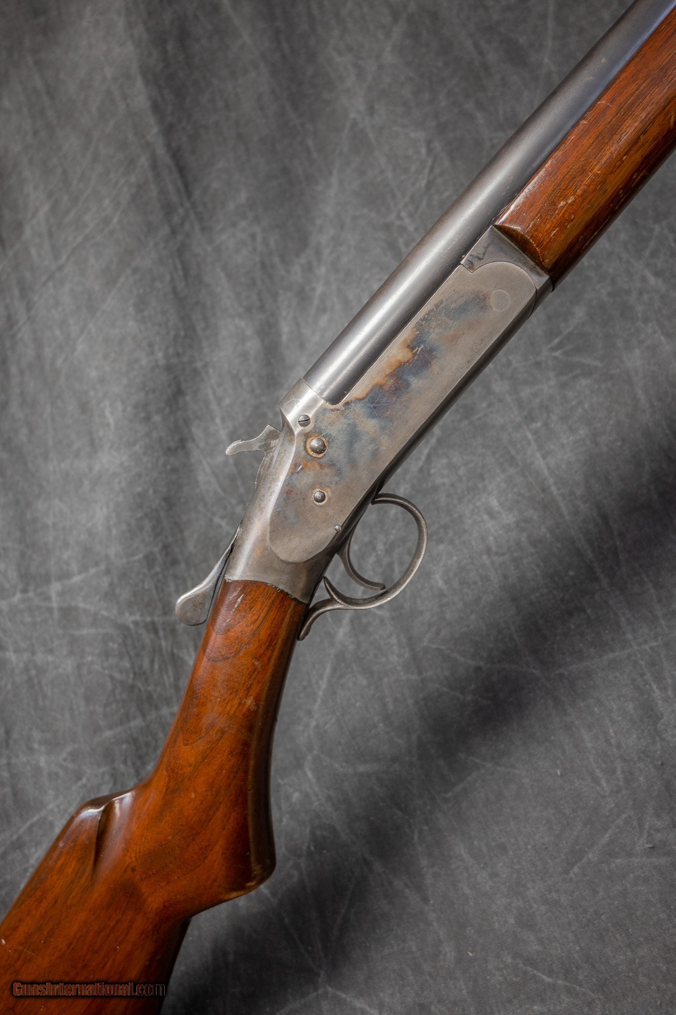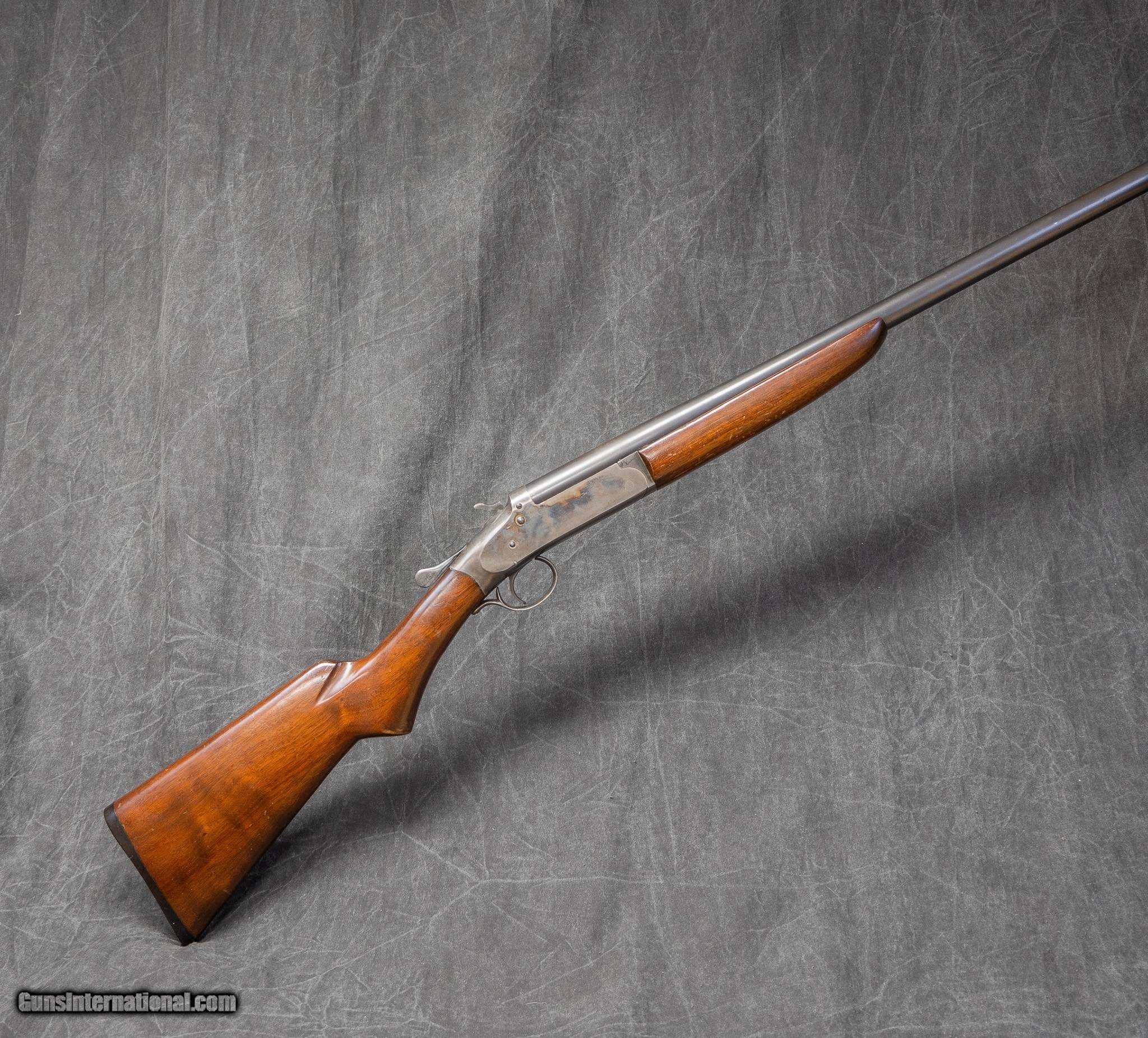 Description: Specifications Maker: IVER JOHNSON Model: CHAMPION Gauge/Caliber: 12 GA Barrel Length: 30" Chambers: 2 3/4" Rib Design: PLAIN BARREL Weight: 6LBS 4OZS Bore/Chokes Right/Bottom:.727 .022 MOD Stock Dimensions Drop At Comb:2" Drop At Face:2 1/2' 4 1/2" Drop At Heel:2 3/4" Cast At Face:0" Cast At Heel:0" Length Of Pull:14" Special Features: SINGLE SHOT TOP LEVER BREAK EXTERNAL HAMMER 75%-80% CASE COLOR REMAINING PISTOL GRIP STOCK W/ ORIGINAL BUTT PLATE MADE IN FITCHBURG, MASS USA. CONDITION: VERY GOOD Circa: 1940-1950 NO RECORDS AVAILABLE / SN GRGR N9123 SOLD |