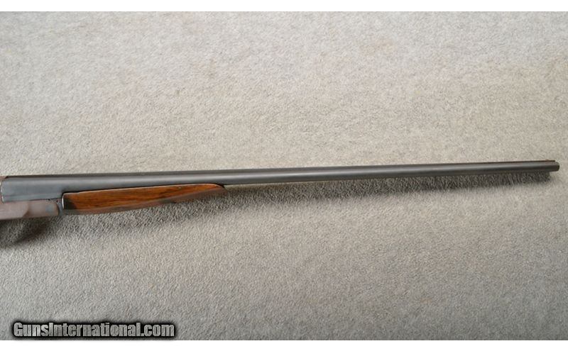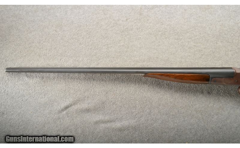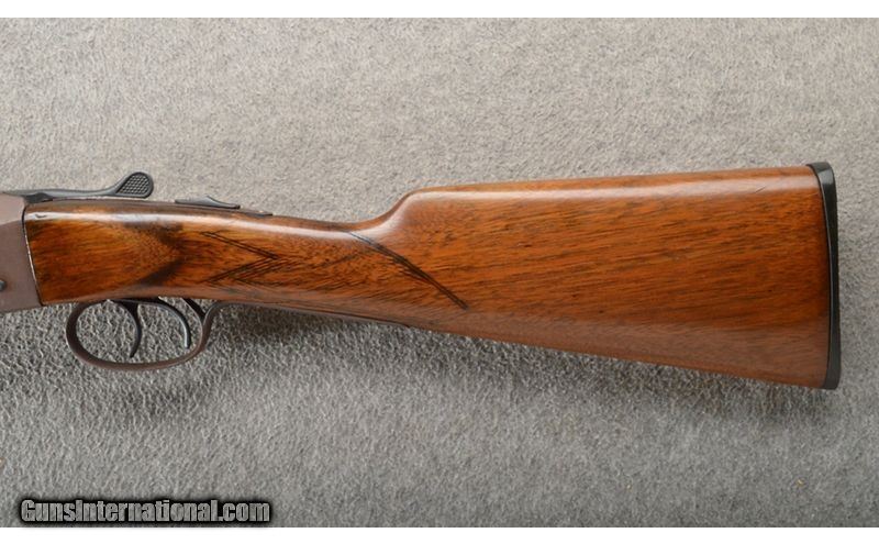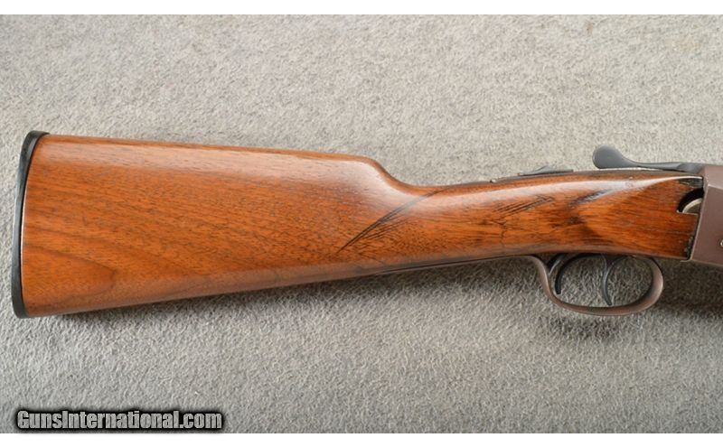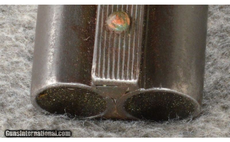 Description: This is an Iver Johnson Hercules Grade 410 bore/gauge shotgun. The metal has been refinished and the stock cut to Youth dimensions with a 12" LOP. The shotgun locks up tight. The stock has had a repair for a crack and there is a hole behind the frame. This would make a nice little starter gun. .410 Gauge SOLD Chambers: 3" Side X Side with an extractor. Metal Condition: Good but refinishes. Wood Condition: Fair with a refinish and crack repairs. Bore Condition: Excellent. Barrels: 26" Side X Side with a matte finish. Triggers: Double triggers. Stock Dimensions: 12" LOP to the front trigger. Fore End: Walnut (splinter style). Butt Pad: Matching walnut with a straight grips and Iver Johnson butt plate. Weight: 5 Lbs. 6 Oz. Sights: Single front bead on a raised rib. Chokes: Fixed MOD and MOD. Item Location: Owatonna, MN |