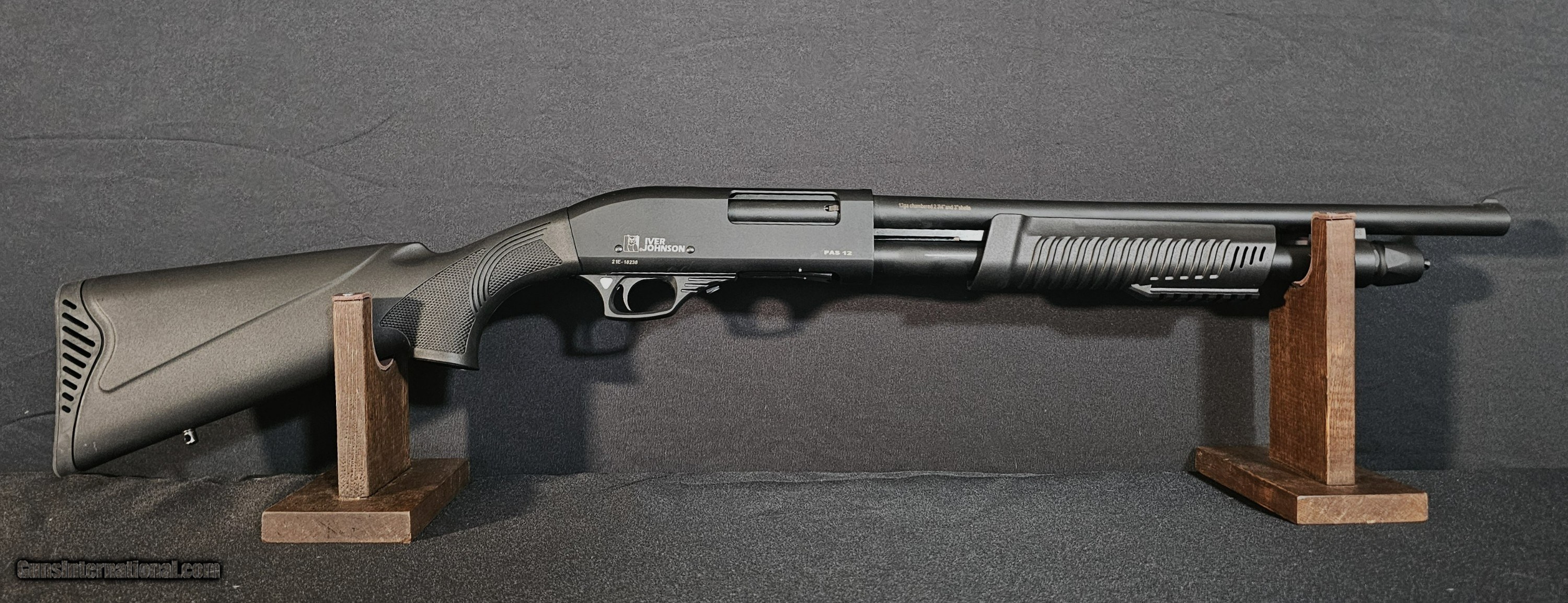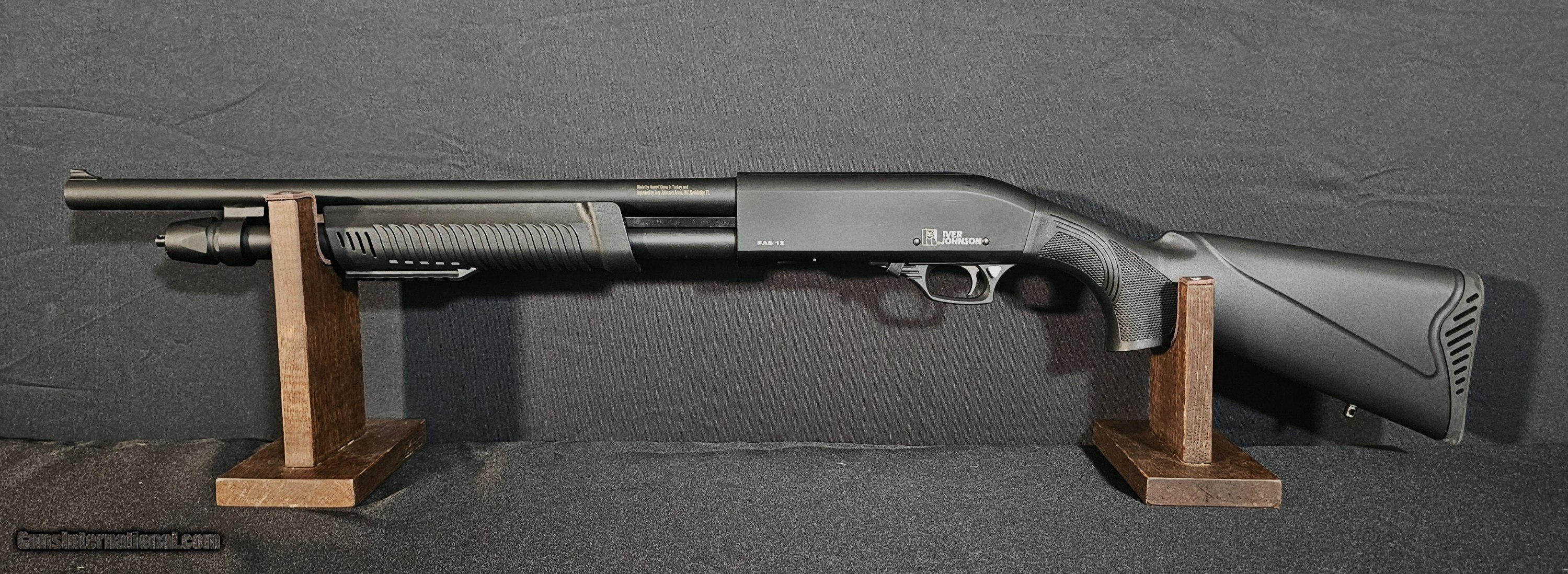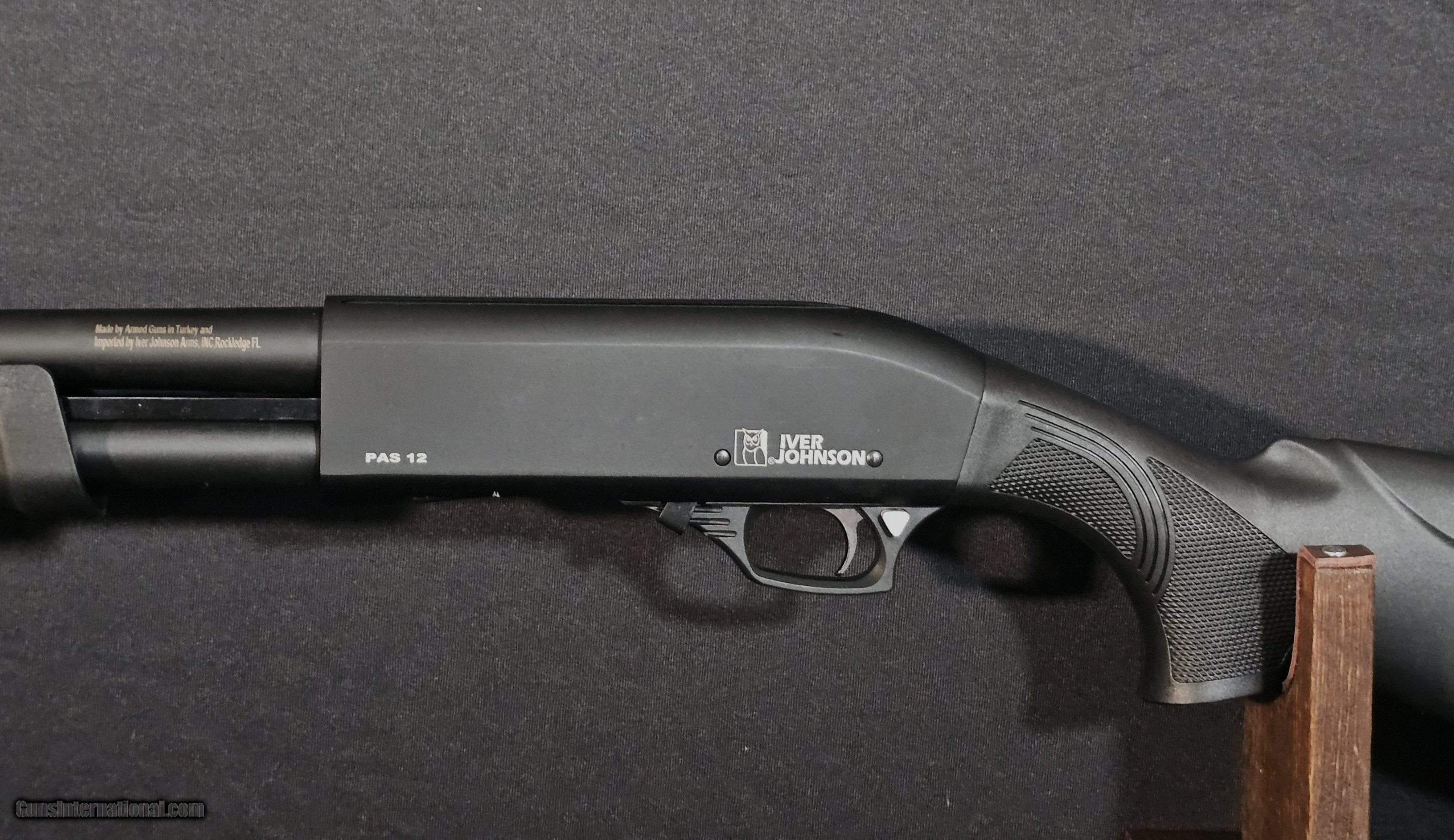Description: The Iver Johnson PAS 12 is a 12-gauge pump-action shotgun configured with an 18-inch barrel and chambered for 3-inch shells. The design follows a straightforward tactical layout, featuring a tubular magazine and standard pump-action operation. The receiver and barrel share a uniform finish suited for general-purpose use, and the gun’s compact barrel length supports maneuverability while maintaining full 12-gauge performance. This PAS 12 is in new condition. Surfaces, components, and mechanical assemblies reflect factory status with no indications of prior use. The pump-action system, barrel, and receiver are consistent with Iver Johnson’s production standards for this model. Controls, sights, and stock configuration are standard for the PAS 12 variant, providing a conventional setup for a short-barreled 12-gauge platform. Included with the shotgun are the original factory contents as packaged new. The configuration corresponds to the manufacturer’s complete setup for this model, with no additional accessories or modifications noted. The 18-inch barrel, 12-gauge chambering, and pump-action assembly form the core of the firearm’s specification as delivered from Iver Johnson. Terms and Conditions: