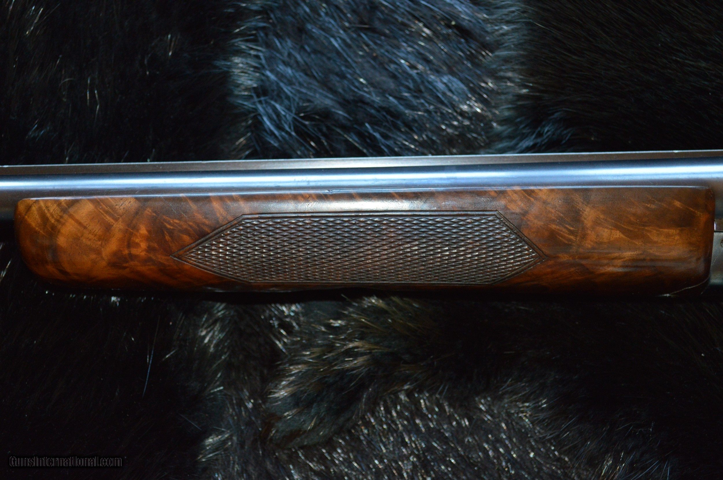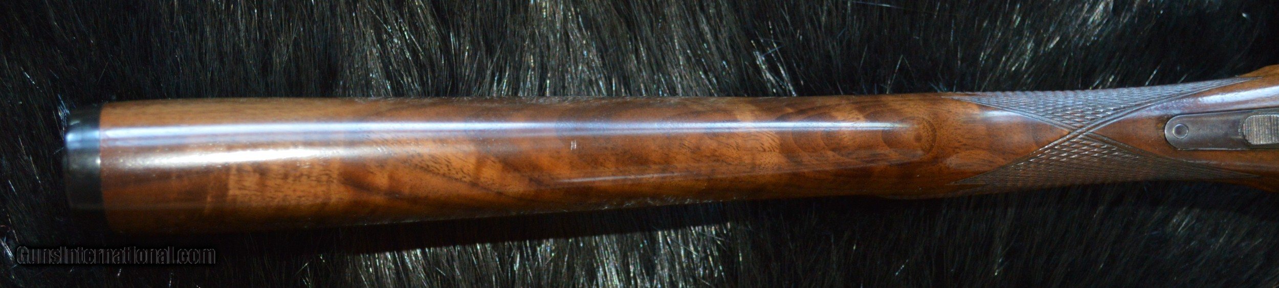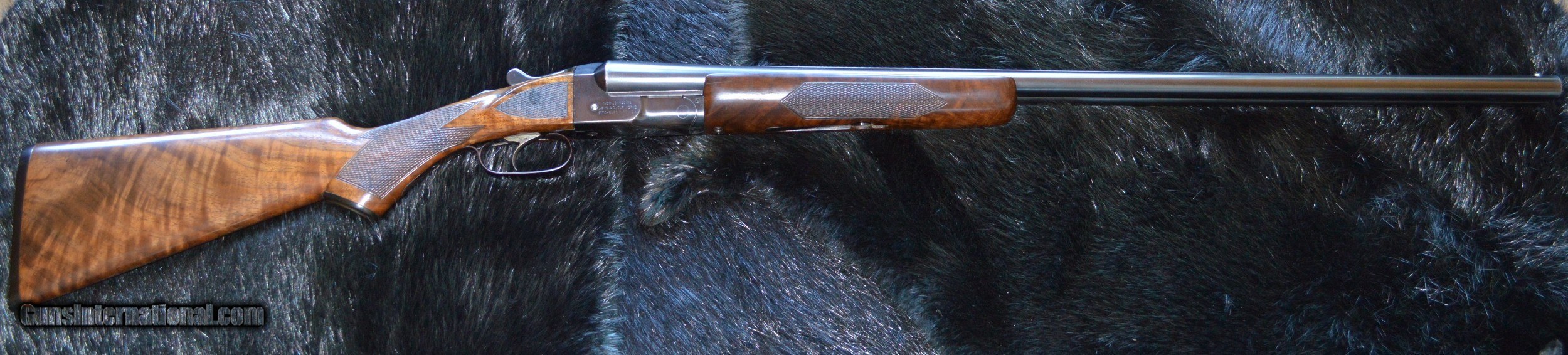 Description: SOLD *** pending funds This is an Iver Johnson Skeet-er in 20 gauge with 28" barrels & ejectors. The length of pull is 14" from a Miller non-selective trigger to the factory Owls head butt plate and the drop at the comb is 1-5/8" & drop at the heel is 2-5/8". The right barrel is choked Skeet and the left barrel is choked IC. There are some tiny cracks on either side of the bottom forearm screws, but I don't think they will ever open up. The bores are bright and shiny and the chambers are 2-3/4" long. It has a large ivory bead at the end of the barrel and a small ivory mid bead. It has a semi-large beavertail forend and the gun weighs 7 lbs - 6 oz. It would make a fine grouse or woodcock gun and of course a great skeet gun. SOLD Curio/Relic: Yes |