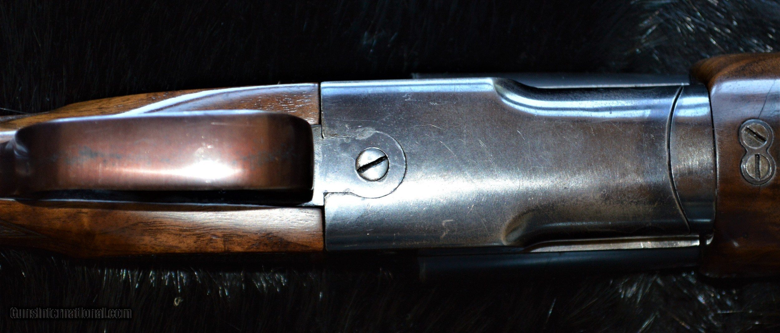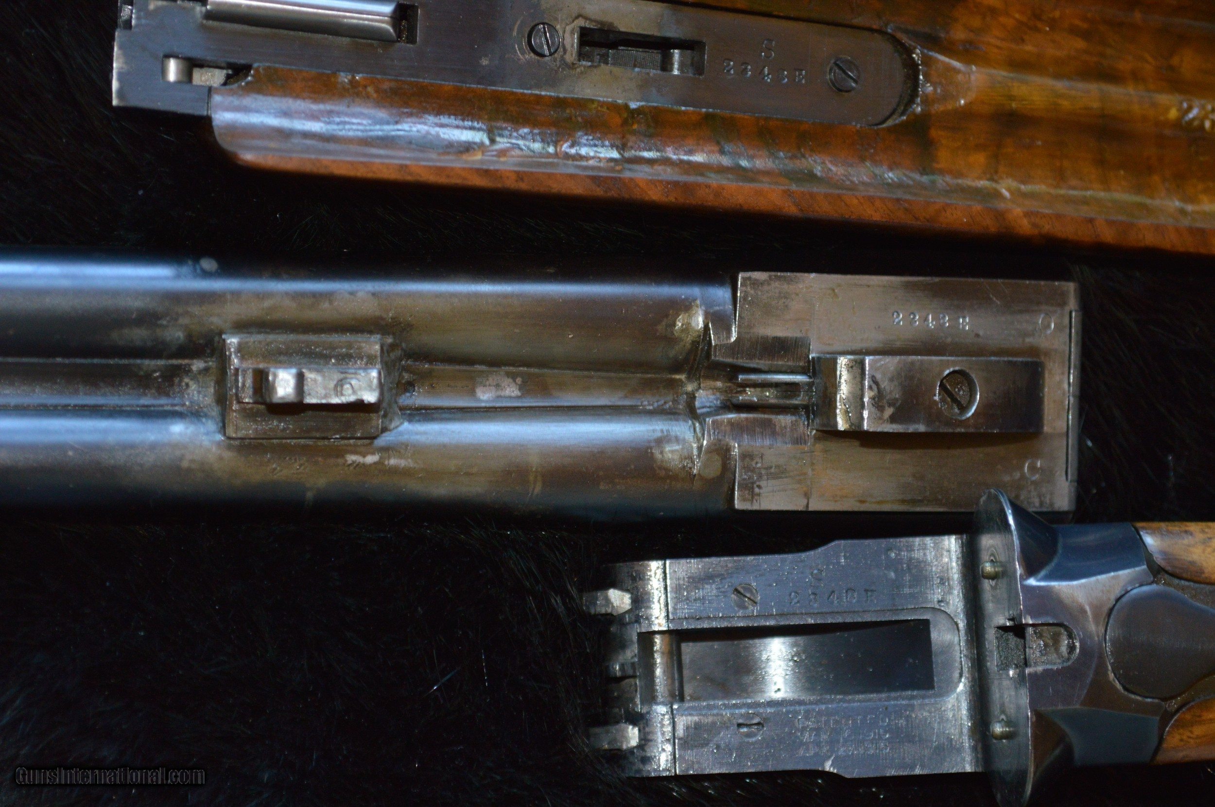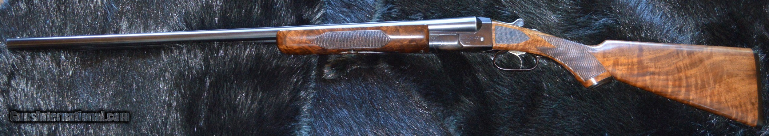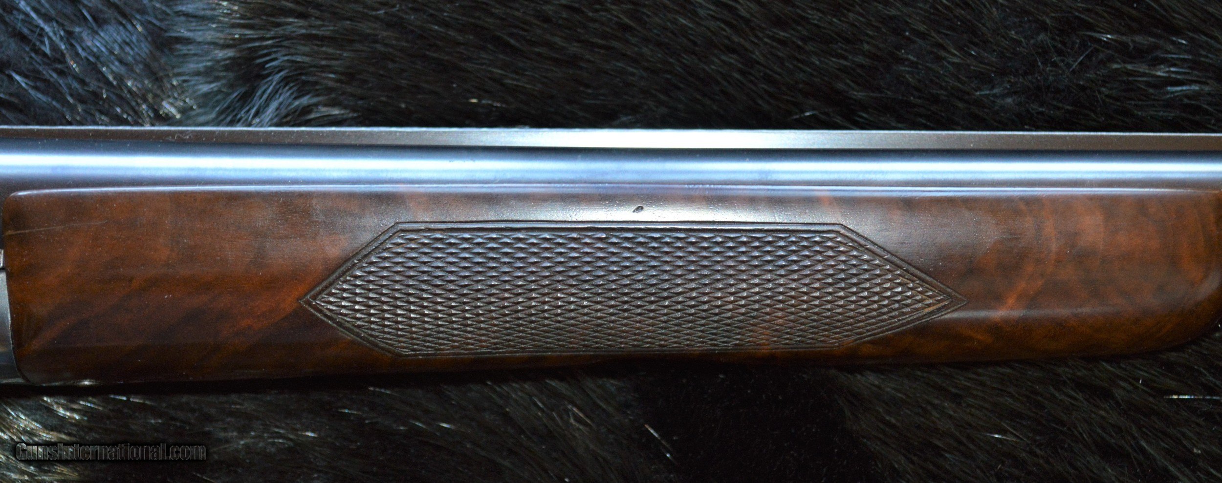 Description: SOLD *** pending funds This is an Iver Johnson Skeet-er in 20 gauge with 28" barrels & ejectors. The length of pull is 14" from a Miller non-selective trigger to the factory Owls head butt plate and the drop at the comb is 1-5/8" & drop at the heel is 2-5/8". The right barrel is choked Skeet and the left barrel is choked IC. There are some tiny cracks on either side of the bottom forearm screws, but I don't think they will ever open up. The bores are bright and shiny and the chambers are 2-3/4" long. It has a large ivory bead at the end of the barrel and a small ivory mid bead. It has a semi-large beavertail forend and the gun weighs 7 lbs - 6 oz. It would make a fine grouse or woodcock gun and of course a great skeet gun. SOLD Curio/Relic: Yes |
