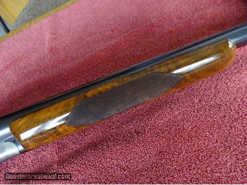 Description: IVER JOHNSON SKEETER, 12 GAUGE, 28" BARRELS, IMCYL. AND MODIFIED, 2 3/4" CHAMBERS, AUTOMATIC EJECTORS, 98% ORIGINAL BRIGHT BLUE, MIRROR BORES. CASE COLORED FRAME, BOLD VIVID COLORS. PISTOL GRIP STOCK, BEAVERTAIL FOREARM. EXCELLENT HIGHLY FIGURED WOOD, NEARLY PERFECT CHECKERING. GOOD DIMENSIONS - 1 1/2" X 2 1/2" X 14, ORIGINAL JOSTAM PAD. CIRCA 1930'S, SCARCE GUN, ALL ORIGINAL FINISH. $2250.00 + $50.00 Insured shipping to an FFL address. See all Pats listings We also have hundreds of pieces of ORIGINAL gun company advertising & memorabilia available for sale. We have no reprints or reproductions. Email for more information. SOLD Curio/Relic: Yes |