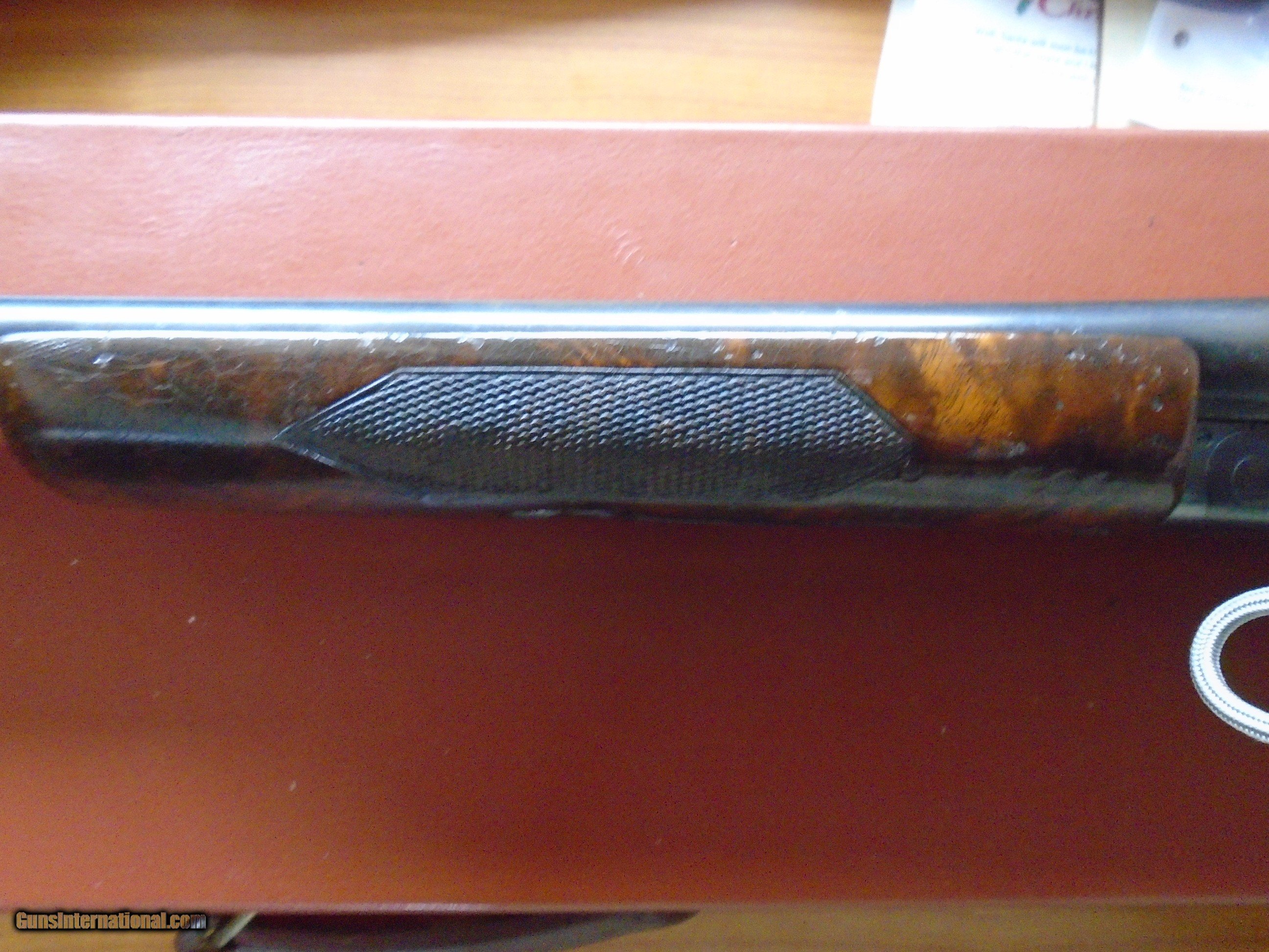 Description: Iver Johnson Skeeter 16 gage. with Selective Automatic Ejectors and beavertail forend. Barrels are 28 inch bored Skeet 1 & 2. Original in every respect and functions perfectly. Action retains 98% deep blue; The highly figured stock has 92% original varnish (crazed and some minor dings); and the barrel blue is very good. Bores are excellent. For several years, the I. J. Skeeter won many National championship skeet tournaments. Iver Johnson Skeeters in 16 gauge are very rare and command a collector premium. One reason for this is that tournaments were not shot with 16 ga guns. This would be a great gun for quail, skeet, sporting clays or addition to your collection. SOLD Curio/Relic: Yes Manufacturer: Iver Johnson Arms & Cycle Works/Fitchburg, Mass USA Model: Skeeter Serial Number: S2327E Barrel Length: 28 Chambers: 2 5/8 Ejectors: auto Condition: VG + Metal Condition: exl Bore Condition: exl Barrel Type: double Action: Boxlock Triggers: double Stock: walnut Stock Comb: 1 1/2 Stock Heel: 2 5/8 Stock Cast: none Fore End: BT Butt Pad: Rubber LOP: 13 7/8 Finish: blue Choke Left: S-2 Choke Right: S-1 Item Location: CA Proof:Nitro: yes |