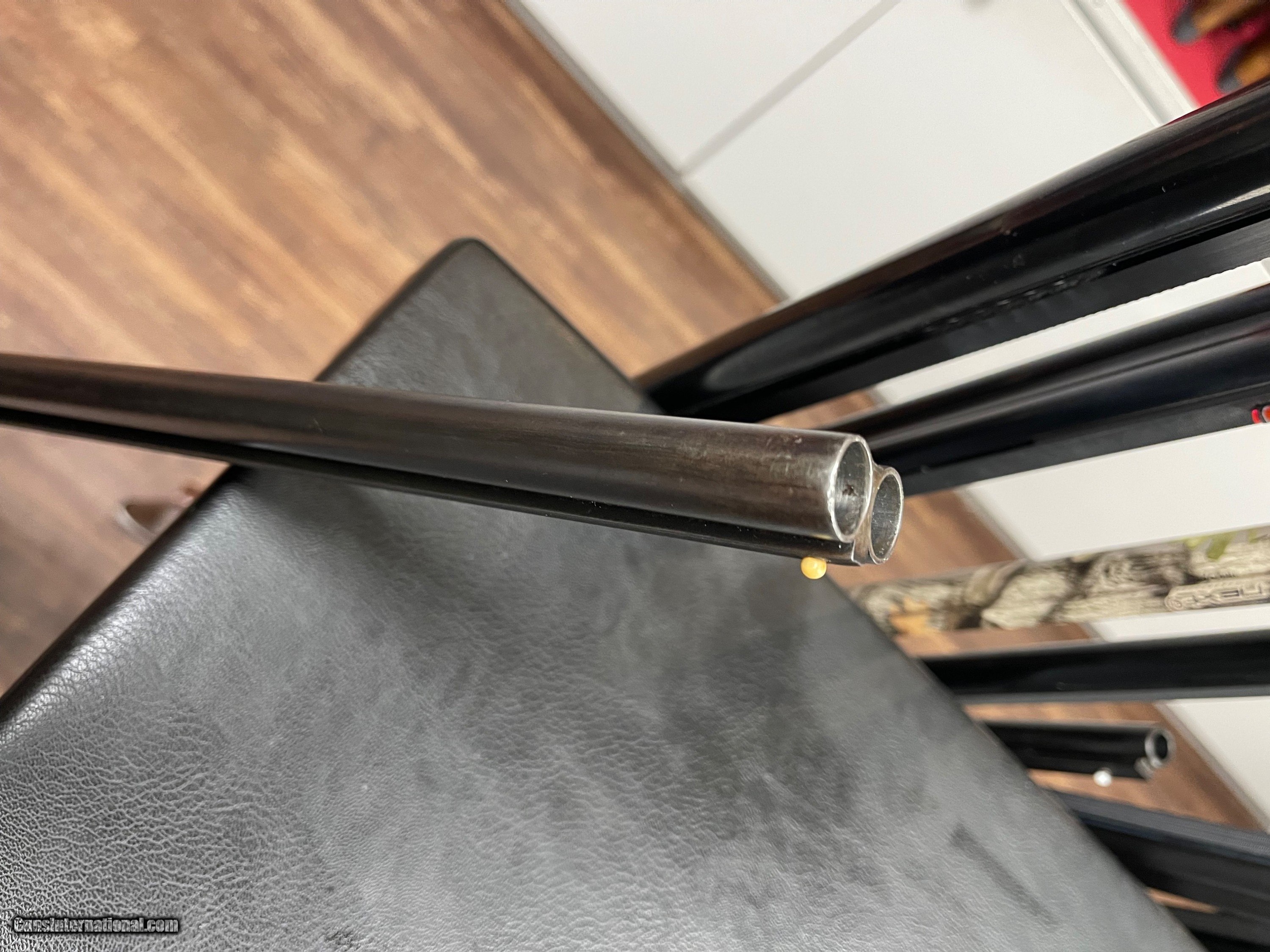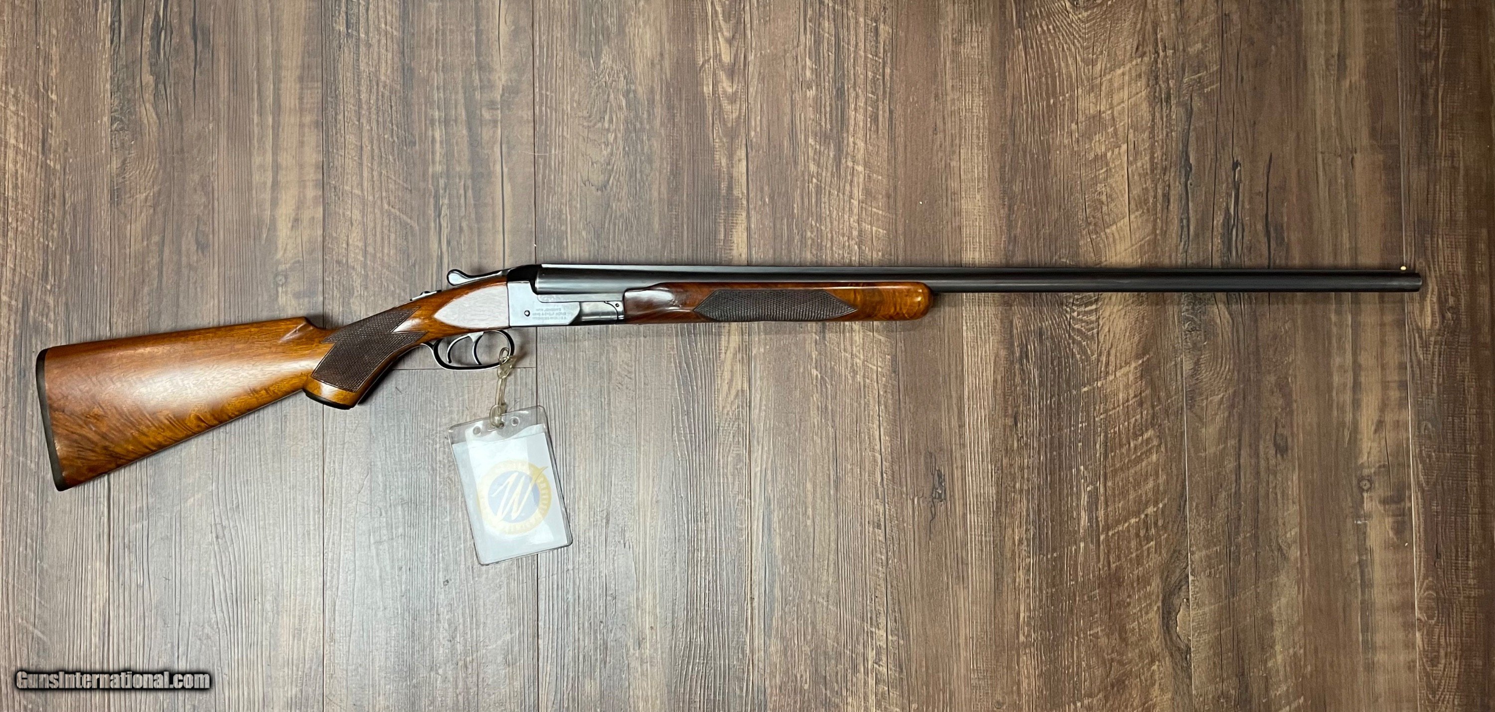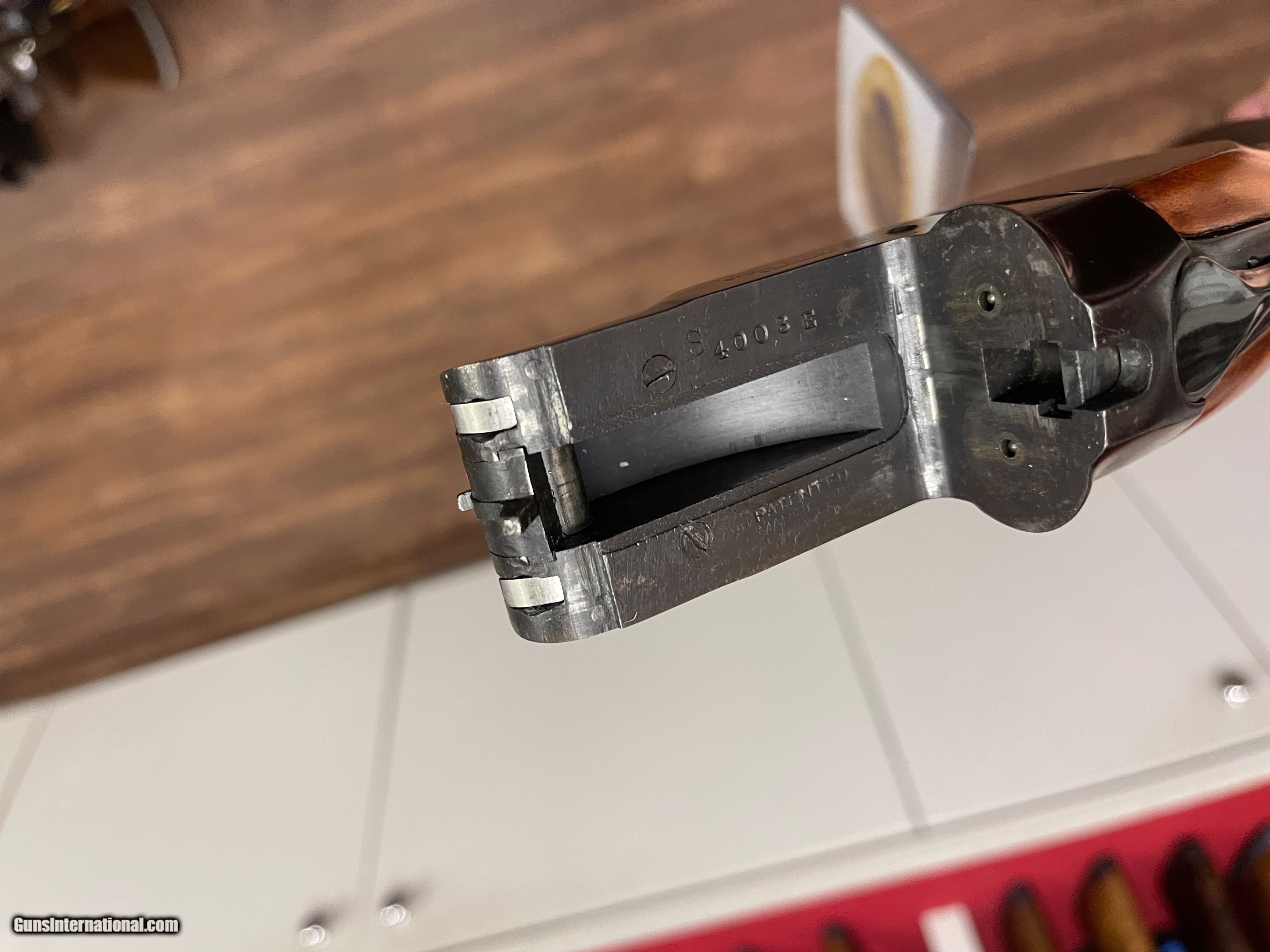 Description: Used - Iver Johnson Skeeter chambered in 28ga 28" barrel fixed choke IC/M. Ivory bead. Beaver tail forearm. Double triggers. Auto safety. Auto ejectors. 13 1/4" LOP from back trigger. Overall in great condition. Some minor handling marks through out the wood. Good finish. Some minor blueing wear in usual spots. Comes as is. SOLD Shotgun Gauge: 28 Gauge Manufacturer: Iver Johnson Model: Skeeter Serial Number: S4003E |