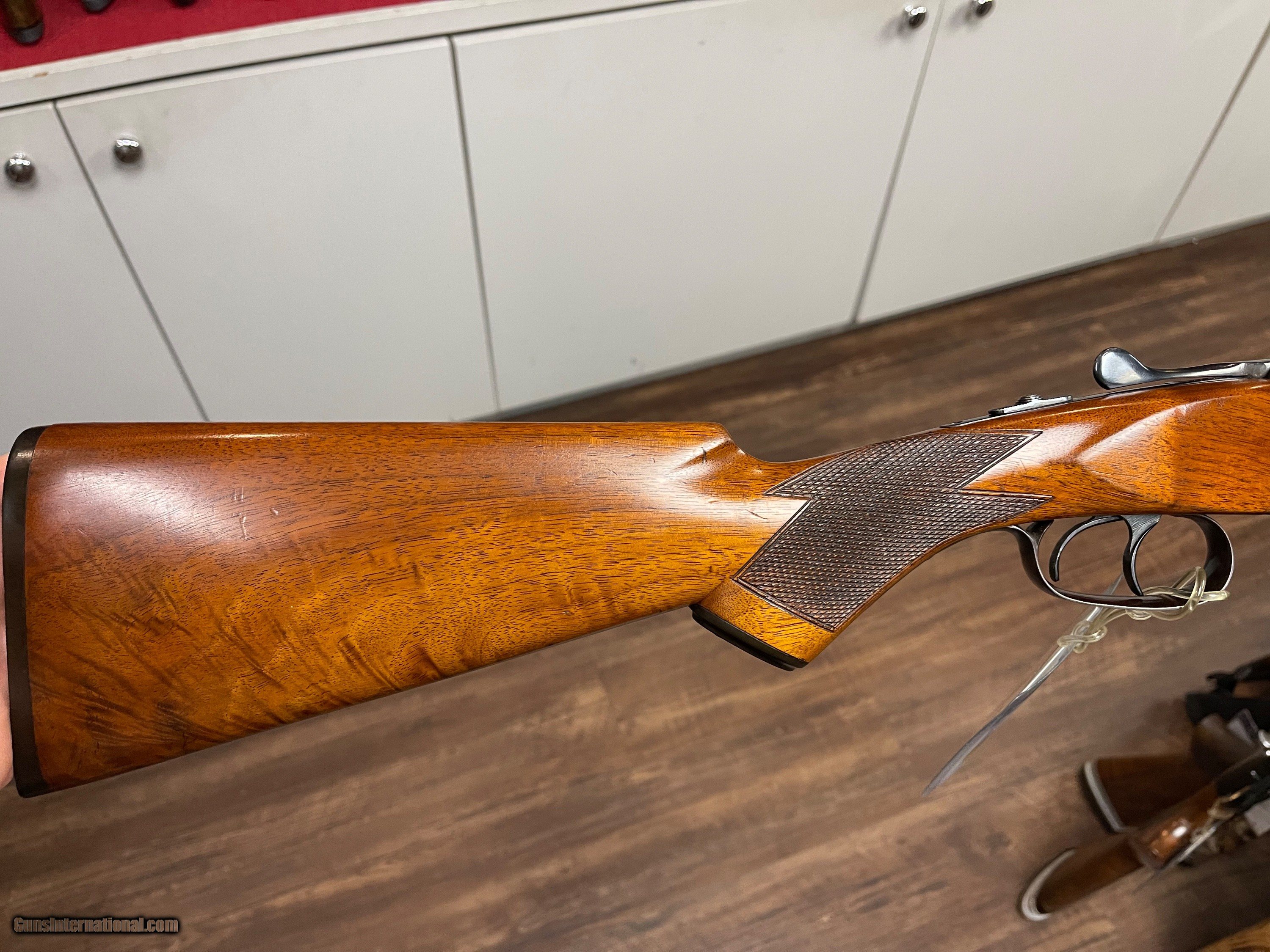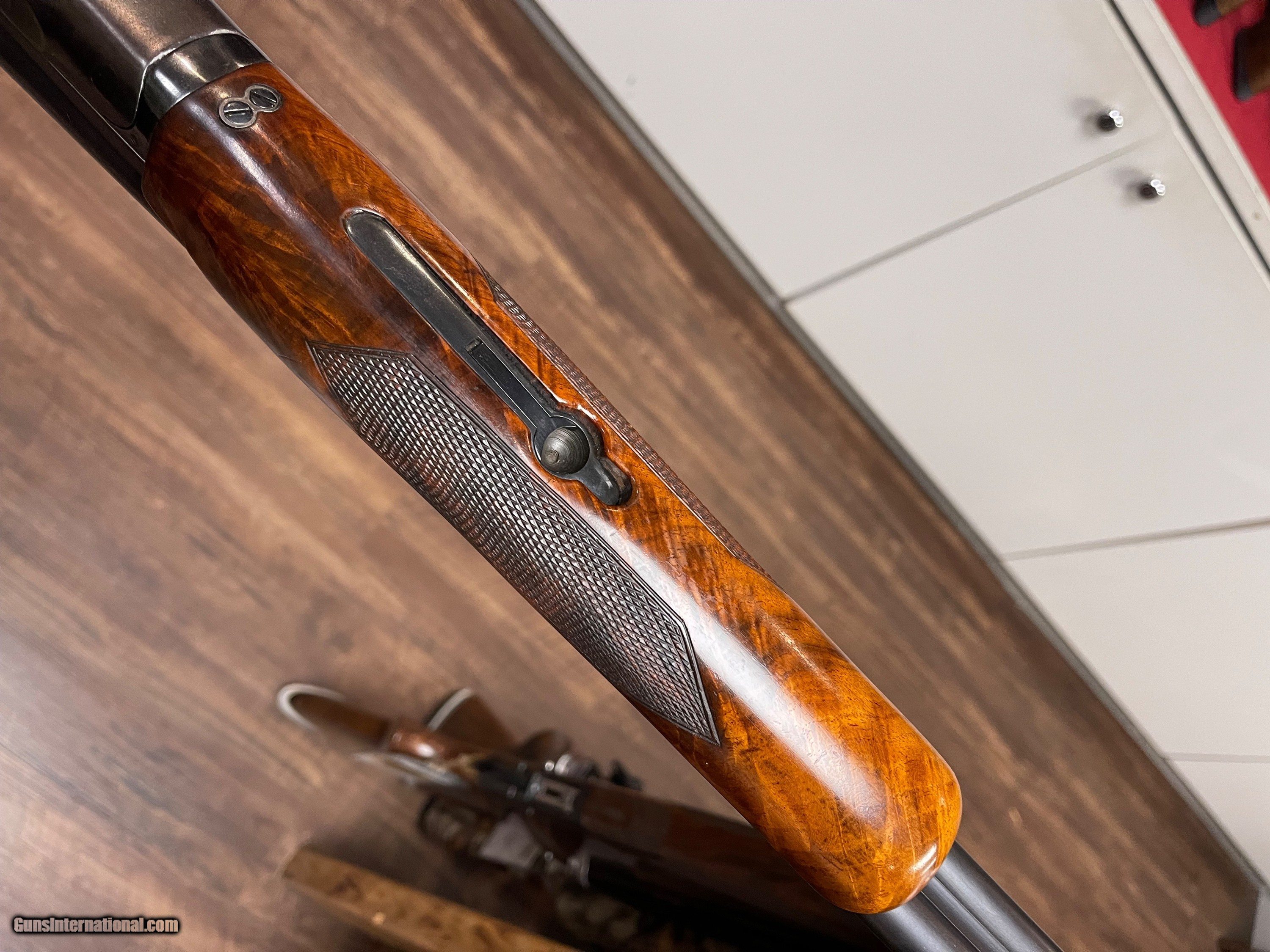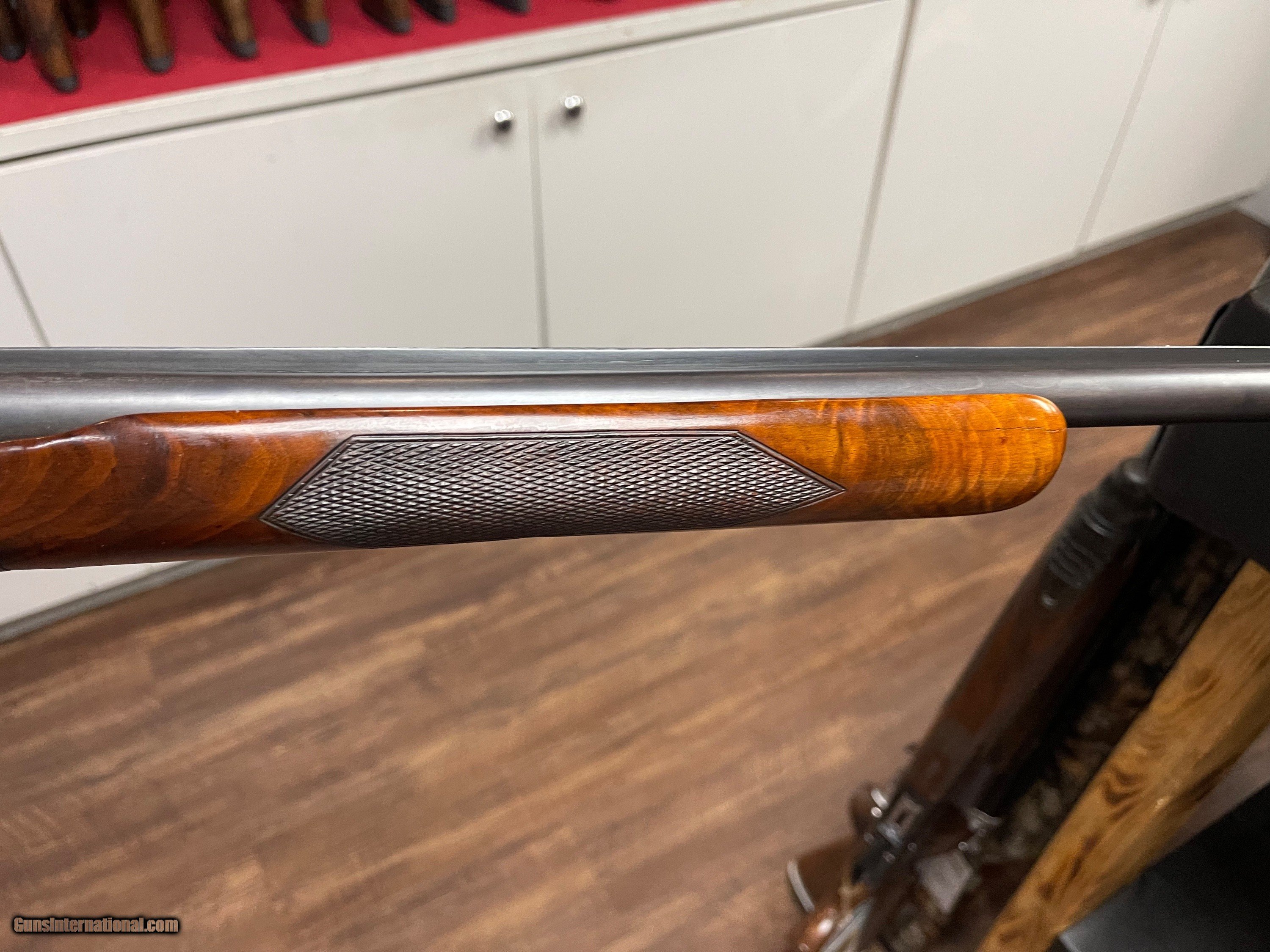 Description: Used - Iver Johnson Skeeter chambered in 28ga 28" barrel fixed choke IC/M. Ivory bead. Beaver tail forearm. Double triggers. Auto safety. Auto ejectors. 13 1/4" LOP from back trigger. Overall in great condition. Some minor handling marks through out the wood. Good finish. Some minor blueing wear in usual spots. Comes as is. SOLD Shotgun Gauge: 28 Gauge Manufacturer: Iver Johnson Model: Skeeter Serial Number: S4003E |