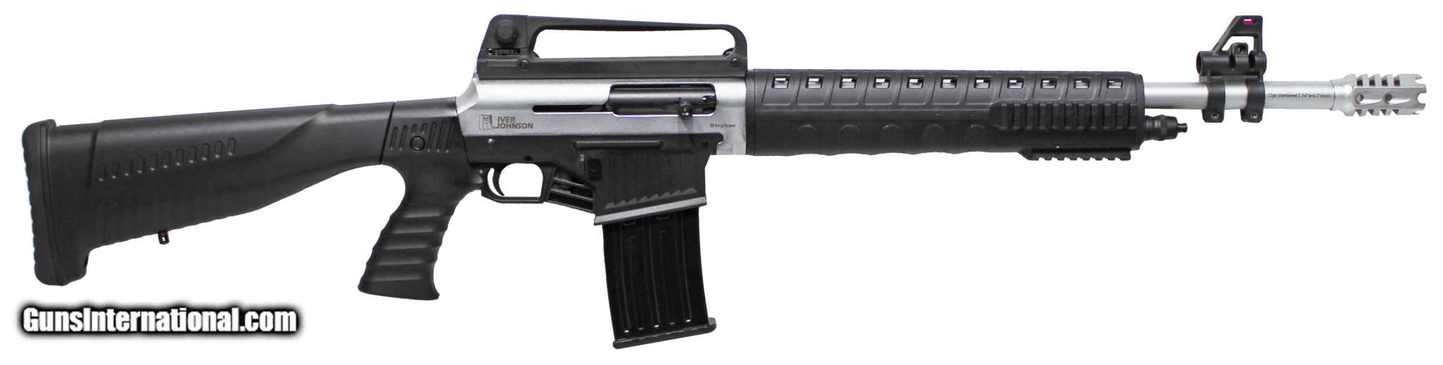 Description: Guns Listing ID: 1082490 The Stryker SN is an AR-15 style semi-automatic shotgun. This model features a two-tone design with a satin nickel finish and black stock/forend. The Stryker SN comes equipped with a detachable A2 Carry handle and a fiber optic front sight. The synthetic fixed stock can be removed to accommodate those who do not want to shoulder the firearm. SOLD Manufacturer: IVER JOHNSON Model: STRYKER Condition: new Barrels: 20 BARREL Gauge Info: 12 GA Finish: BLACK AND NICKEL |