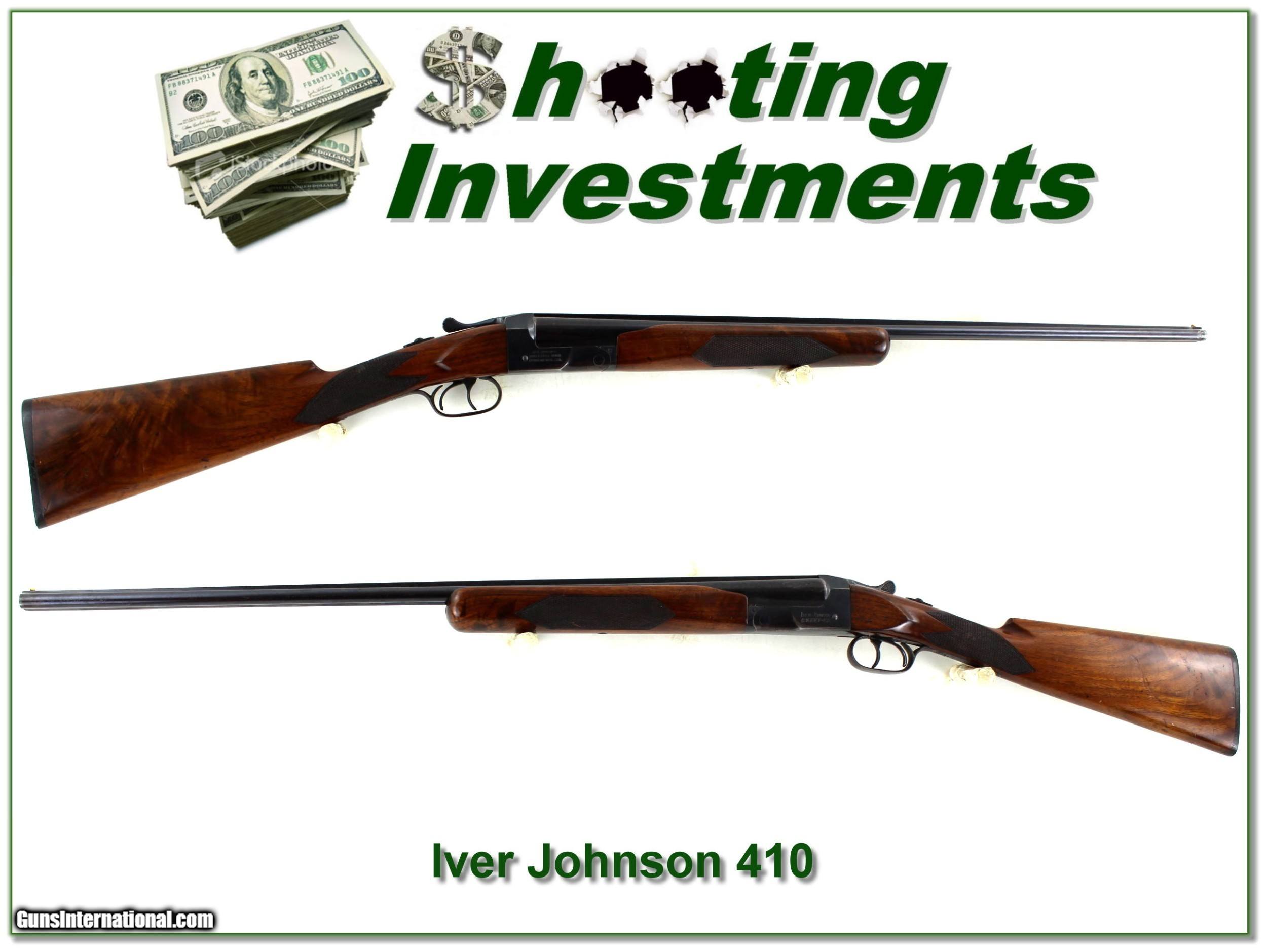 Description: Collectors, this is a seldom seen Iver Johnson 410. It is all original and says Skeet ER on the receiver. It has 26in barrels and 3in chambers. The LOP from the English stock is 14.25in to the front trigger. The lockup is tight. It will make a fine addition to your collection. I am selling this one on consignment and as such lay-a-way can’t be used. It does of course have the standard 3-day inspection. Shipping and insurance is $49. Please email me with any questions or larger pictures. (Consign your quality firearms with Shooting Investments for only 12%! Let me know if you have any you would like to sell!) 21-1722 Payment: Payment is by Money Order, Cashiers Check or Personal Check. I can now also accept Credit Cards (MasterCard, Visa, Discover & American Express) with a 3% convenience fee. Shipping: The shipping charge will be listed in each description. It is $39 for most firearms. Some heavy guns or those insured for over $2000 will be higher. Shipments to Alaska and Hawaii are higher because air shipment is required. Most firearms are shipped on Tuesday and Thursday and usually in 5 days of receipt of payment. We package all shipments carefully and insure them. Optics are shipped Priority Mail and most other non-firearm shipments are shipped First Class. Returns: Our return policy is simple. If for any reason you are not pleased with your purchase, you may return your item for a full refund of purchase price. Ammunition cannot be returned. It is important to us that you are happy. Guns cannot be fired or dissembled before returning them and they must be returned in the same condition as received. Notification of a return must occur with-in 3 days of receipt at your dealer. Shipping, convenience and dealer fees are not refundable and are the responsibility of the buyer. Lay-a-way: If needed, we offer a 60 day lay-a-way option on most firearms. It is 1/3 now, 1/3 in 30 days and 1/3 in 60 days. Lay-a-way firearm sales are final and if not completed the first payment cannot be returned. Consigning your firearms with Shooting Investments: We will help you get top dollar for your firearms. While most local guns shops charge 20% or more, our fee is only 12% with a minimum of $75. At your local gun shop it might take months to sell. Selling on-line provides instant access to thousands of interested buyers. You won’t find any other on-line dealer willing to sell your firearms for only 12% or listing every gun on 3 separate s. Selling through an House typically costs the seller 15% and the buyer an addition 15% (so 30%) and you have to wait several months to sell and longer to receive funds. If properly priced, we will sell your firearms in a few weeks. Send us an email or give us a call and we’ll explain how easy it is for you to get top dollar. Trading: Trading for use is really just buying your gun to re-sell. If you have a gun you want to trade, please email a picture and we will let you know what we can give or it. You will always get more if we sell it for you on consignment. Help for California Buyers: We are happy to ship to California. It is the buyer’s responsibility to make sure any item you buy is legal in your state. We are also happy to help with your purchase of a firearm from someone other than us. If you see a gun you would like to buy but the seller can’t or won’t ship to California they can ship to use and we’ll then ship it to your California dealer. The cost for this service is only $30 + shipping. Let us know if we can help! SOLD |
