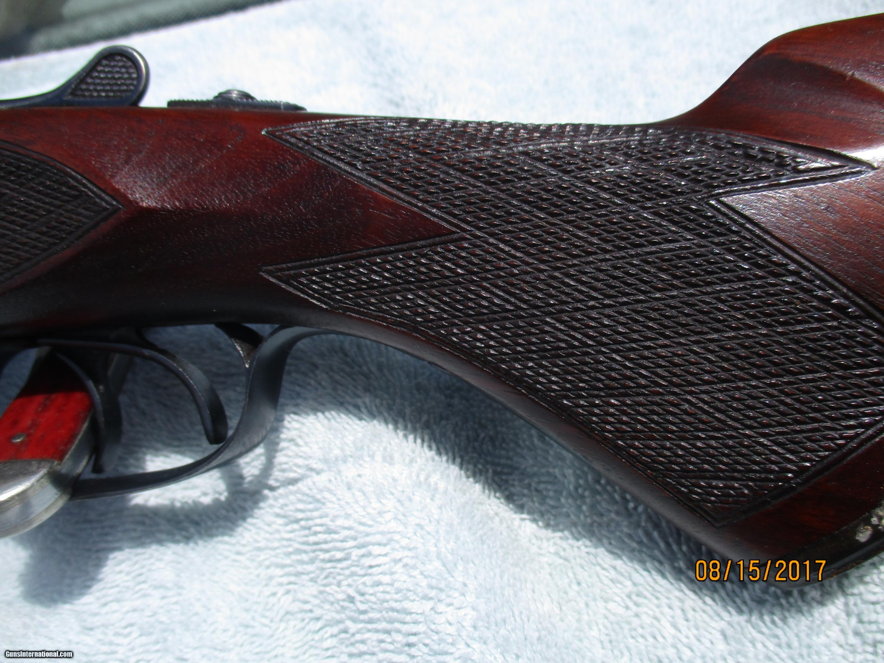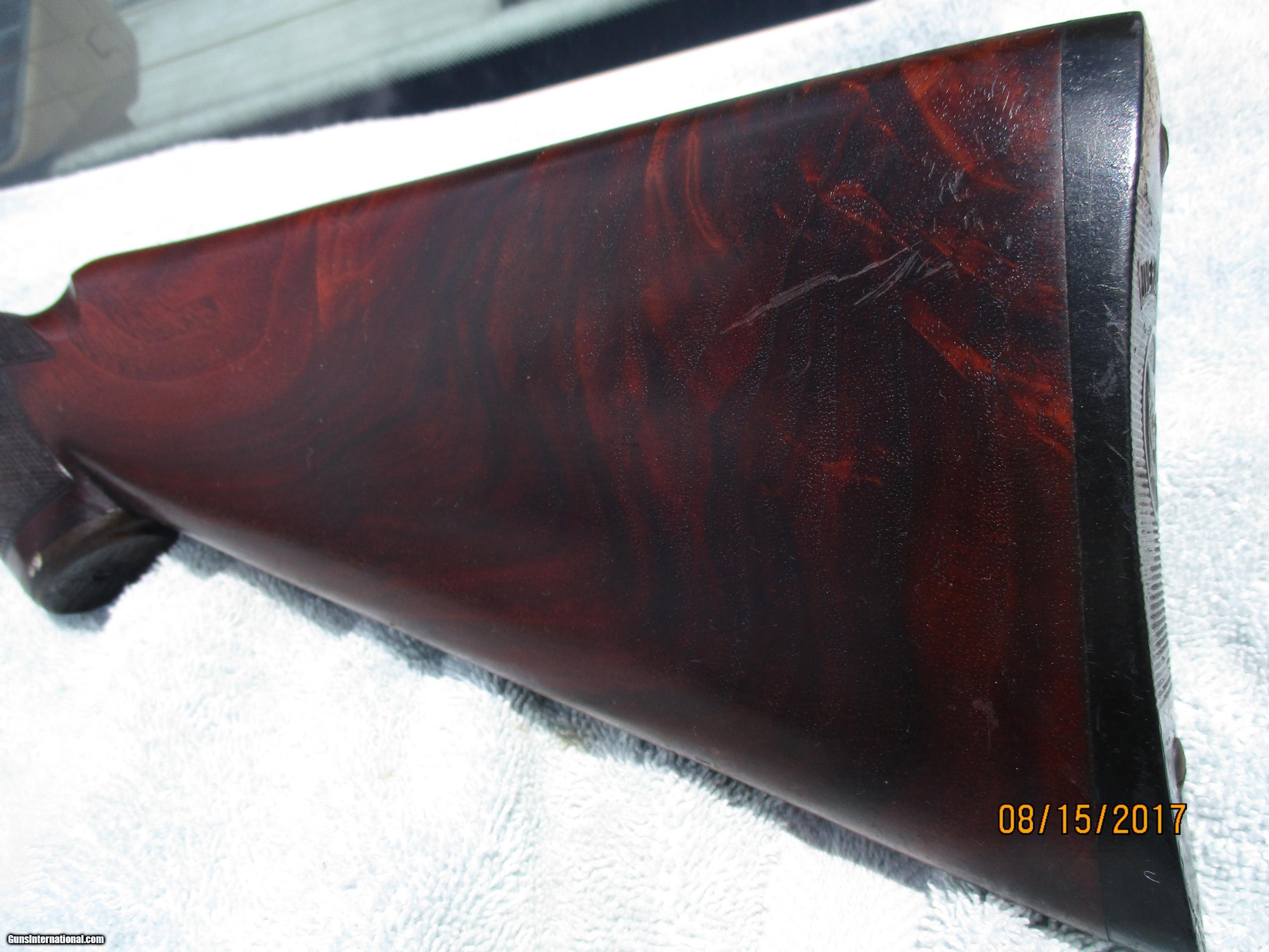 Description: BEAUTIFUL WOOD, BEAVERTAIL FOREND, 26" FULL/FULL, 14 1/4"TO ORIGINAL OWLSHEAD BUTTPLATE, X2 1/2"X1 1/2" DROP, SHARP CHECKERING, EXCELLENT BORES, NO CRACKS OR GOUGES SOLD |