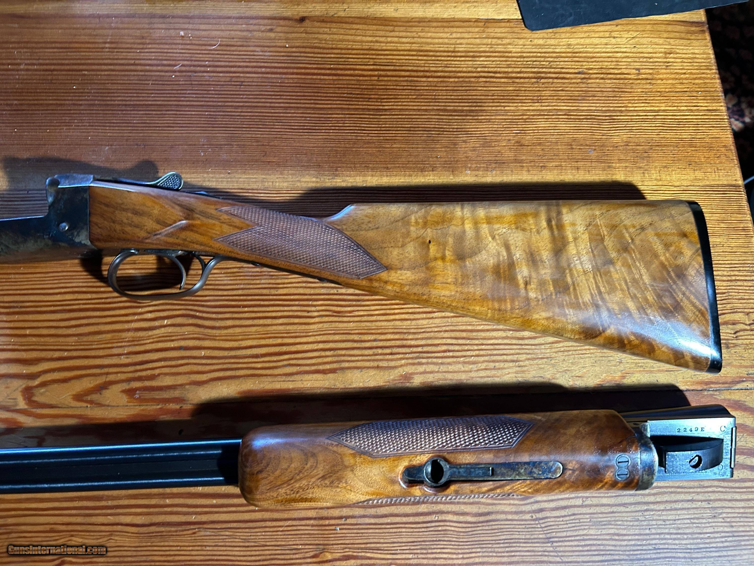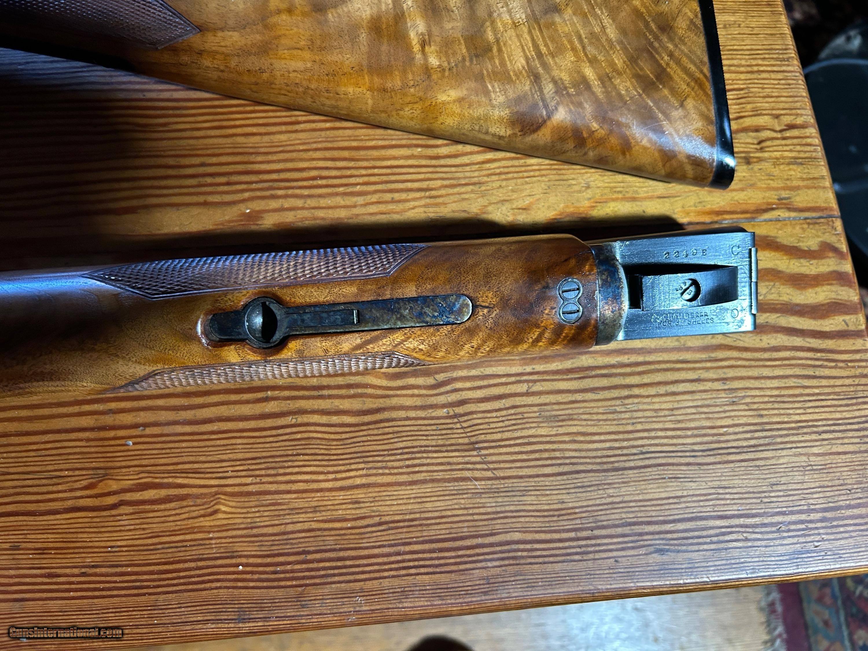 Description: Iver Johnson SKEETER 410 shotgun. very good condition,2 small cracks in wood near where receiver joins forearm. Extractors I believe.They were made from 1931 to 1943. If you are a collector don't pass this one up. Not engraved. Wood is highly figured. Barrels are shiney, inside and out.Single trigger. case colored receiver. Iver Johnson butt plate with the owl. checkered forearm and pistol grip. Chambered for 3" shells SOLD Shotgun Gauge: .410 Gauge Manufacturer: Iver Johnson Model: Skeeter Serial Number: 2249E Barrel Length: 28 Bore: Excellent Chambers: Excellent Condition: Excellent Metal Condition: Excellent Wood Condition: Excellent Bore Condition: Excellent Barrels: SxS Barrel Type: Double Action: Break Triggers: Single Butt Pad: Iver Johnson LOP: 13 1/2” Rib: Solid Finish: Beautiful Weight: 6 3/4lbs Sights: Ivory bead (Lyman) Manufacture Date: Between 1932-1943 Choke Left: Modified Choke Right: Cylinder Engraving: None Case: Beautiful case Item Location: St Petersburg |