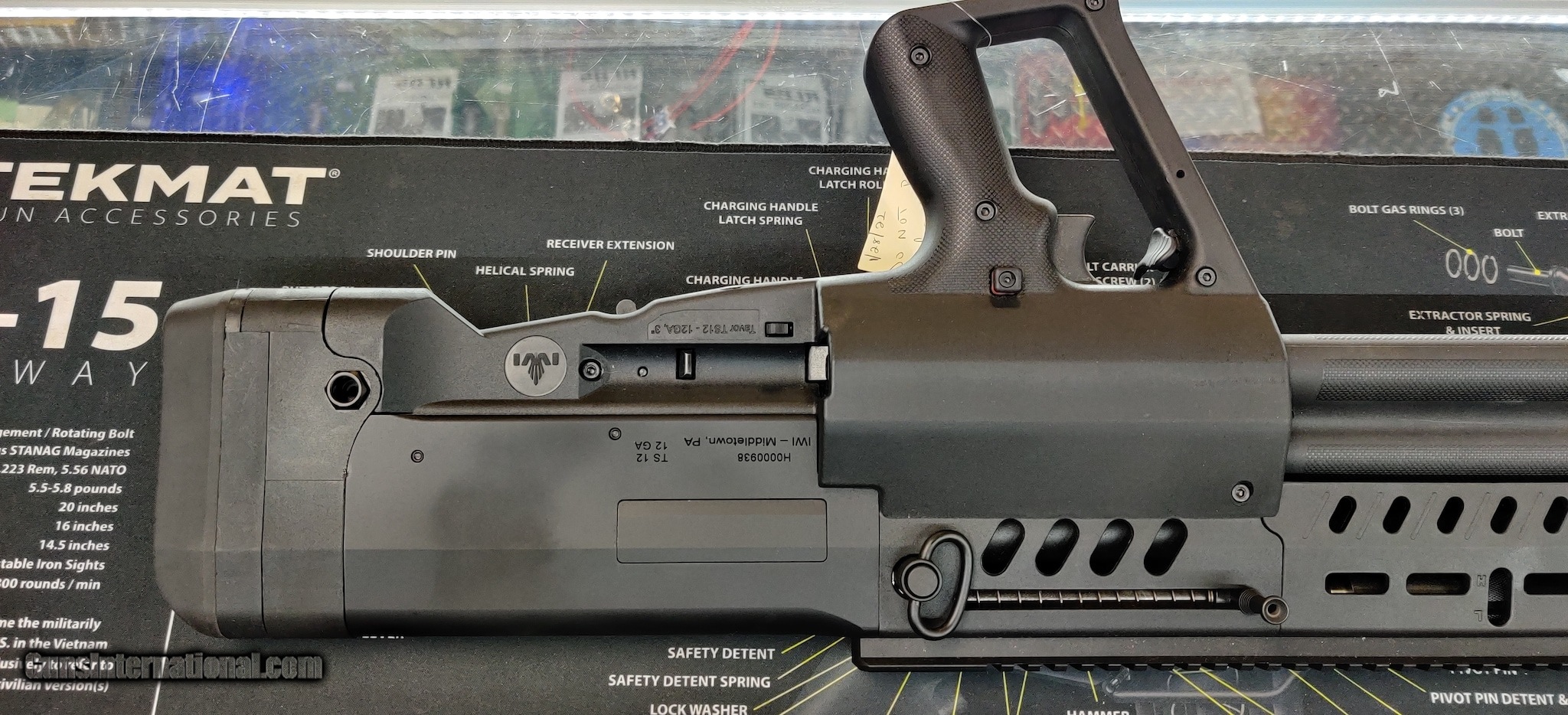 Description: Guns Listing ID: 511462 The Tavor TS12 12 gauge shotgun is a gas regulated bullpup shotgun with an innovative design that feeds from one of three (3) individual magazines which can hold four 3 inch shotgun shells or five 2 ¾ inch shotgun shells each. This means that the potential overall capacity from all three (3) individual magazines is 15 rounds plus one additional round in the chamber. The TS12 has a unique feature that automatically loads a round in the chamber once the subsequent loaded magazine is rotated into position. It can be fed and unloaded from either side. SOLD Manufacturer: IWI Model: TAVOR TS12 Condition: Used - Non-Certified Barrels: 18 BARREL Gauge Info: 12 GA Finish: BLACK |