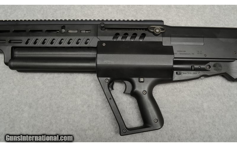 Description: This very uniquely designed pre-owned Tavor TS12 features 3 rotary tubular magazines that rotate to allow the user to quickly change loads depending on the situation. The three individual rotary mag tubes each have a capacity of four 3 inch shotgun shells or five 2 ¾ inch shotgun shells each, giving the user up to 15 rounds of selectable ammo at their disposal. The condition of the shotgun is very fine with very few handling marks, but the bore is another story. It is scratched and has gouges almost all the way down the bore. 12 Gauge SOLD Chambers: 12 Ga / 3" chamber Metal Condition: Excellent Bore Condition: Scratched or gouged Barrels: 18.5" Bullpup Stock Dimensions: LOP 13-3/4 Fore End: Polymer MLOK accessory hand guard Butt Pad: Black rubber Weight: 9 LBS Chokes: Modified installed but accepts Benelli / Beretta thread pattern chokes Item Location: Columbus, OH |