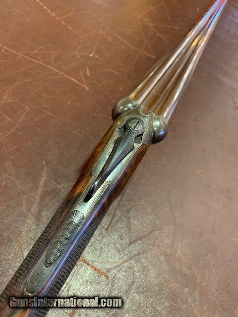 Description: W J Jeffery SxS 20g 28" Very good SN- 13755 5 1/8 lbs Comb 1 1/2" Heel 2 1/8" LOP 14 1/4" to leather covered pad Extractors Manual Safety 28" bbls Right IC wall .038 Left F wall .040 Double triggers 2 3/4" chambers Nitro proofed and stamped accordingly. Birmingham shotgun. Damascus bbls. Likely refinished and executed nicely. Please call or email for additional photos and information. SOLD |