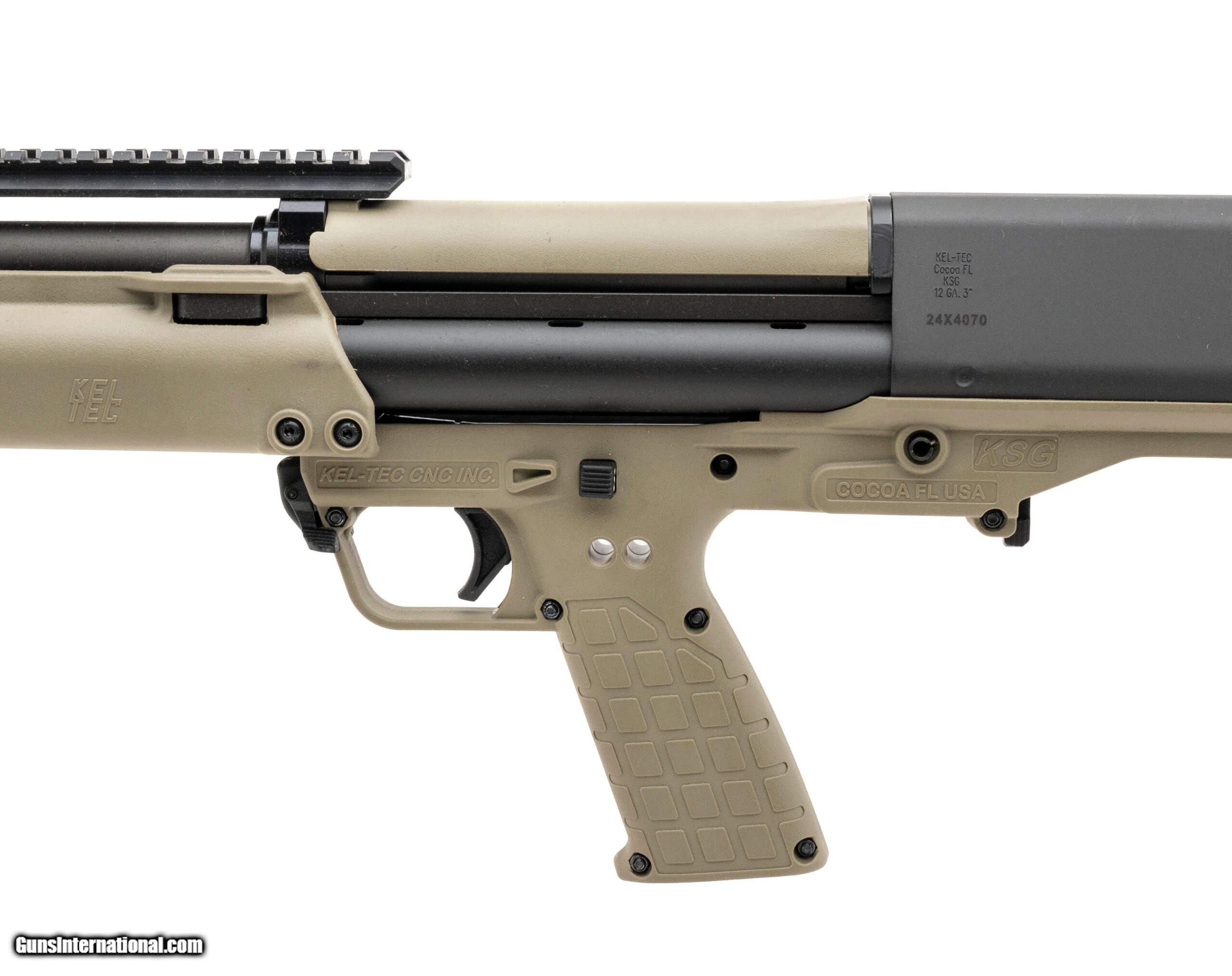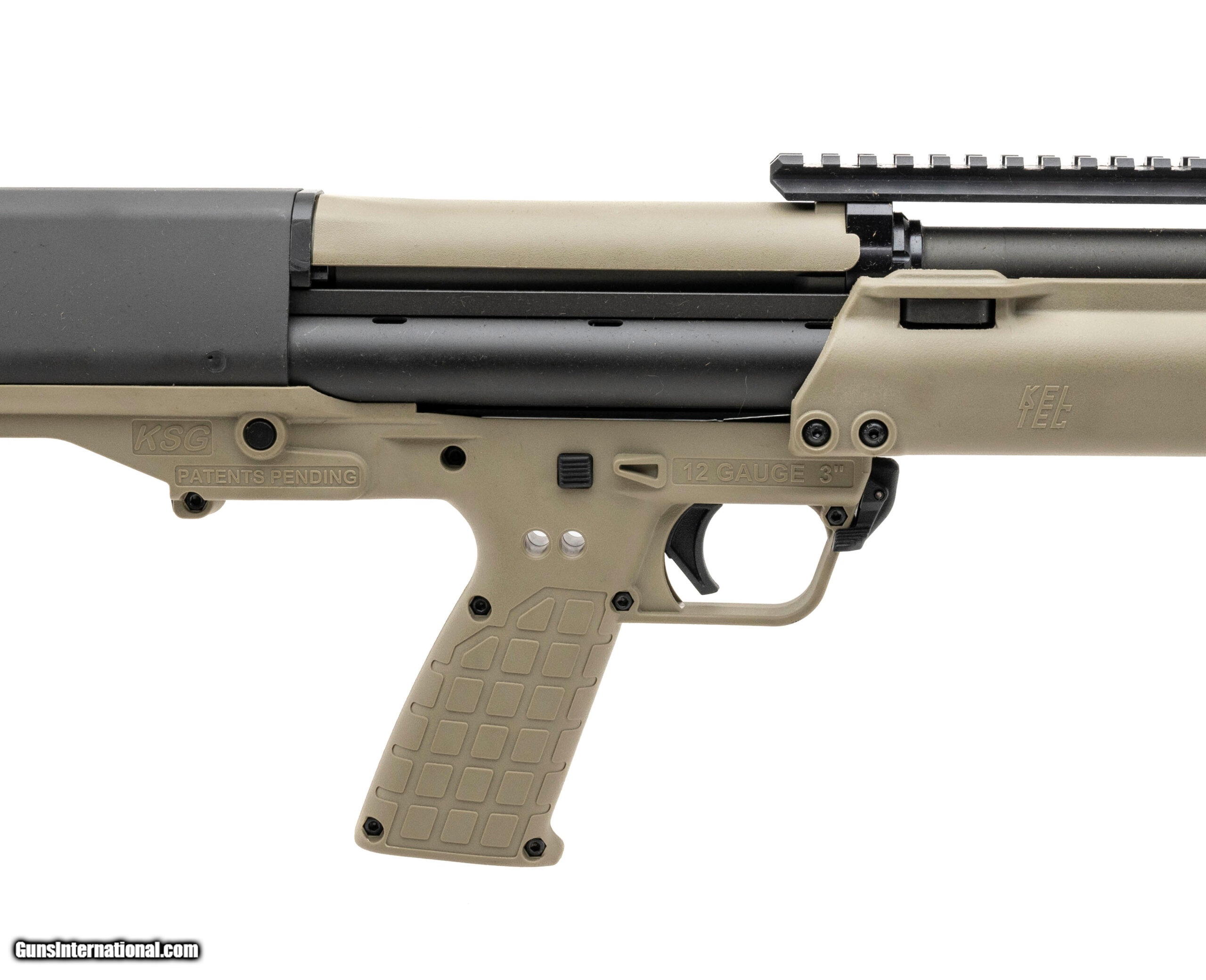 Description: "Kel-Tec KSG Shotgun. 12 Gauge with a 18.5"" barrel. Pump action bull-pup shotgun with a Tan cerakote finish, tactical handguard with rails, and fixed synthetic stock. New. UPC: 640832003291 (STOCK PHOTO) SOLD |